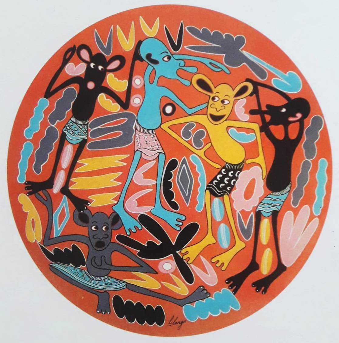 LILANGA GEORGE Kikwetu 1934 Dar es Salaam 2005 “Mabishano” acrilico su tavola cm 100 di diametro, del 1999. Firmato sul fronte in basso al centro. Provenienza “Sarenco Collection”. Opera pubblicata a pag. 160 del catalogo ragionato “George Lilanga” Volume II.