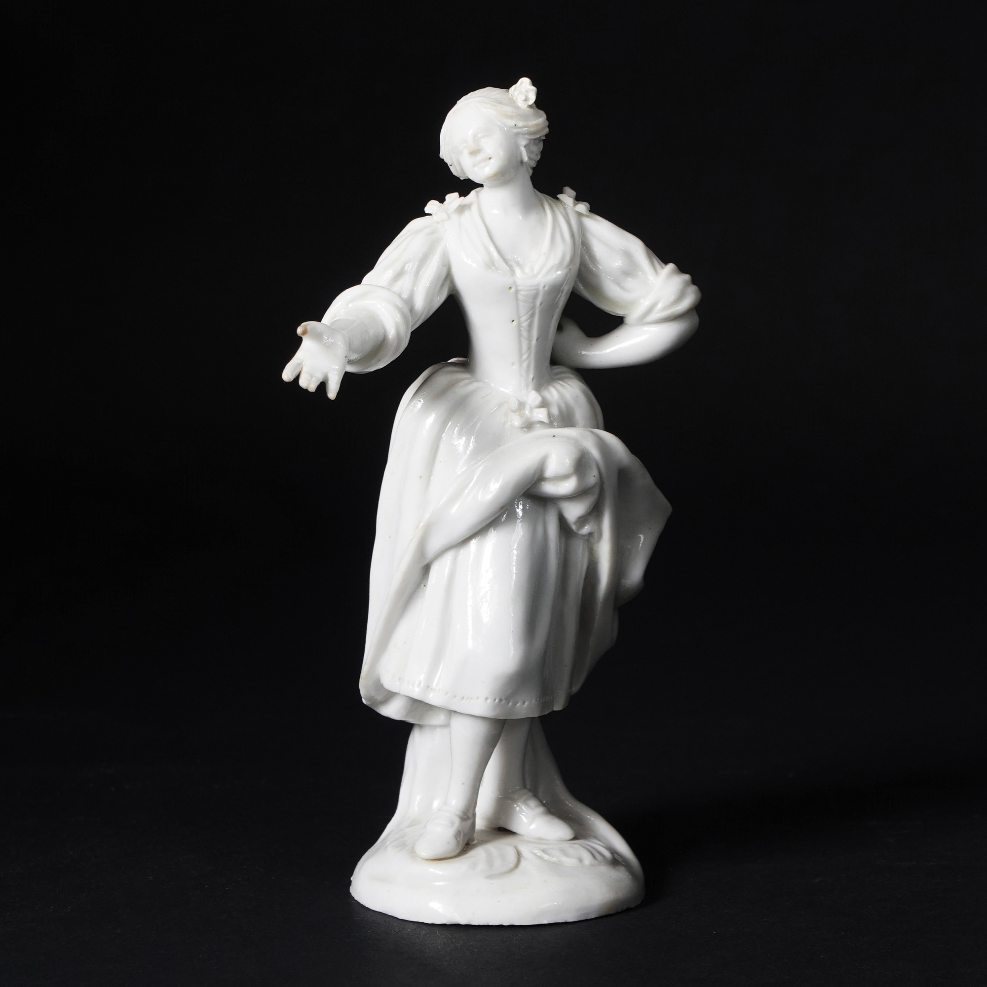 Scultura in porcellana bianca raffigurante una contadina. Nove, circa 1780,...