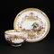 Meissen, circa 1740, marca spade incrociate in blu; numerale 47,, in oro, la tazza: cm. 5x8; il piatto: d. cm. 13
