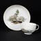 Tazza con piatto in porcellana bianca dipinta nei toni del verde, marrone e...