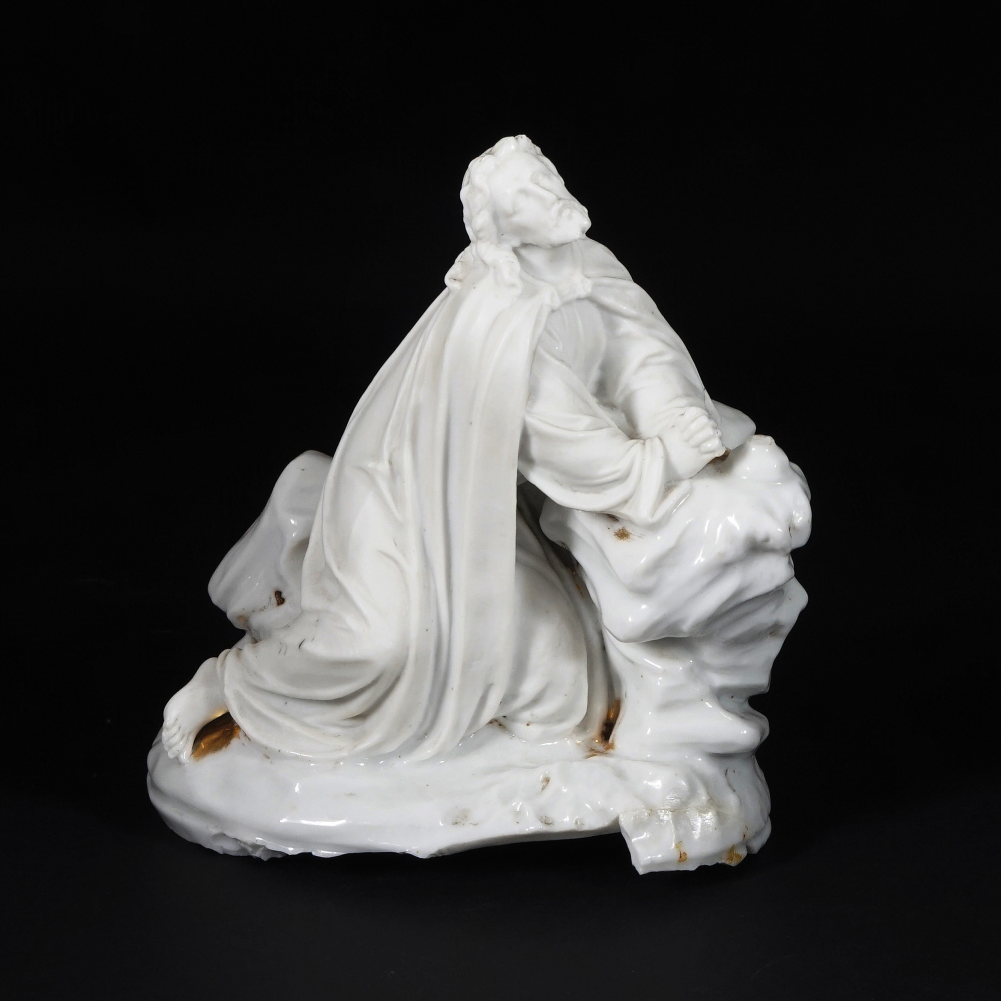 Scultura in biscuit e porcellana con tracce di doratura, raffigurante Cristo nell'orto.