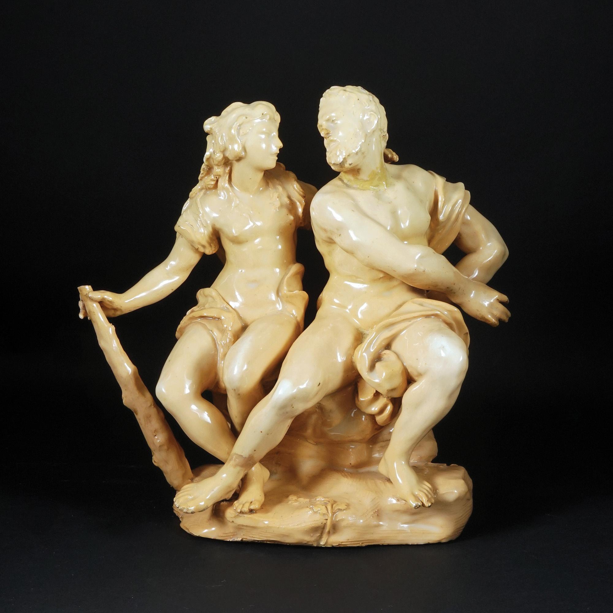 Gruppo in maiolica color avorio raffigurante Ercole e Iole; da una scultura di Giovan Battista Foggini.