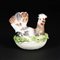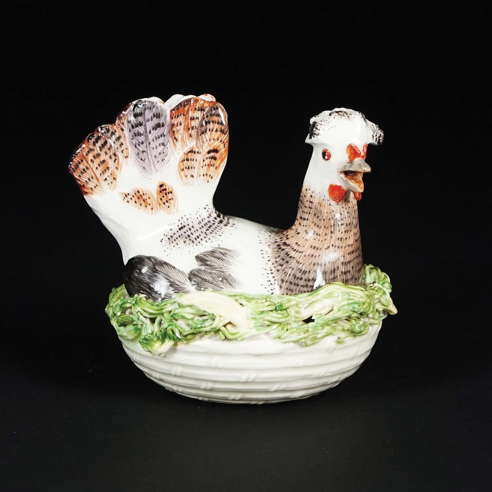 Scultura in porcellana bianca e policroma raffigurante una gallina che cova....