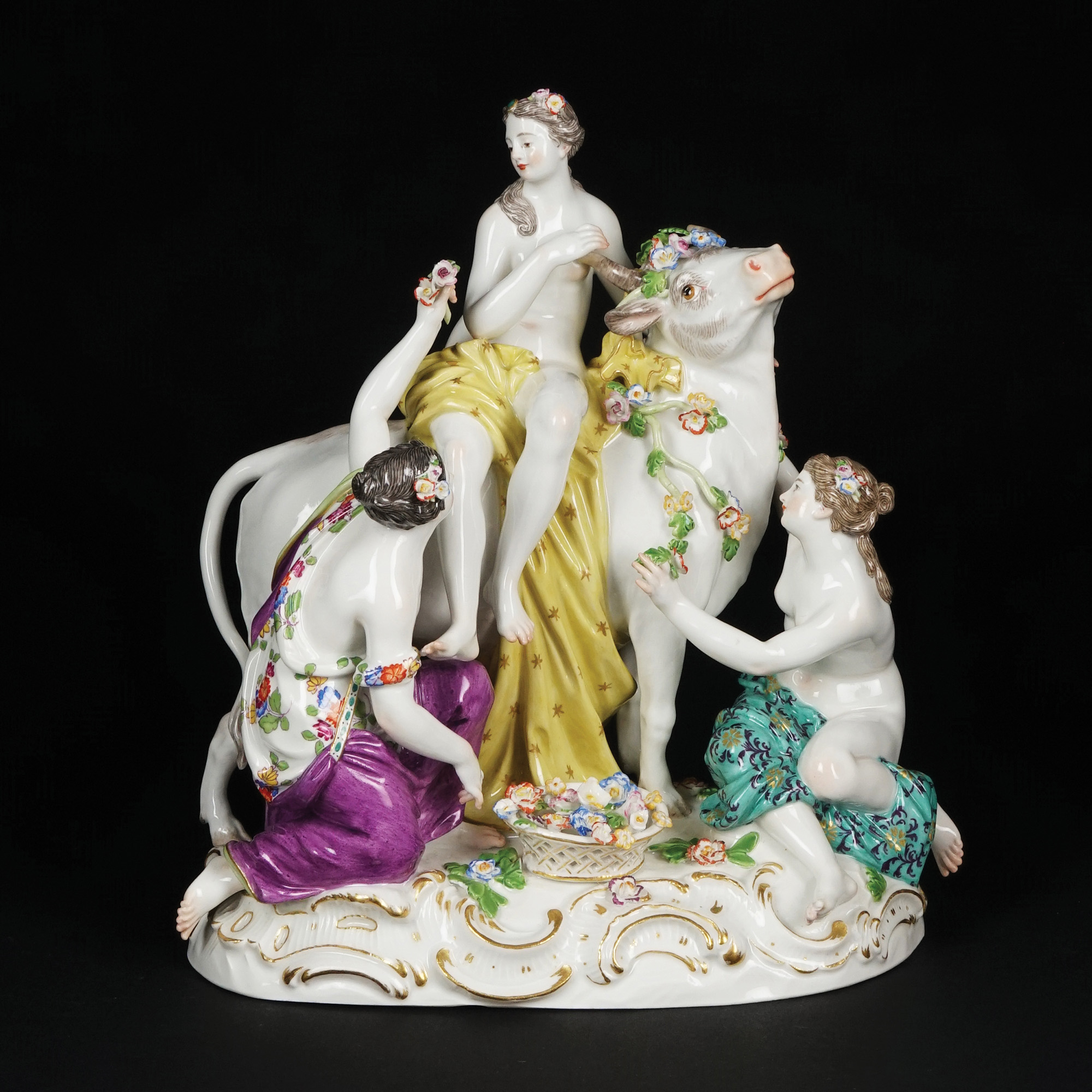 Gruppo in porcellana bianca e policroma raffigurante il Ratto d'Europa, da J.J.Kaendler.