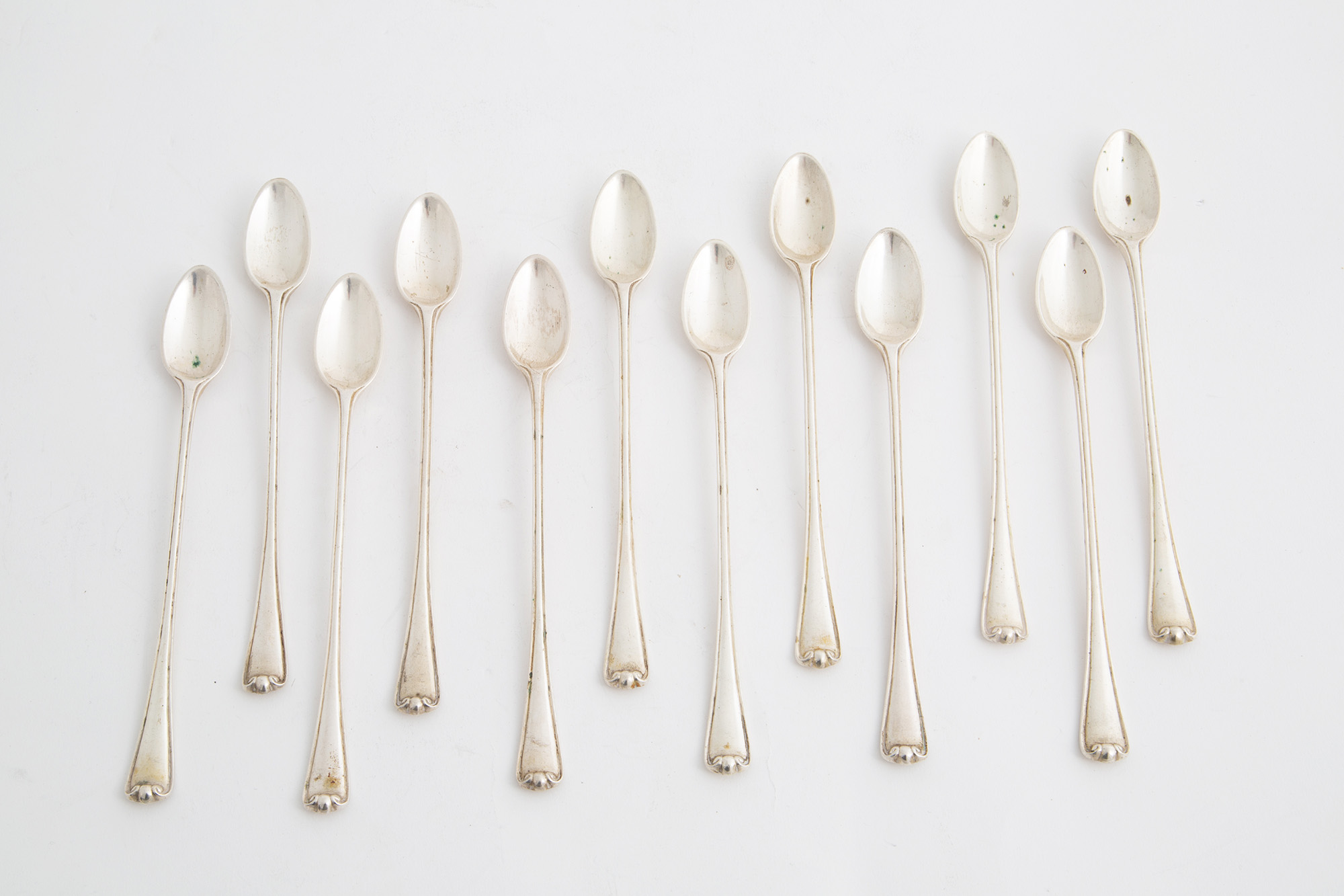 Dodici cucchiaini da aperitivo in argento 800, gr. 575 ca. complessivi. Argentiere MISSAGLIA. XX secolo.