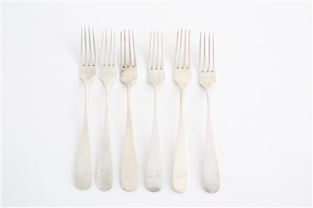 Six silver forks, gr. 315 ca. MILANO. 19th c.