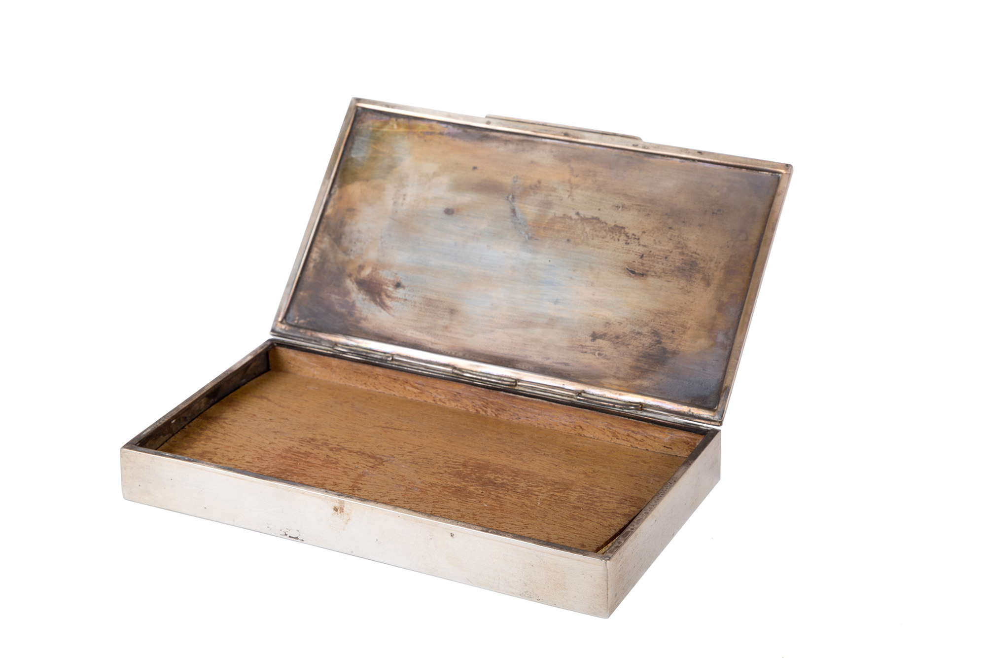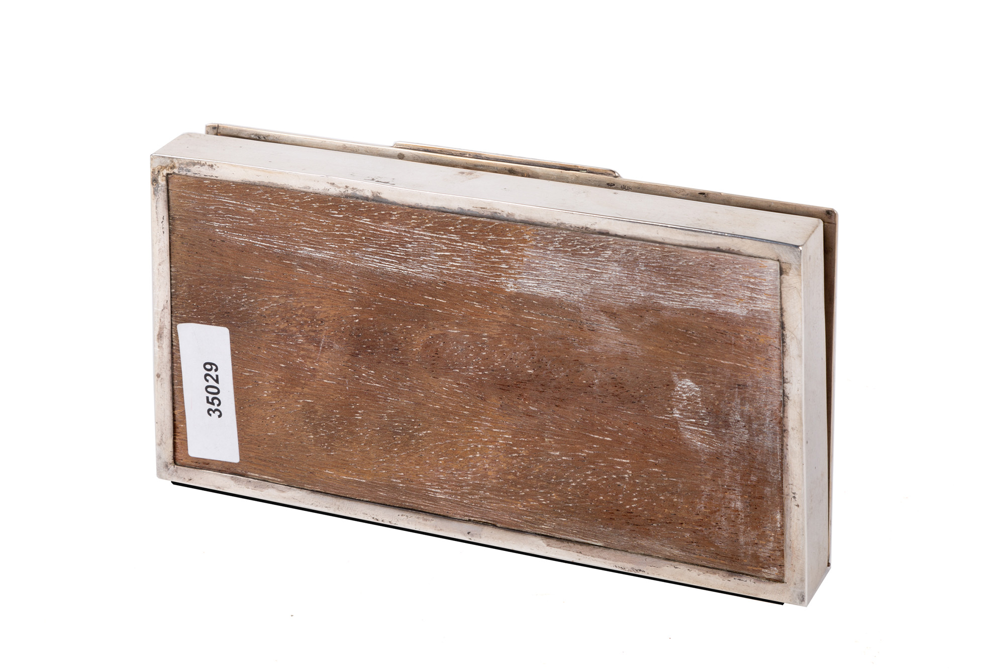 Scatola in argento 800. Punzoni sul fondo. XX secolo. Mis. Lung. cm. 16.5 Alt. cm. 2.5 Prof. cm. 9 ca.