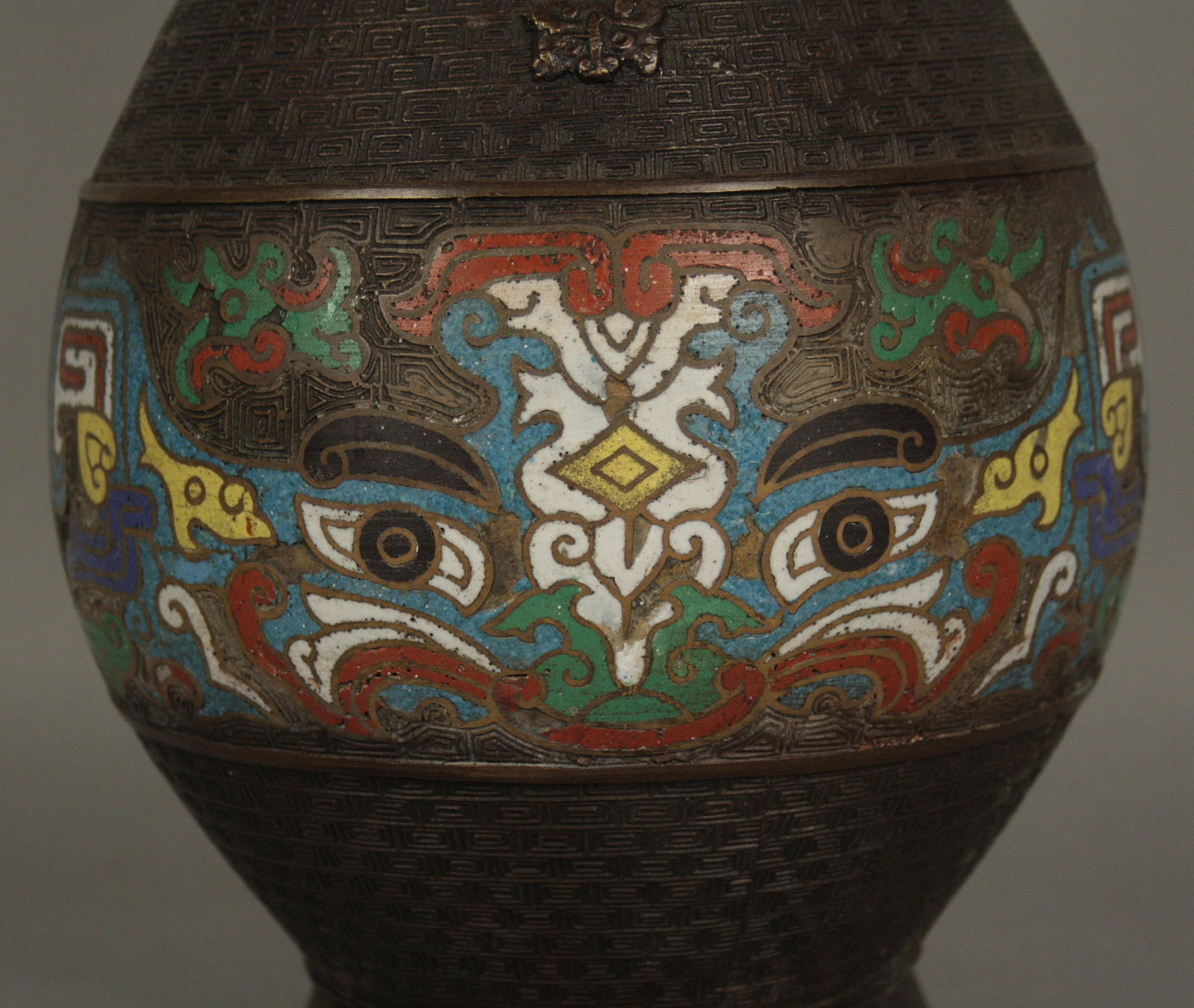 Vaso in bronzo cloisonné. Cina. XIX secolo. Mis. Alt. cm. 29 ca.
