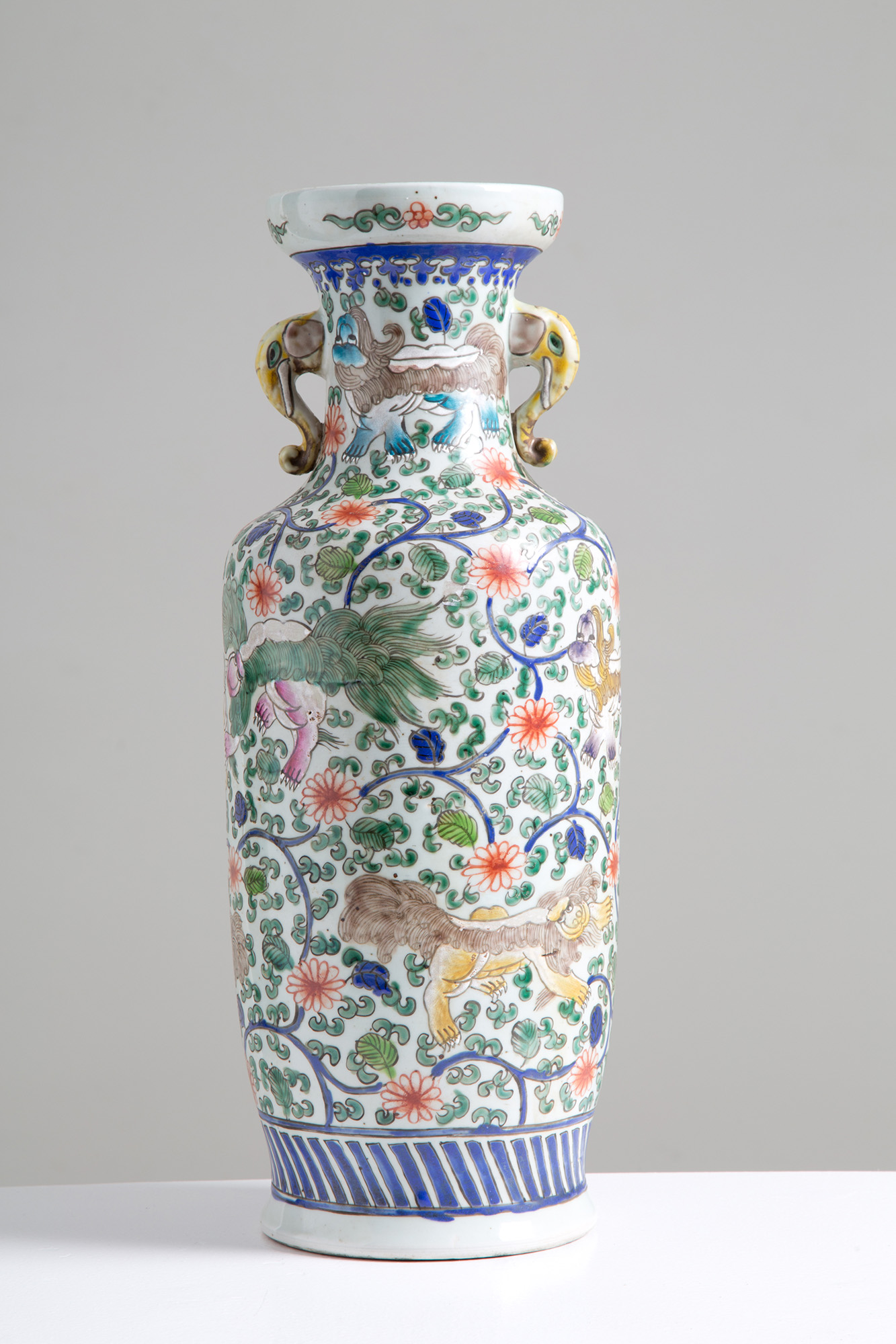 Vaso in porcellana dipinta. Cina. Fine XIX secolo. Mis. Alt. cm. 44 ca.