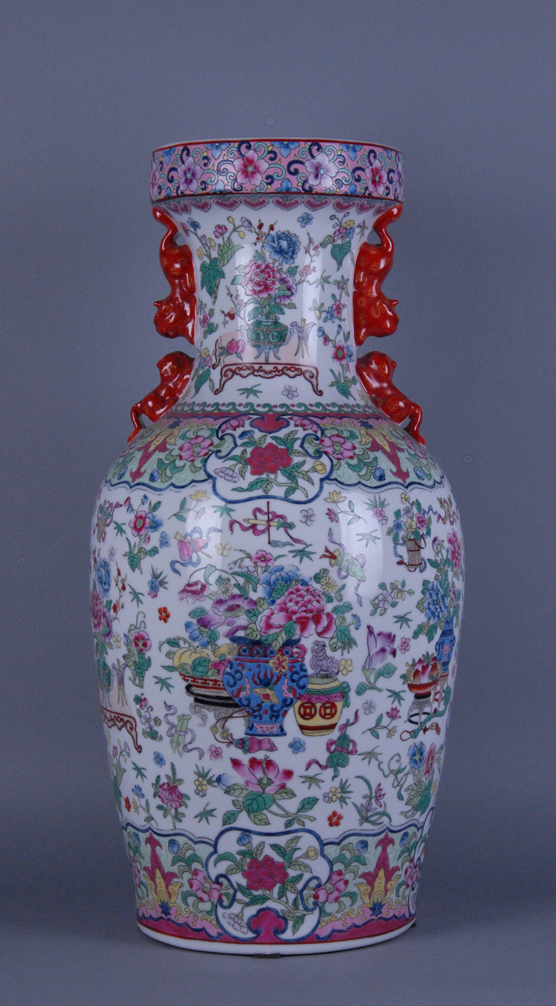 Vaso in porcellana dipinta. Cina. XX secolo. Mis. Alt. cm. 62 ca.