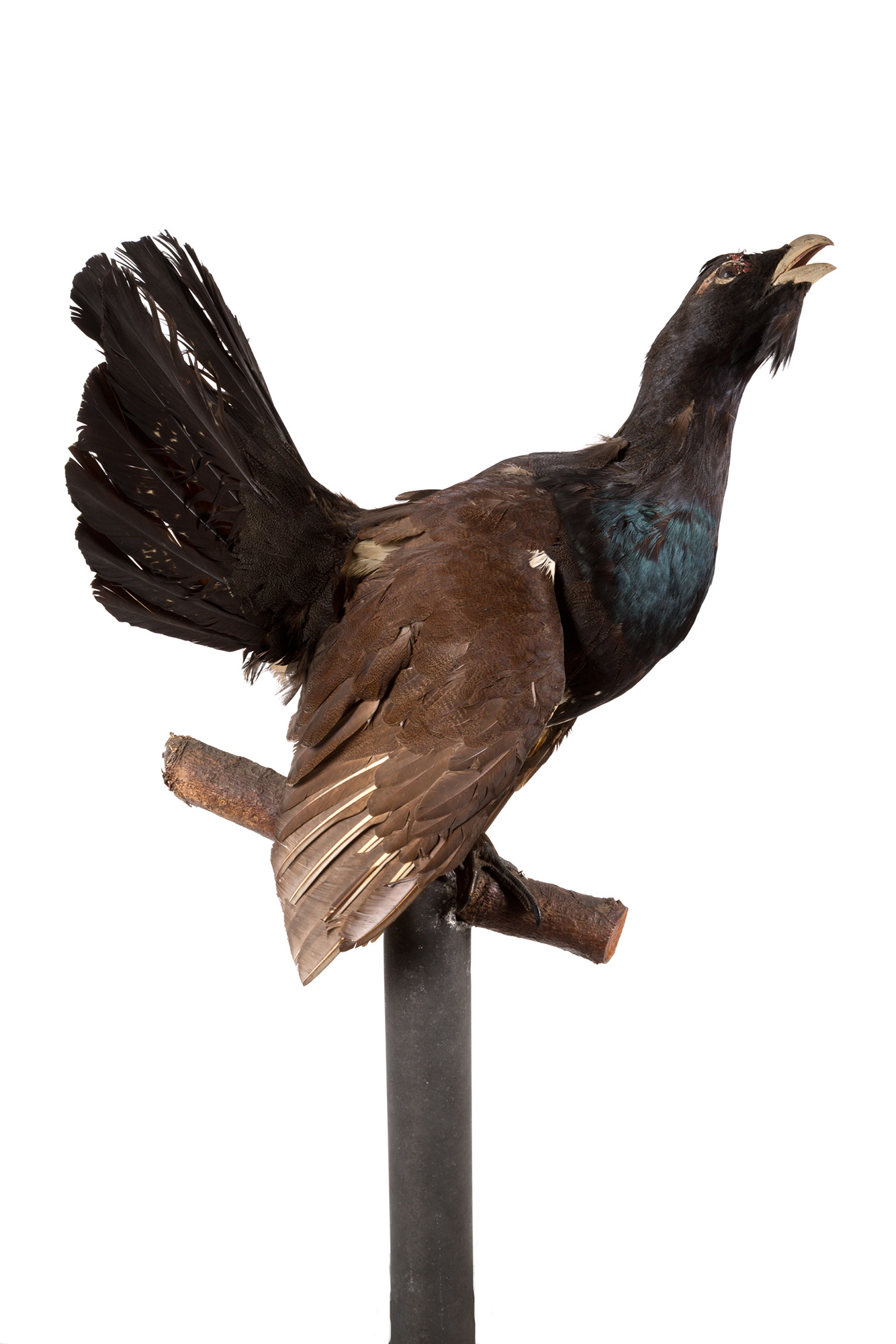 Gallo cedrone (Tetrao urogallus) tassidermizzato. Mis. Lung. cm. 60 Alt. cm. 60 Prof. cm. 55 ca.