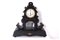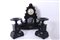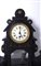 Trittico composto da orologio (Mis. Alt. cm. 47 ca.) e due alzate (Mis. Alt. 27 cm ca.) in marmo nero con decorazioni incise e dorate, inserti in marmo rosa e finiture in bronzo. XIX secolo. Lievi difetti.