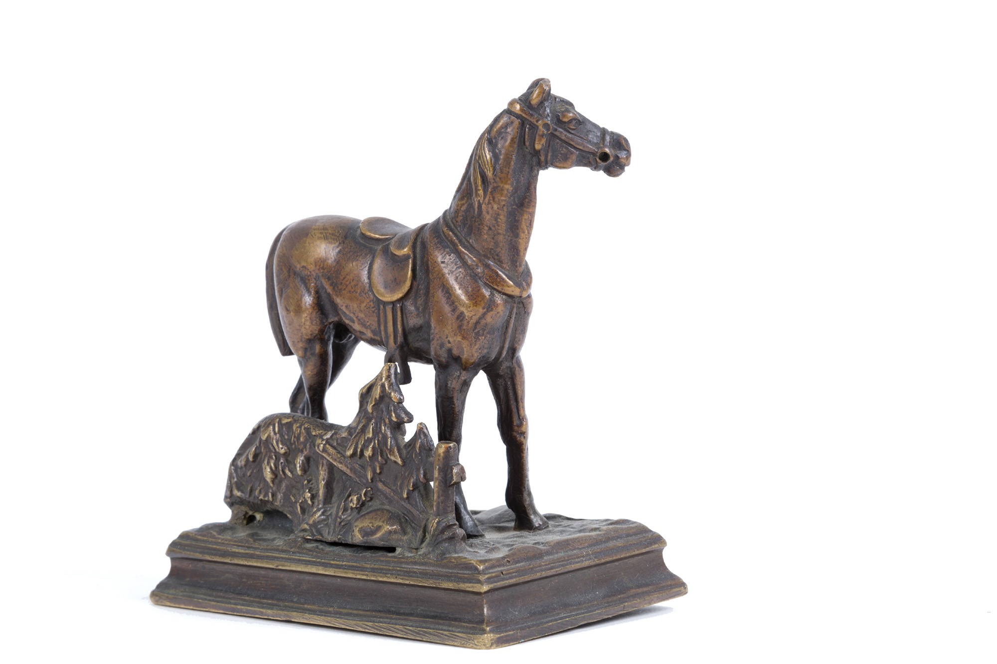 Scultura in bronzo raff. ''CAVALLO''. Inizi XX secolo. Mis. Lung. cm. 9.5 Alt. cm. 10 Prof. cm. 6 ca.