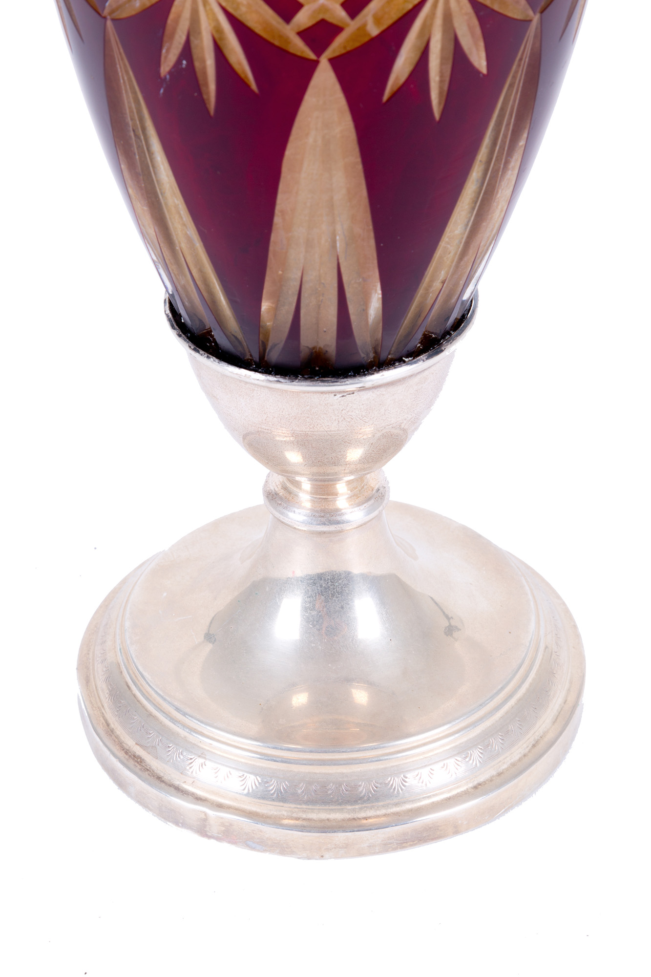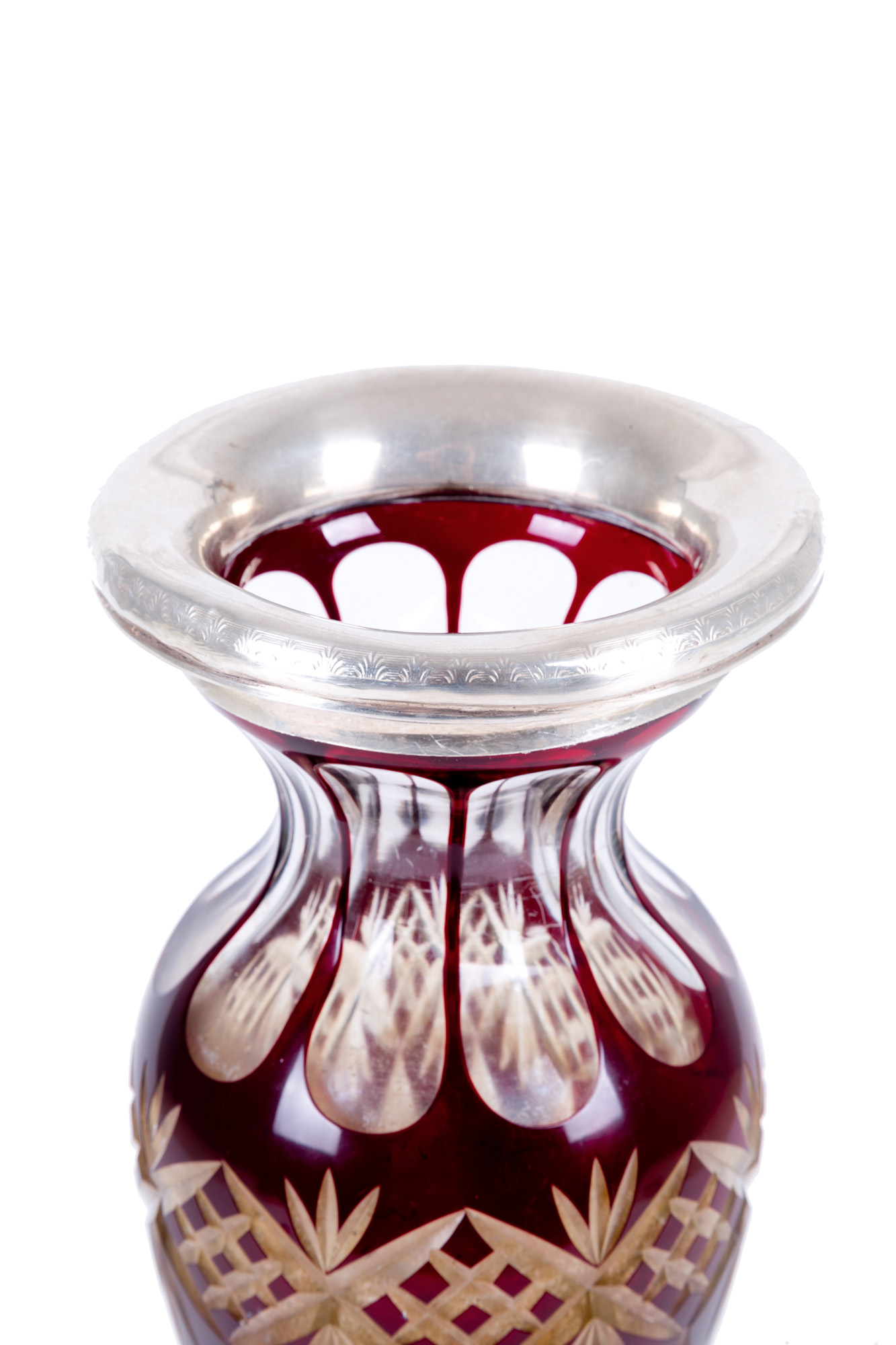 Vaso in cristallo molato di Boemia con finiture in argento. Inizi XX secolo. Mis. Alt. cm. 36 ca.