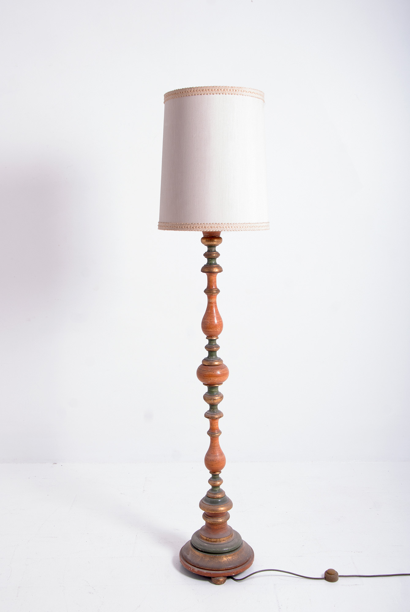 Candeliere in legno tornito e laccato. XX secolo. Mis. Alt. cm. 131 ca.
