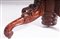 Tavolo ovale allungabile lastronato in mogano con piedi intagliati. Completo di prolunghe. XIX secolo. Restauri e rifacimenti. Mis. cm. 80x120x100 ca. chiuso e cm. 80x210x100 ca. aperto.