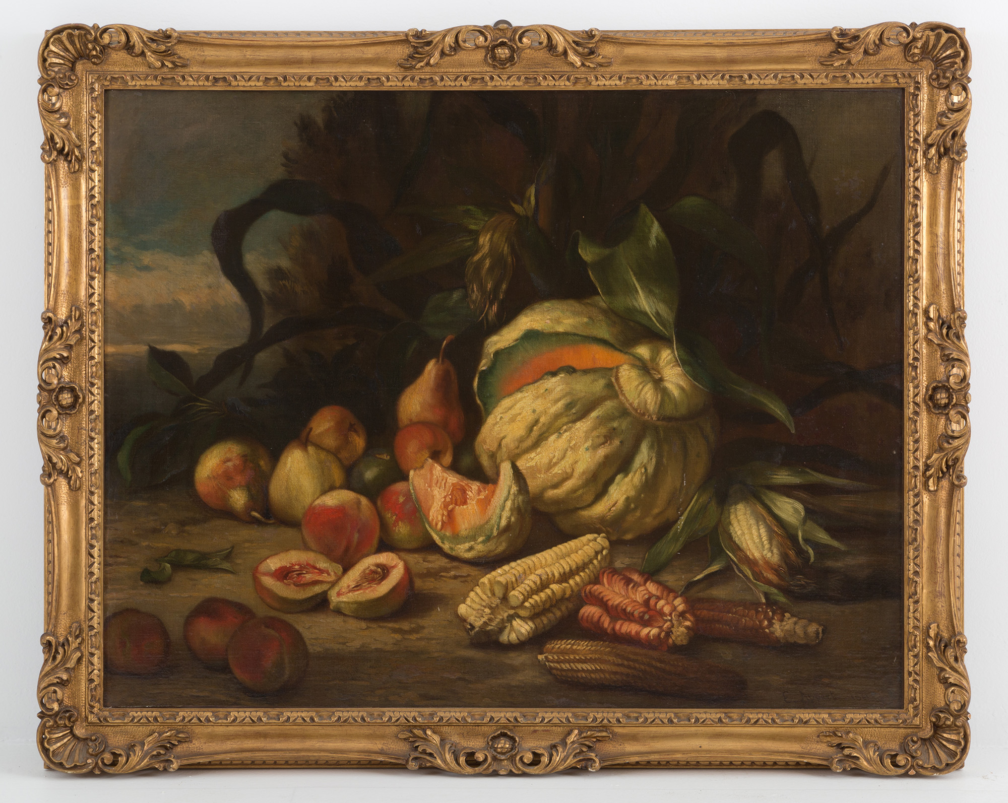 Dipinto olio su tela raff. ''NATURA MORTA CON FRUTTA. Firmato E. APPERT e datato 1861 in basso a destra. In cornice. Mis. Lung. cm. 91 Alt. cm. 73 ca.