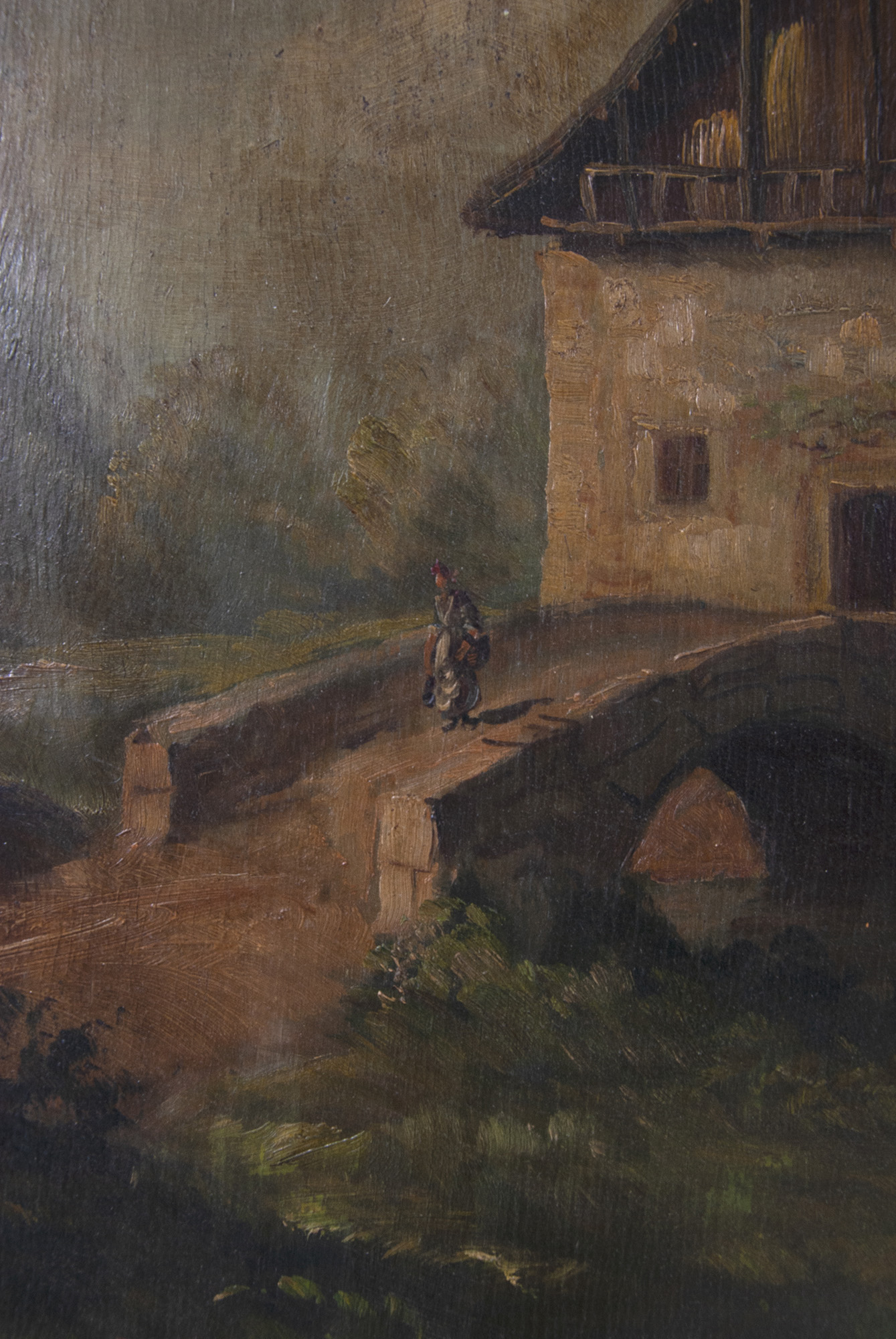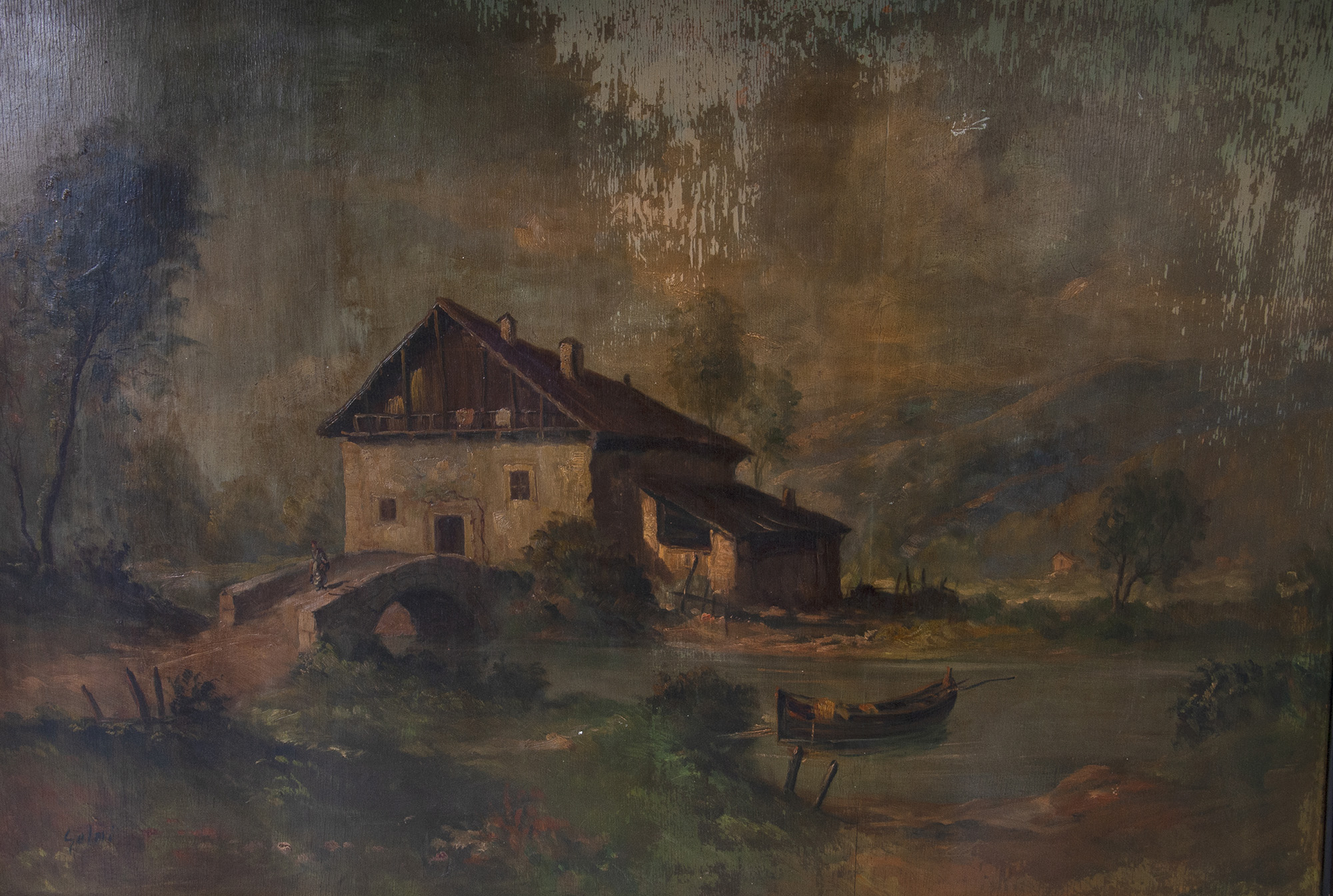 Oil painting on canvas 'HOUSE BY THE RIVER'. 1930-40s