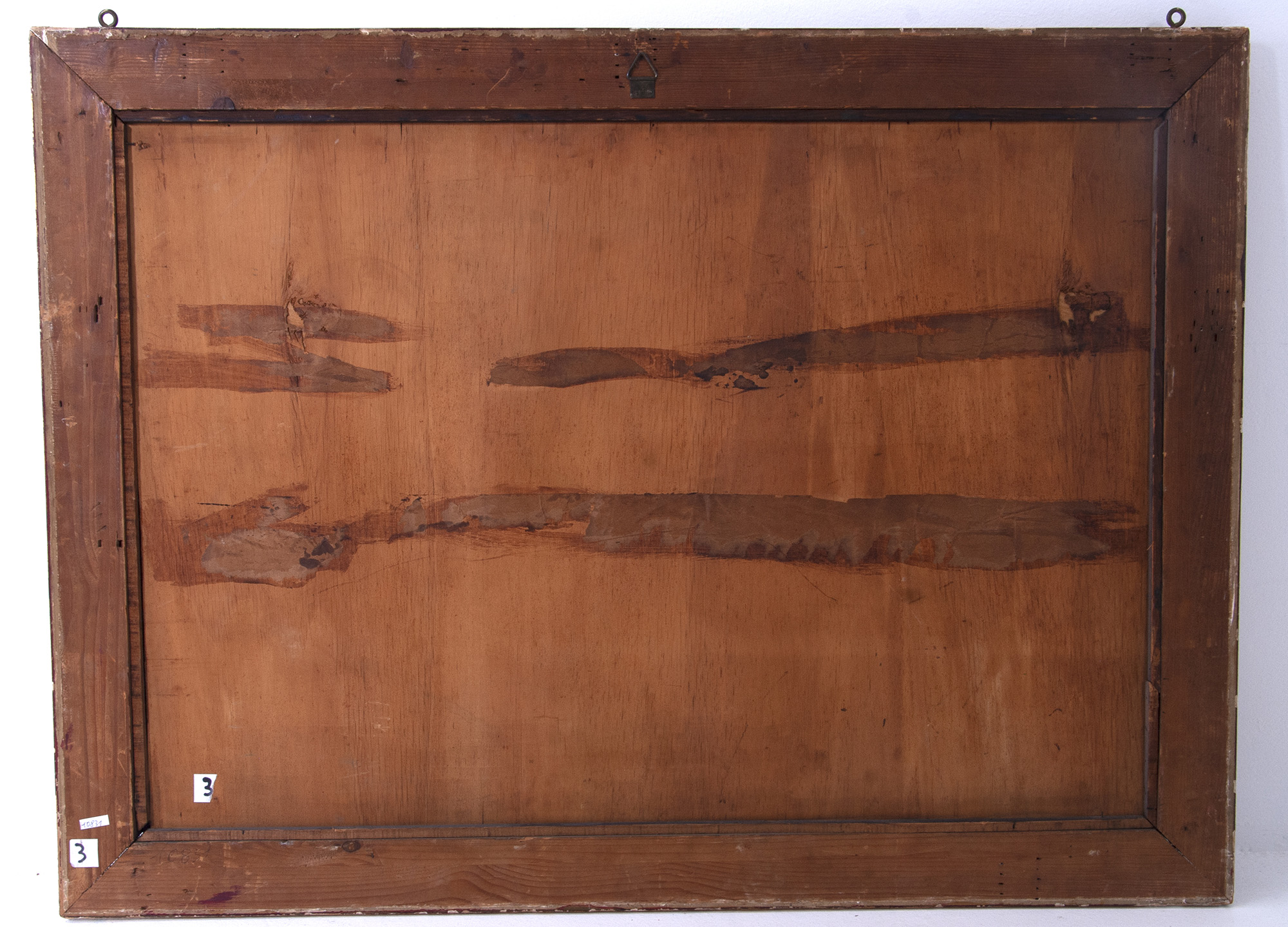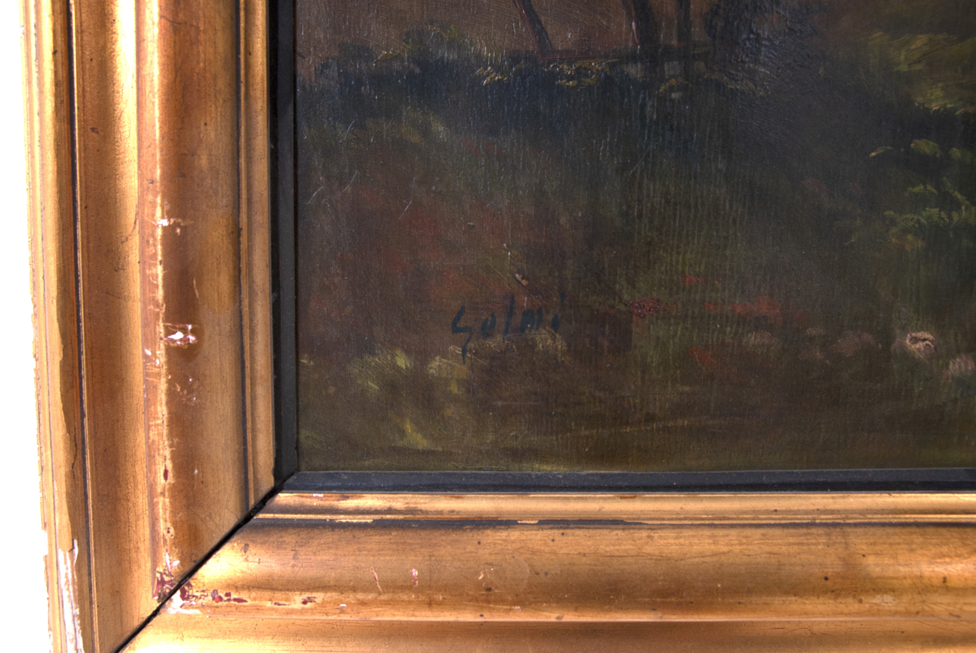 Dipinto olio su tavola raff. ''CASCINALE LUNGO IL FIUME''. Firma non identificata in basso a destra. Anni '30-'40. In cornice. Mis. Lung. cm. 100 Alt. cm. 67 ca.