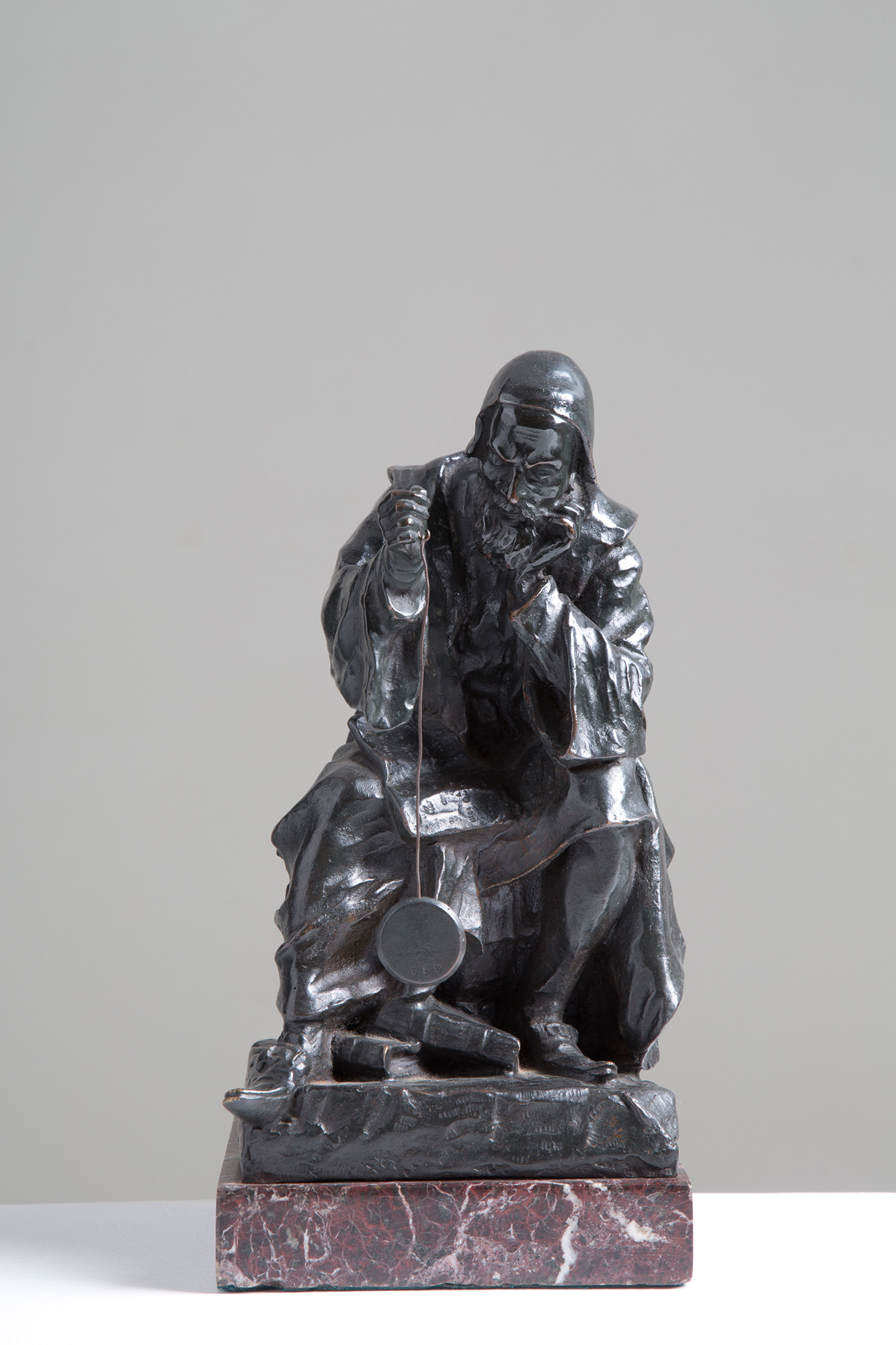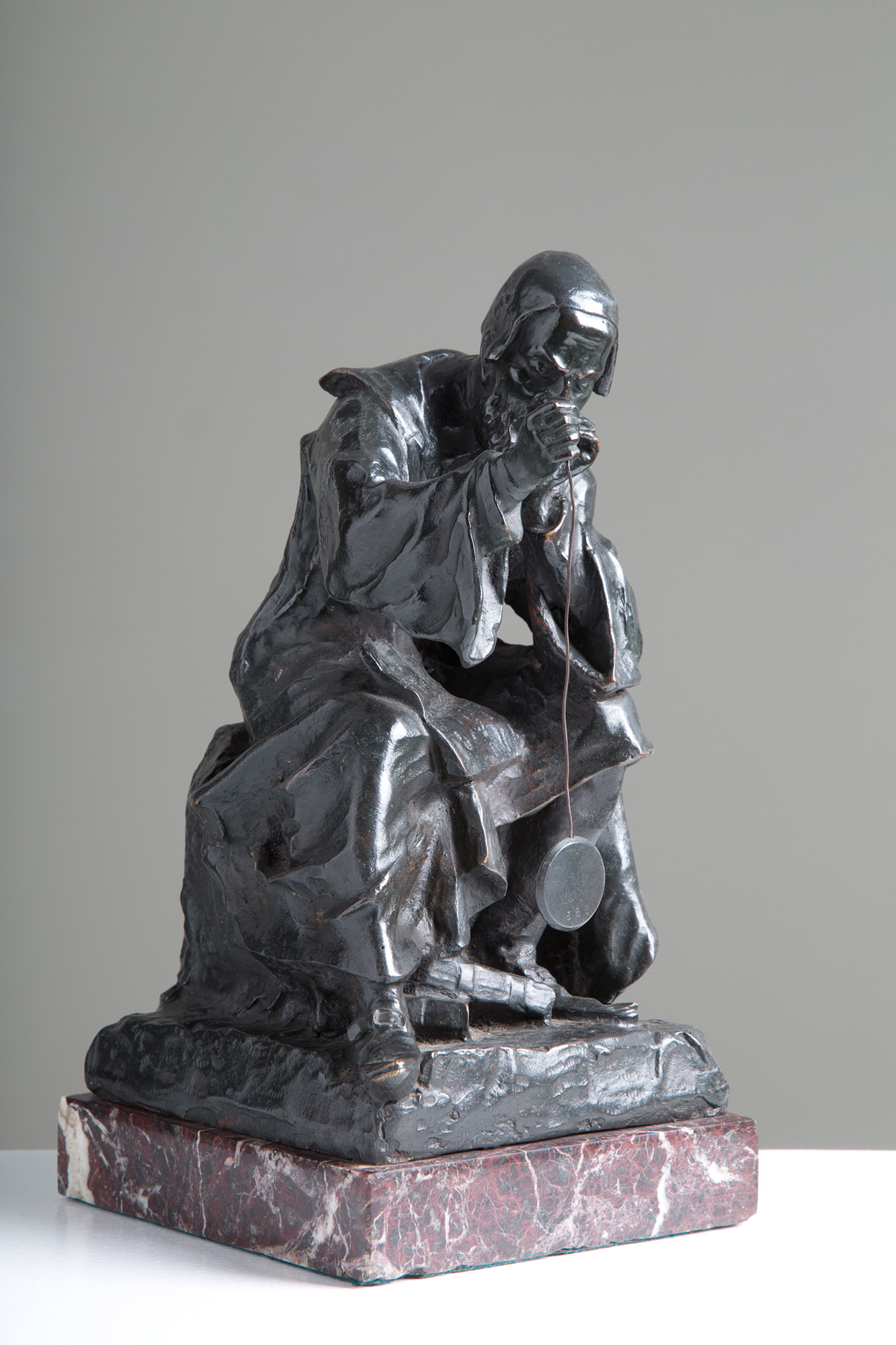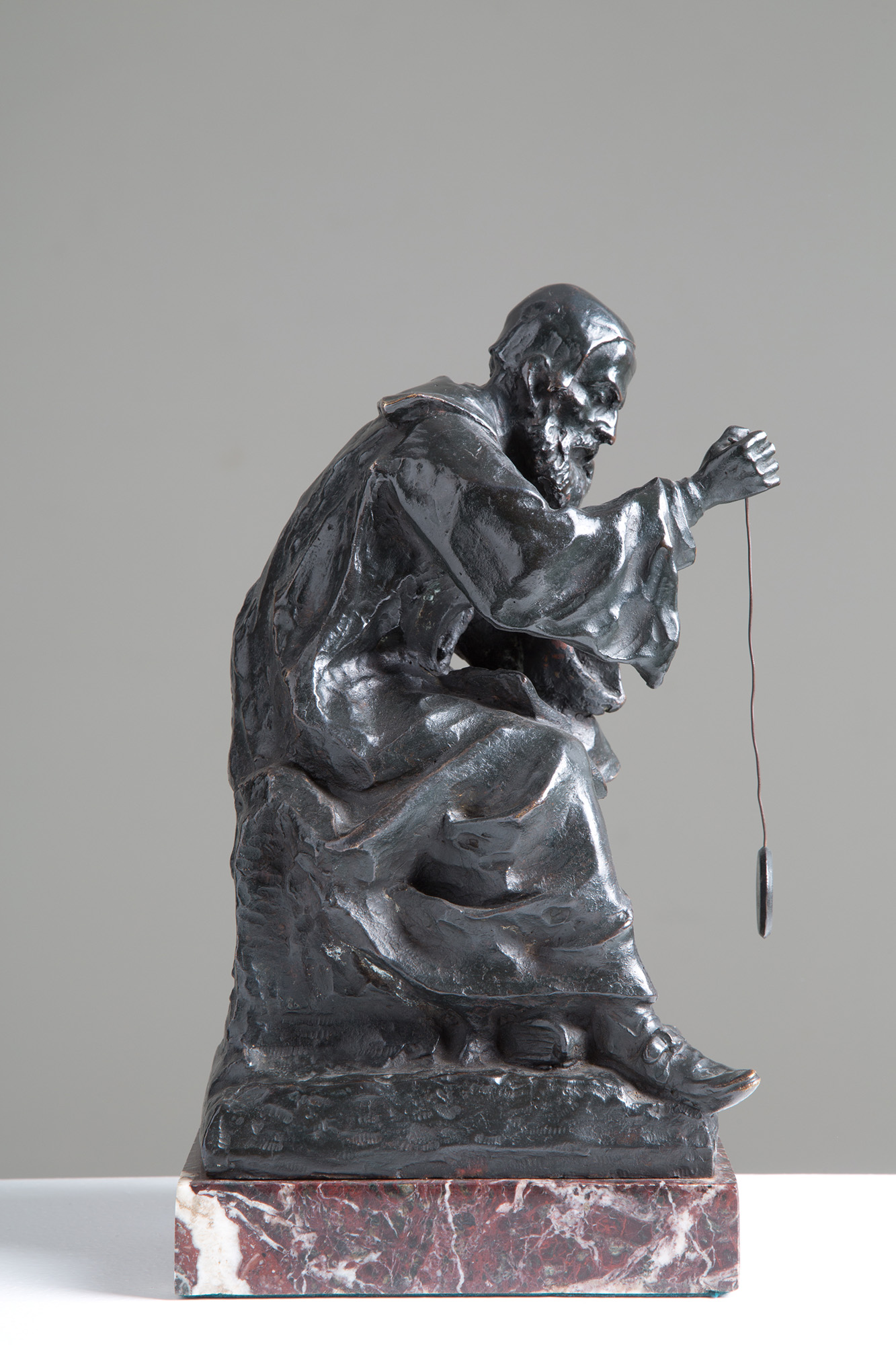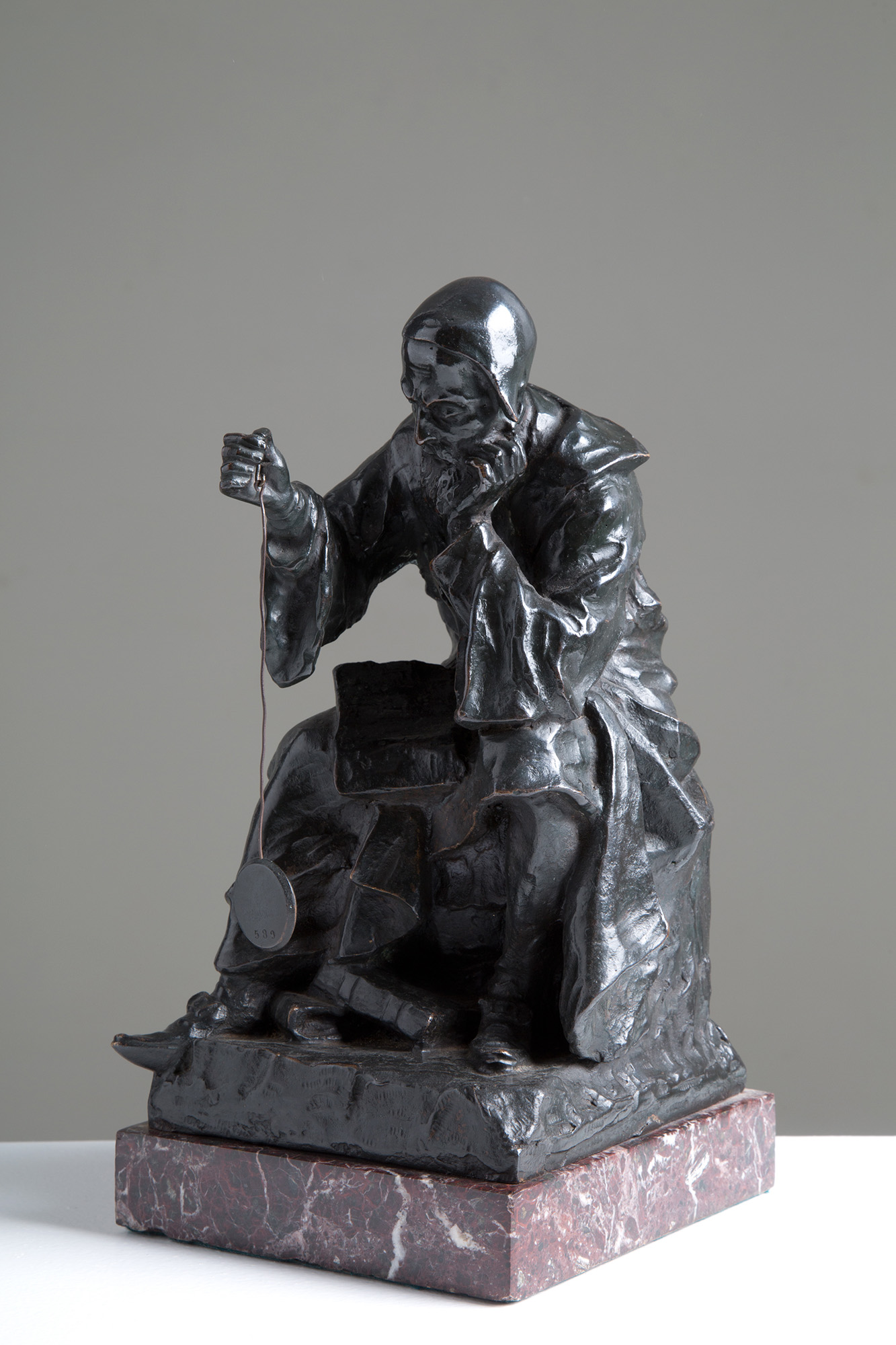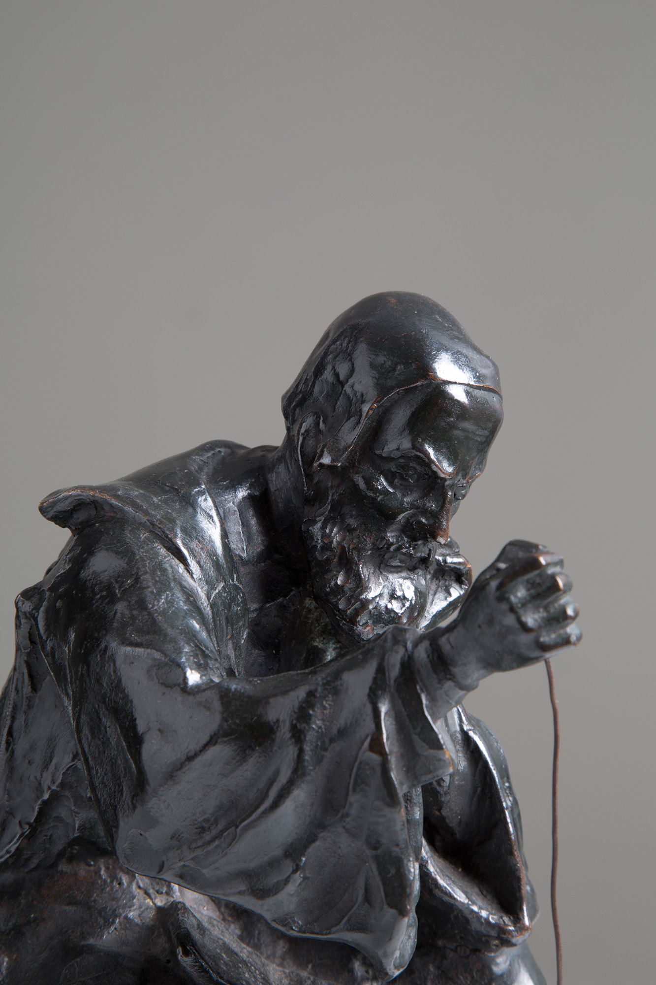 Scultura in bronzo raff. ''GALILEO GALILEI''. Base in marmo. Metà XIX secolo. Mis. Lung. cm. 15 Alt. cm. 30 Prof. cm. 19 ca.