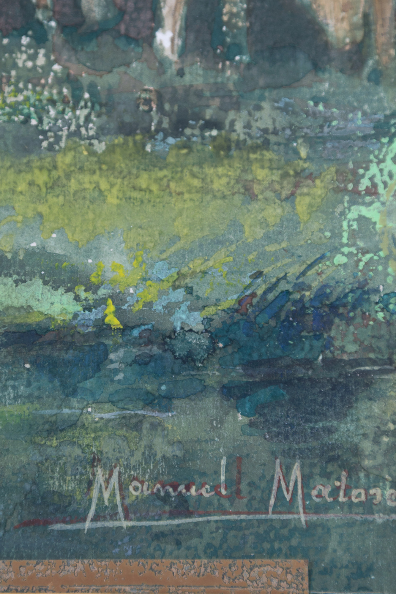 Acquarello su carta raff. ''PECORELLE AL PASCOLO CON BAMBINO''. Firmato MANUEL MALASE in basso a destra. XX secolo Mis. Lung. cm. 23 Alt. cm. 35 ca.