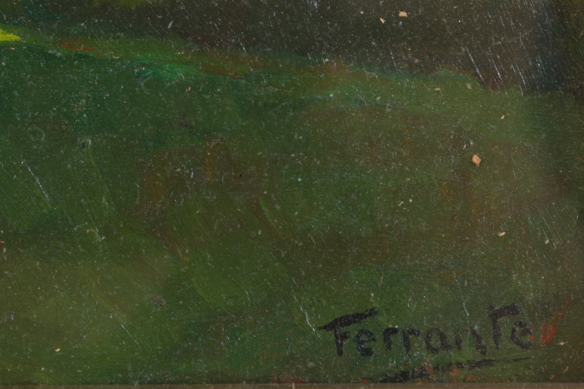 Dipinto olio su compensato raff. ''BALLABIO, VALSASSINA''. Firmato FERRANTE in basso a destra. Inizi XX secolo. In cornice. Mis. Lung. cm. 20.5 Alt. cm. 15 ca.