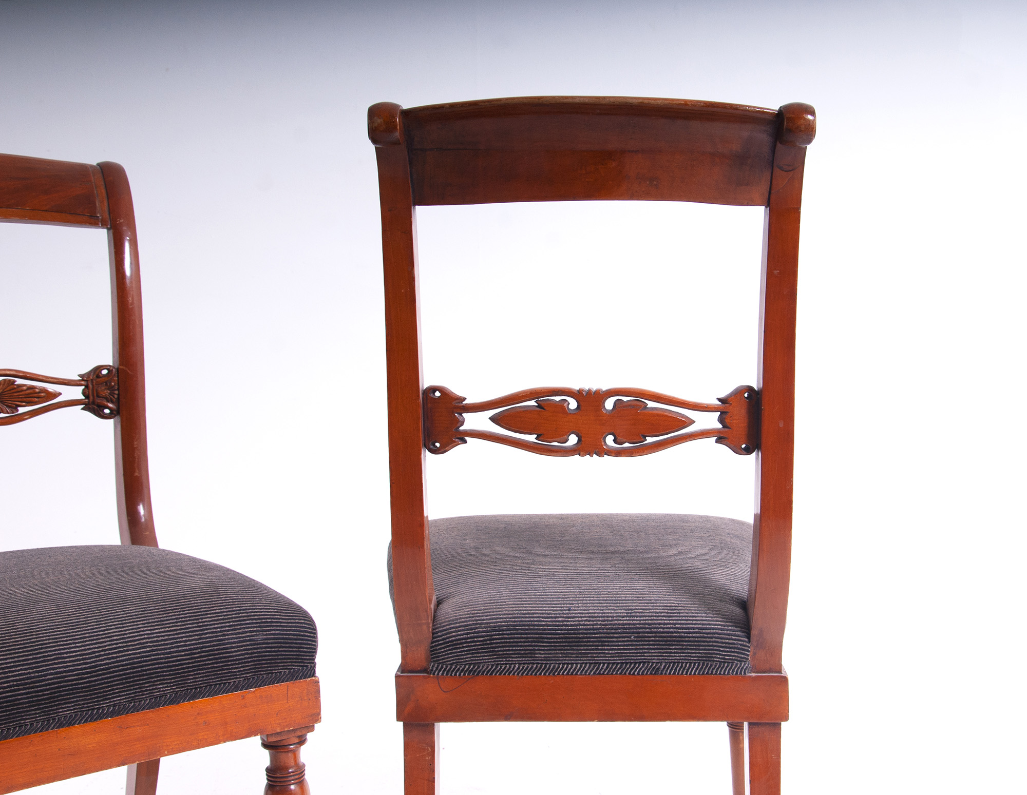 Coppia di sedie in legno di ciliegio. Inizi XIX secolo.