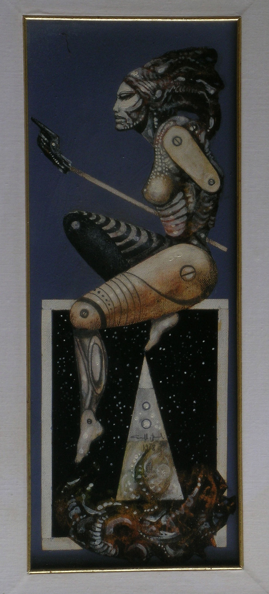 GIAMPAOLO BIANCHI (Lucca, 1947). Dipinto tecnica mista su tela della serie Figure intitolato ''EQUILIBRIO PRECARIO''. Firmato e datato 1978 in basso al centro. In cornice. Mis. Lung. cm. 20 Alt. cm. 50 ca.