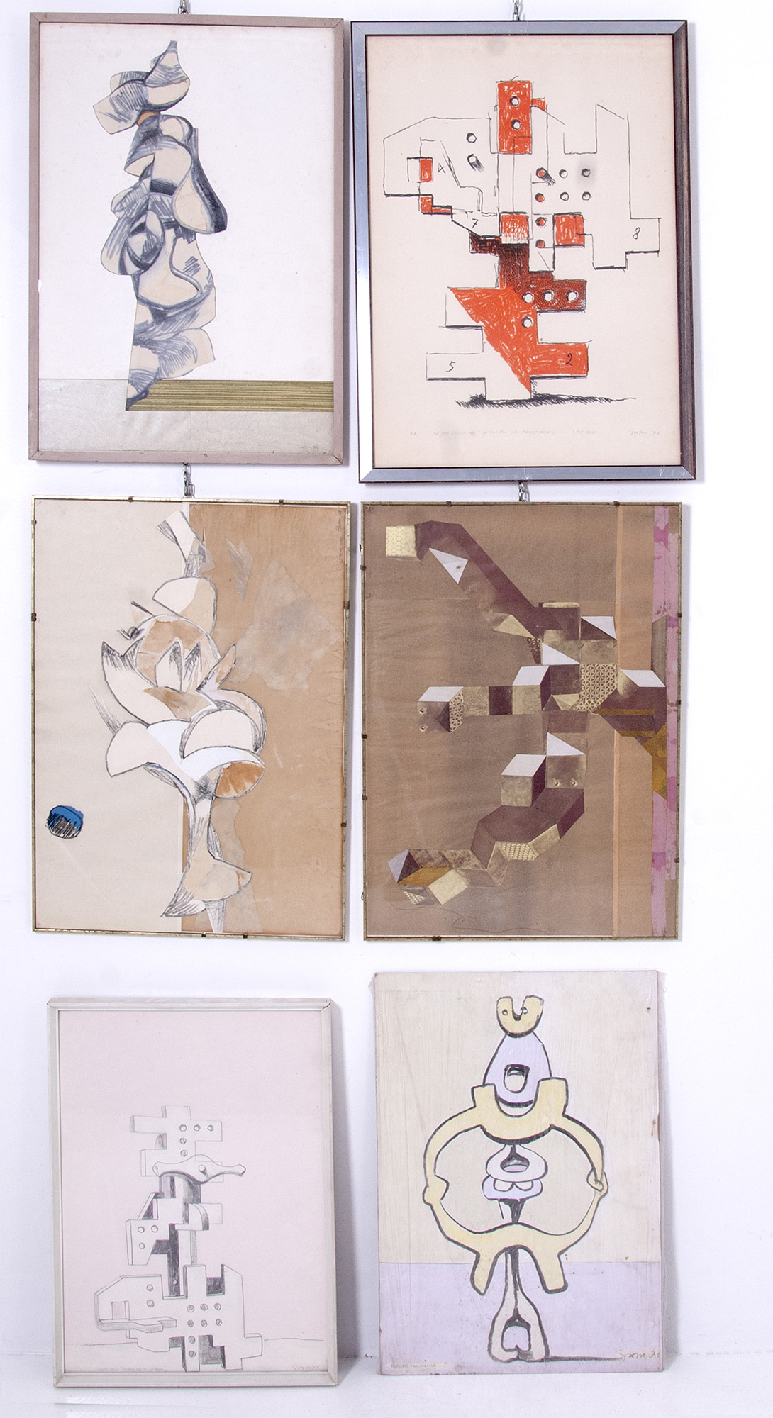 LUIGI GROSSO (Milano, 1913-1999). Una litografia, una tecnica mista e quattro collage. Tre in cornice. Misure varie.