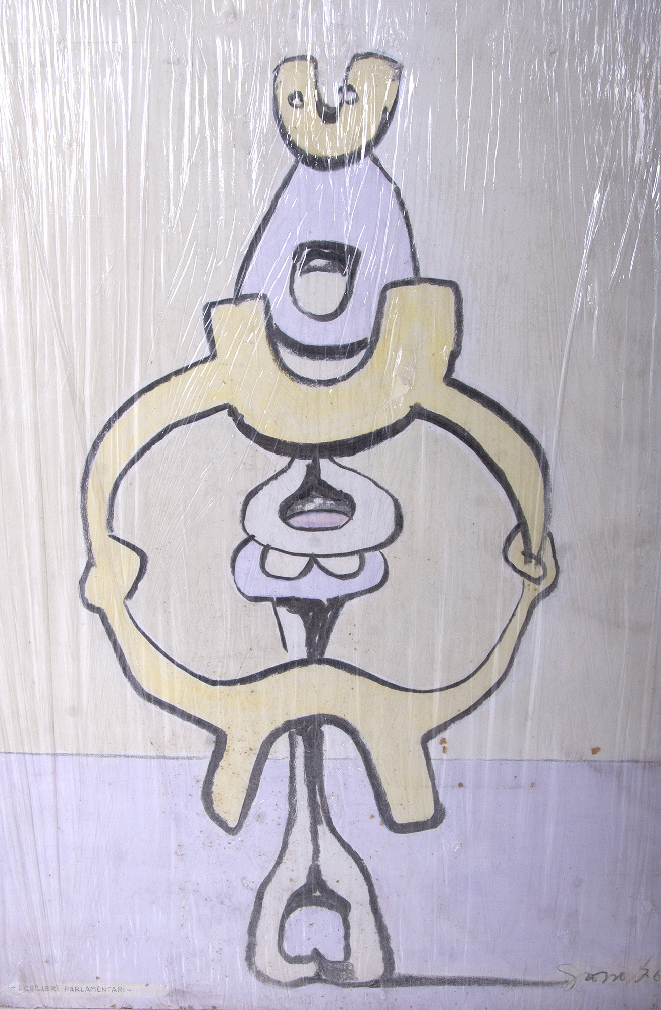- una tecnica mista su carta raff. ''EQUILIBRI PARLAMENTARI''. Firmata e datata 1976 in basso a destra.