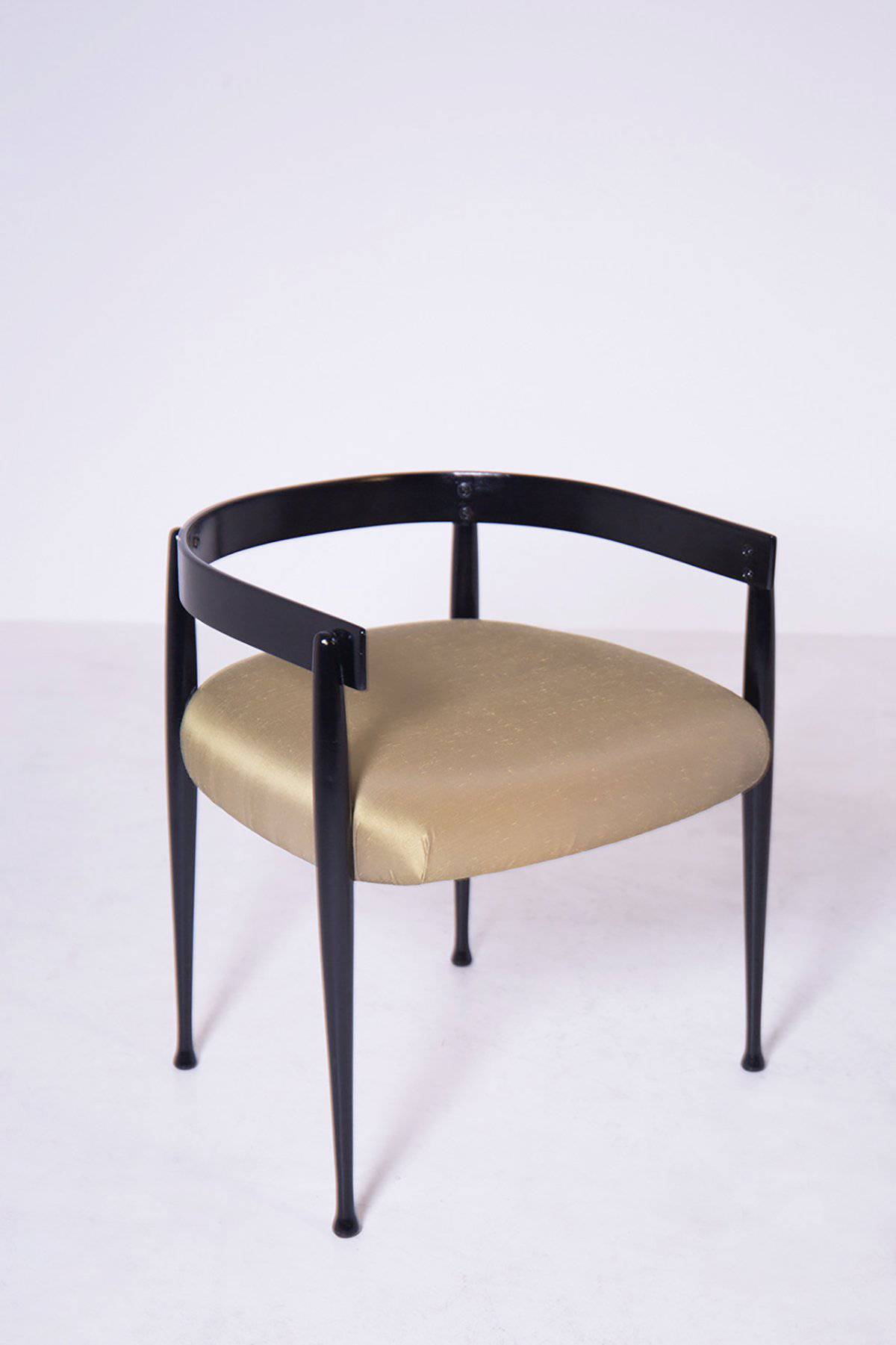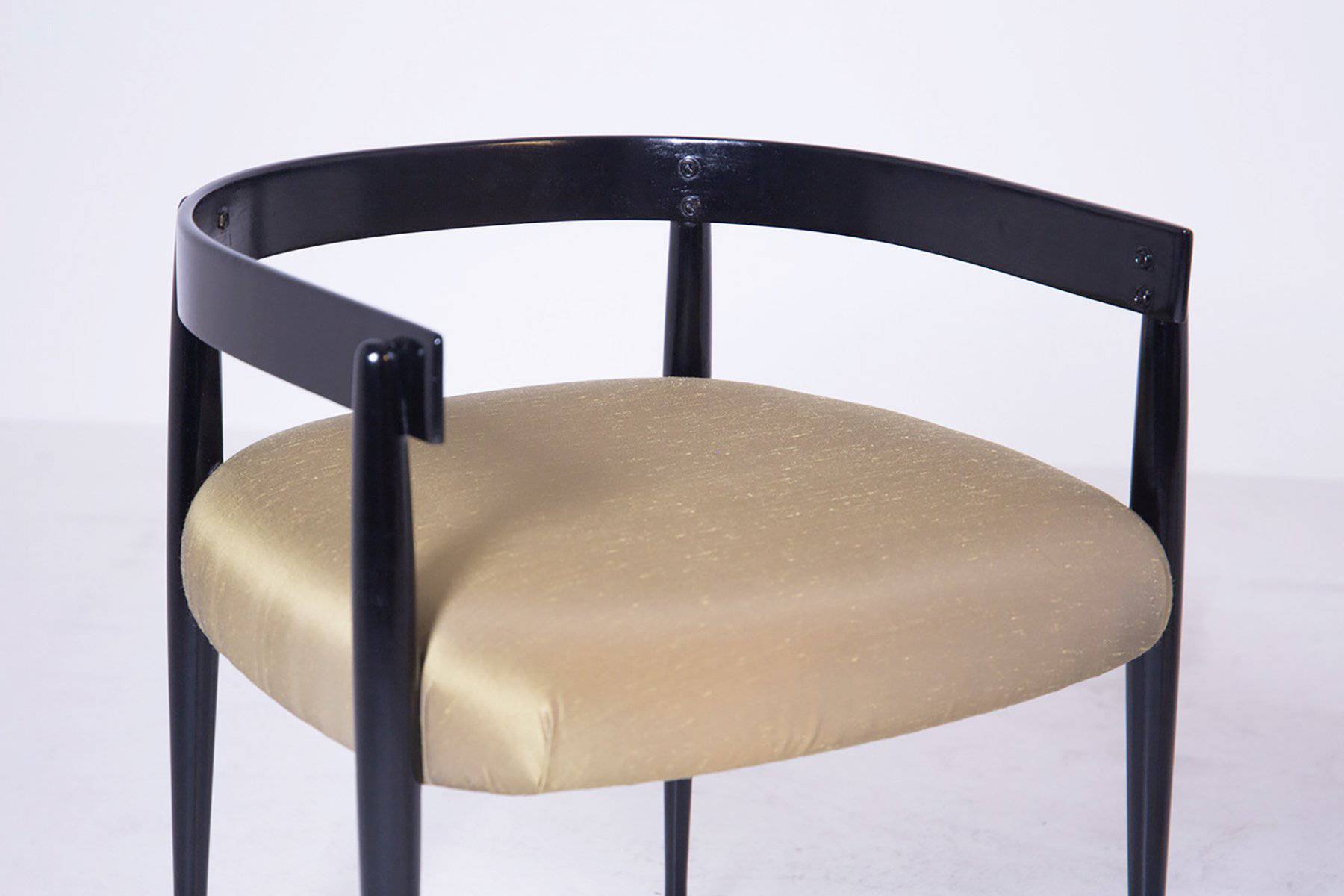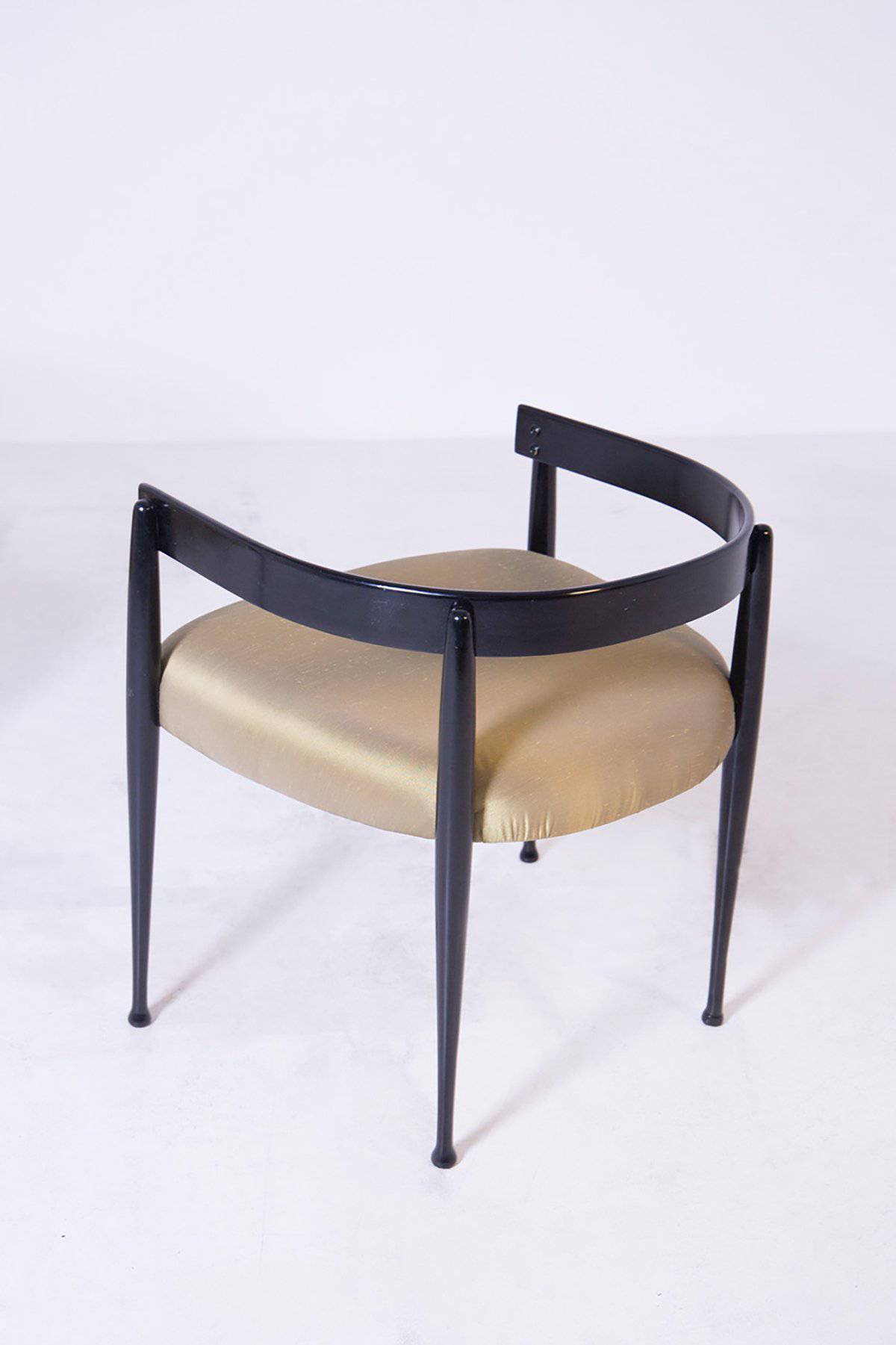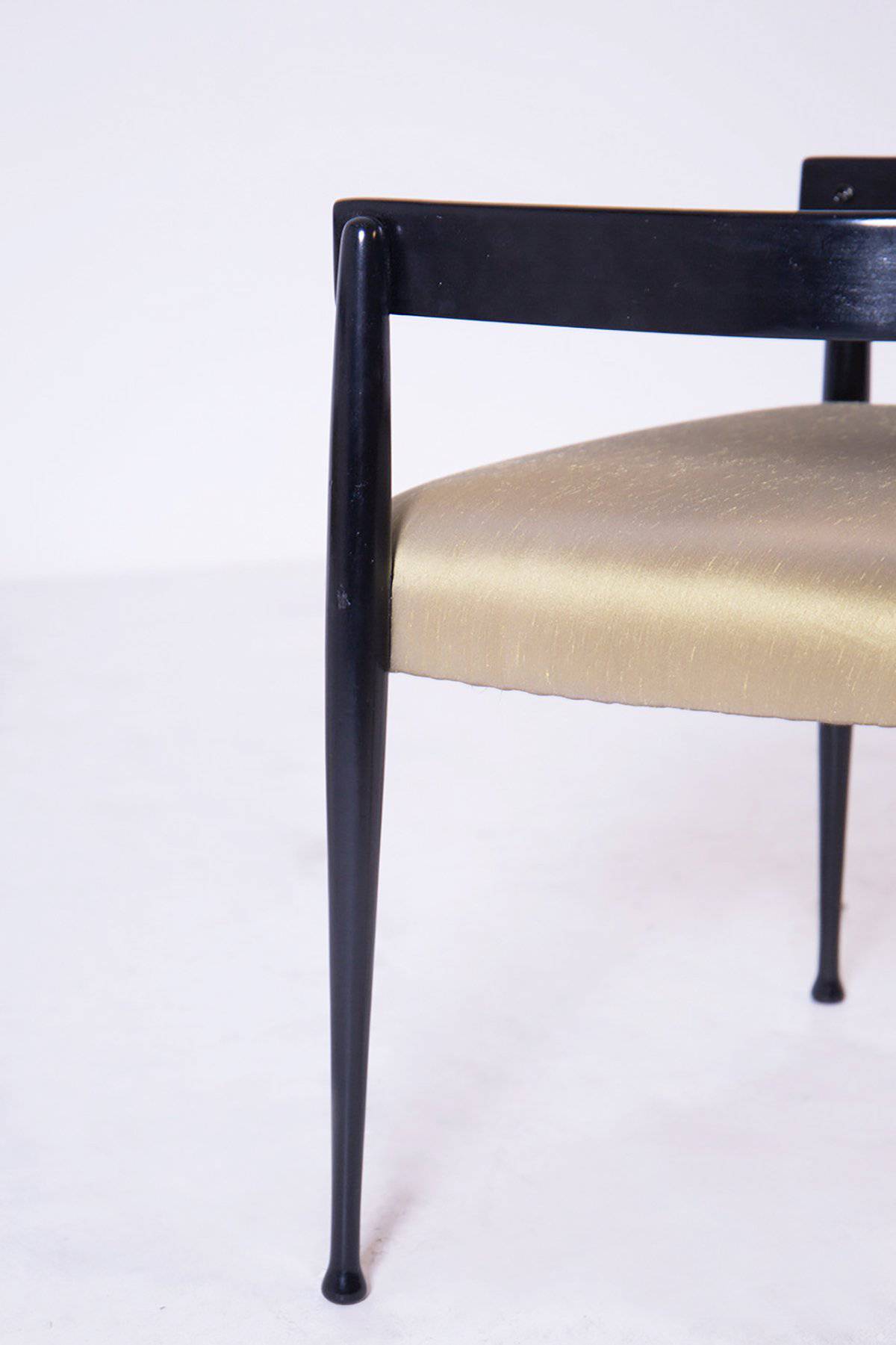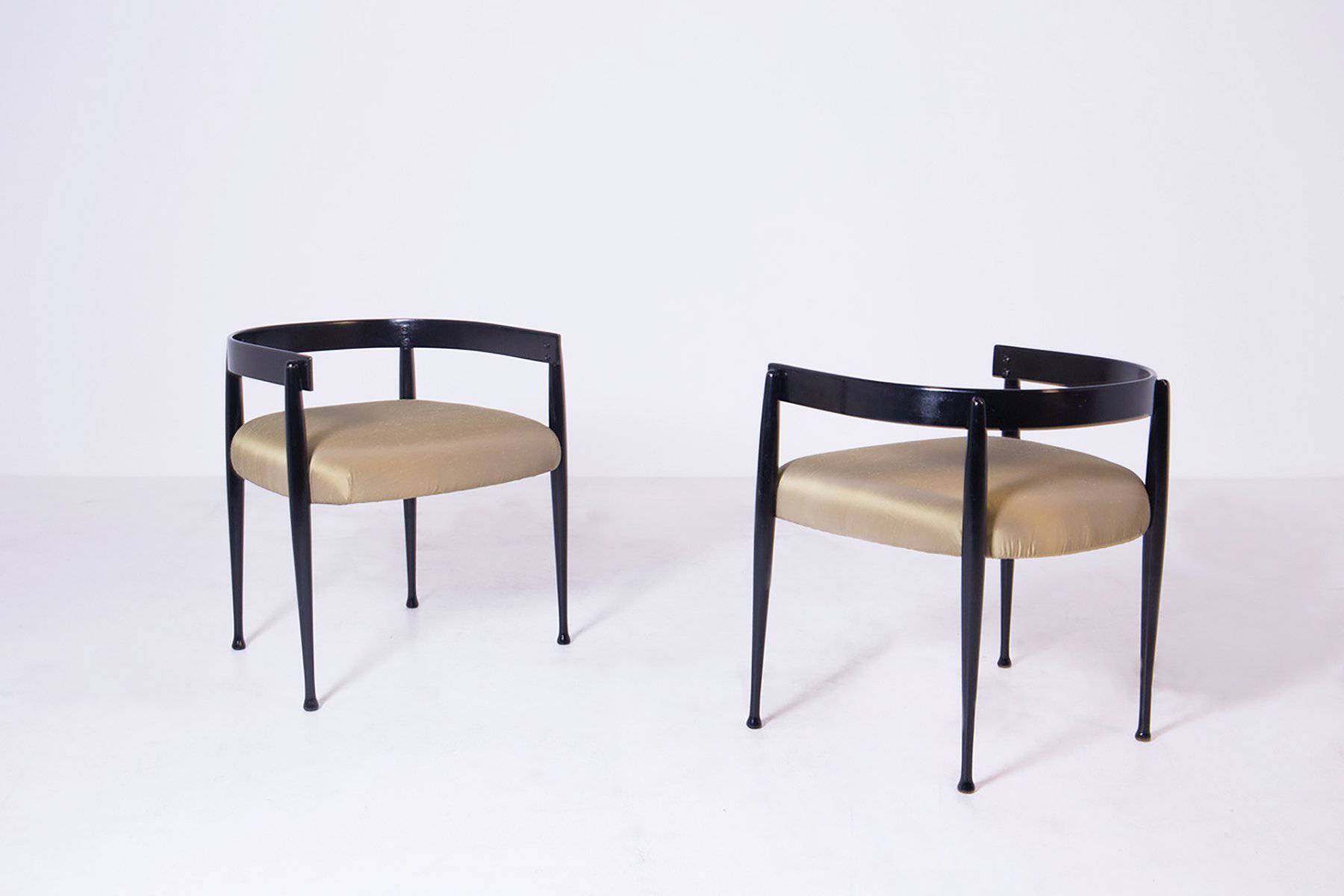 VITTORIO GREGOTTI (Attr.) (Novara, 1927 - Milano, 2020). Coppia di poltrone in legno laccato nero e seta. Anni '50. Restaurate e rifoderate. Mis. Lung. cm. 56 Alt. cm. 61 Prof. cm. 50 ca.