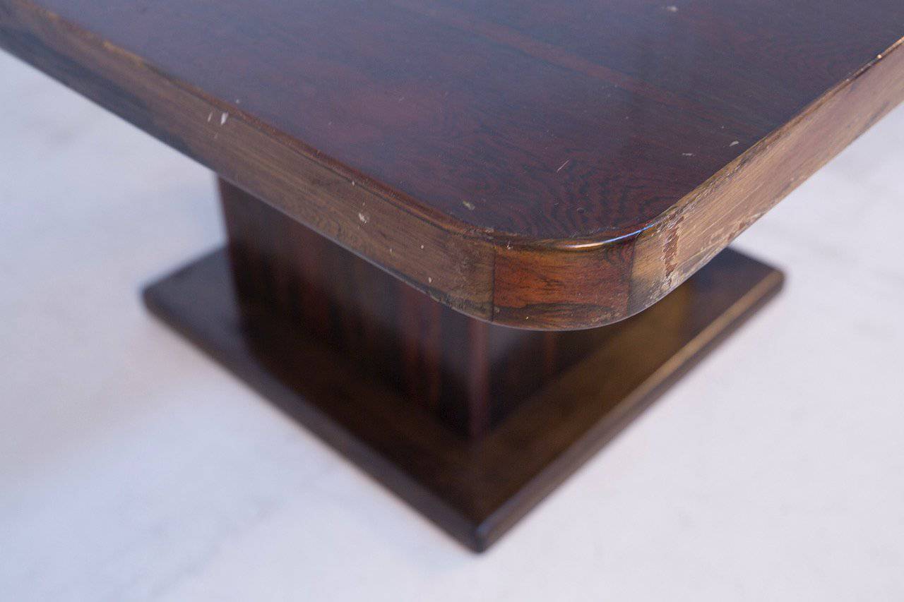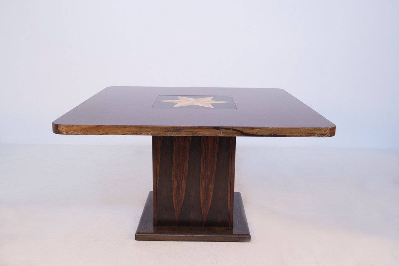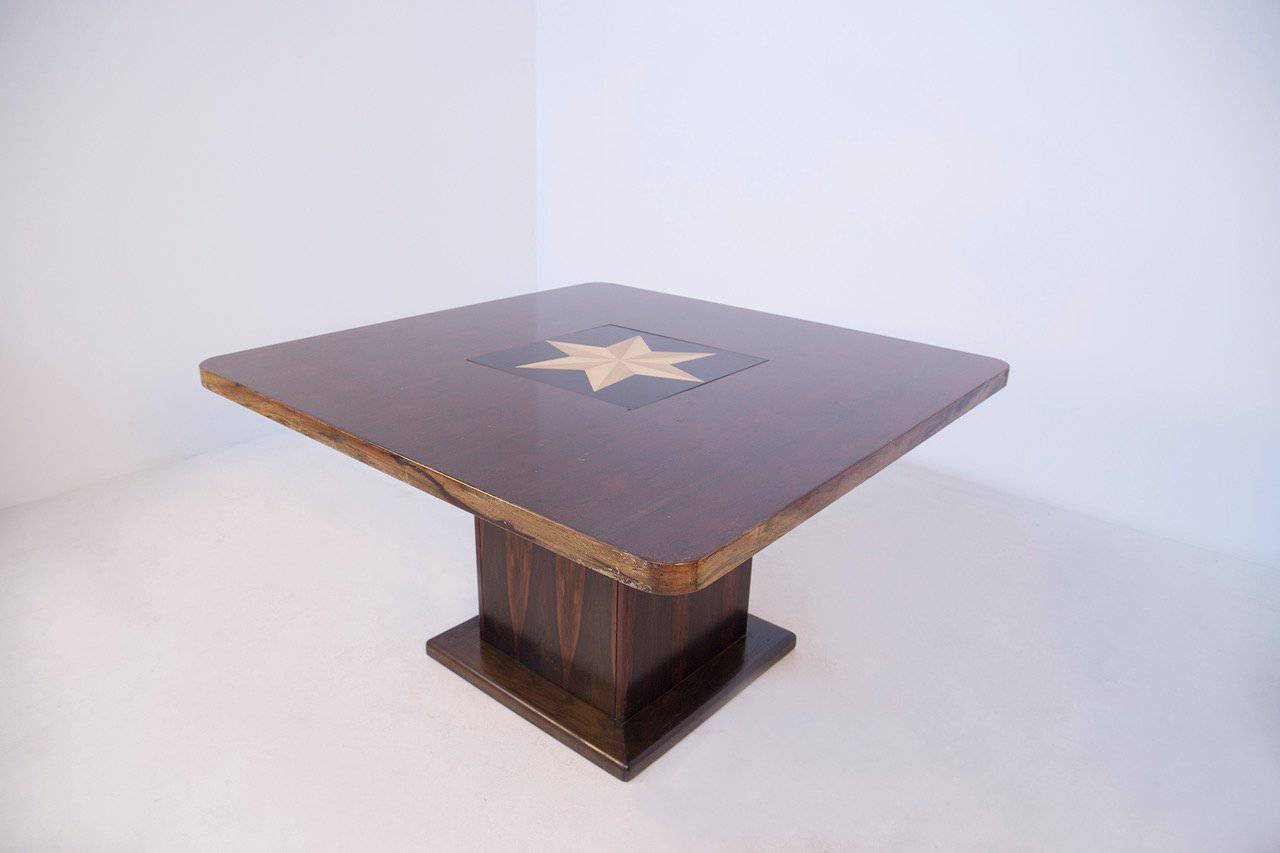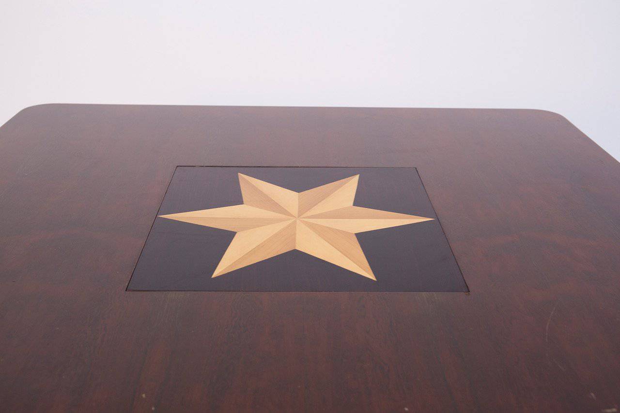 FRANCO ALBINI (Attr.) (Robbiate, 1905 - Milano, 1977). Tavolo quadrato in legno pregiato con stella intarsiata in legno di ciliegio al centro del piano. Anni '50.
