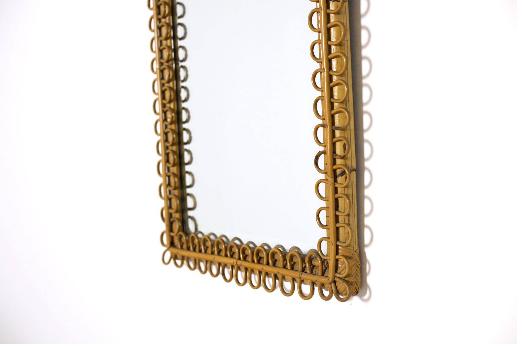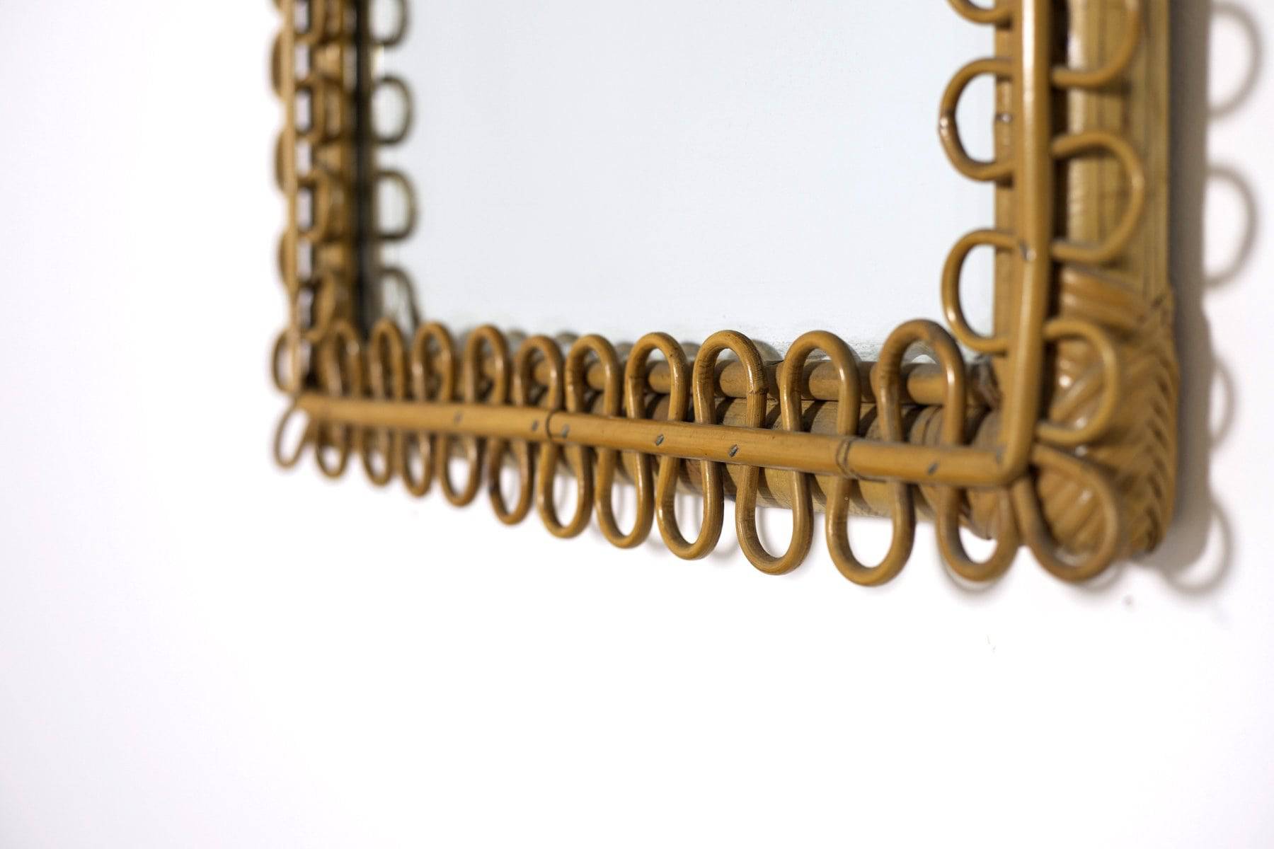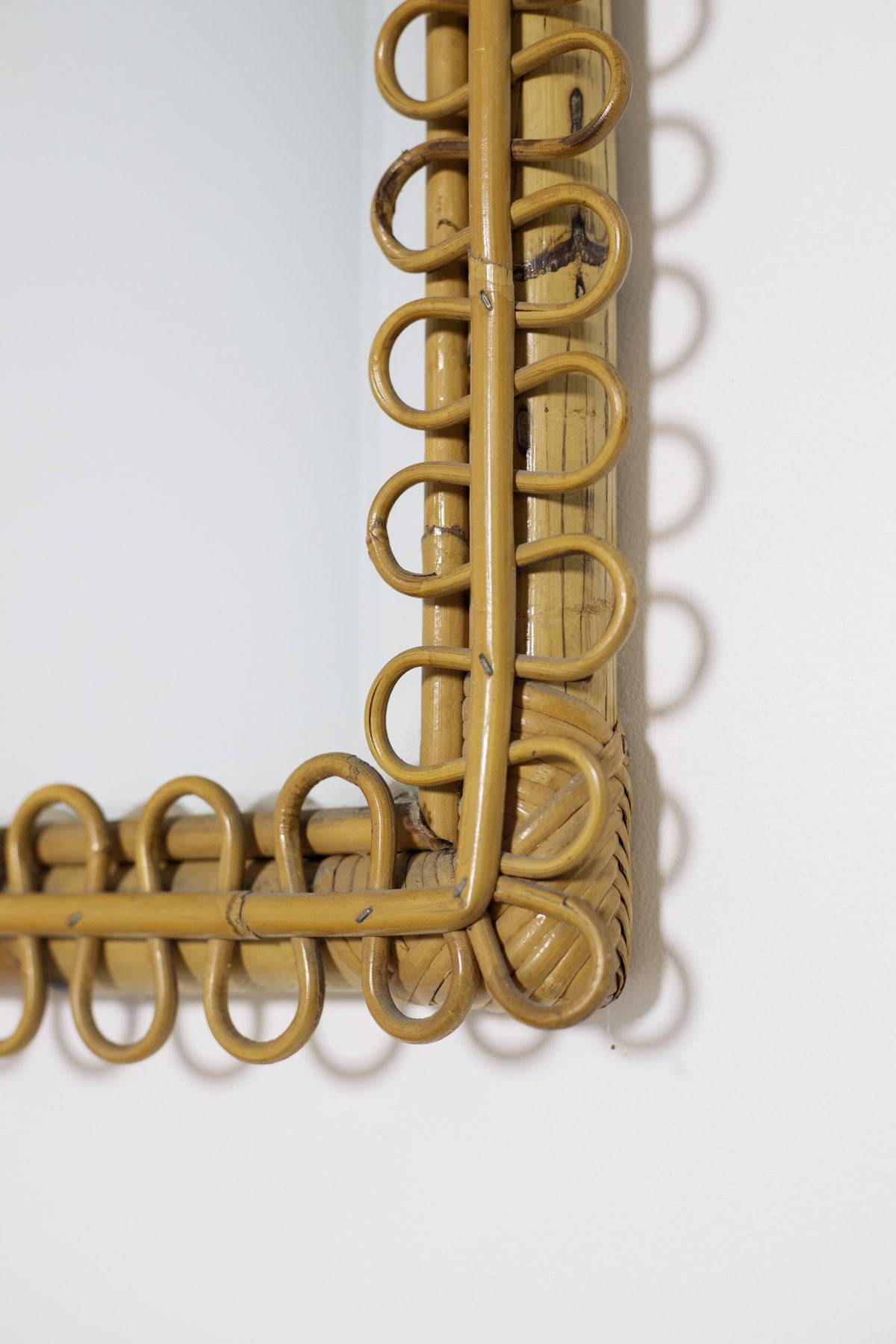 Specchio con cornice in bambù marrone. Manifattura italiana. Anni '50. Mis. Lung. cm. 52 Alt. cm. 63 Prof. cm. 4 ca.