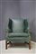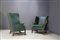 PETER HVIDT (1916 - 1986) & ORLA MOLGAARD-NIELSEN(Aalborg, 1907 -1993). Coppia di poltrone in pelle verde con chiodi in ottone. Anni '40. Mis. Lung. cm. 47 Alt. cm. 80 Prof. cm. 40 ca.