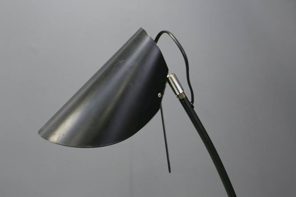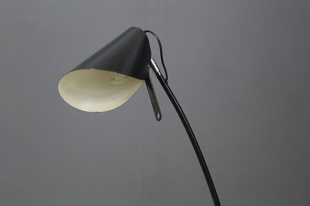 Lampada da terra in ferro e alluminio. Manifattura italiana. Anni '50-'60. Mis. Lung. cm. 20 Alt. cm. 130 Prof. cm. 18 ca.