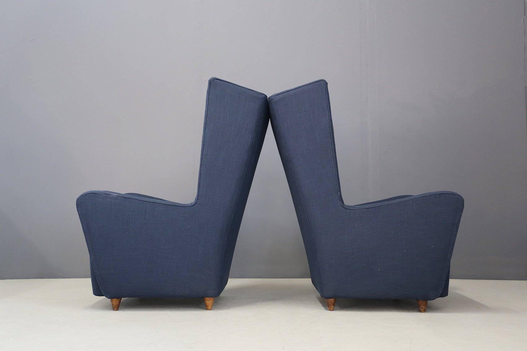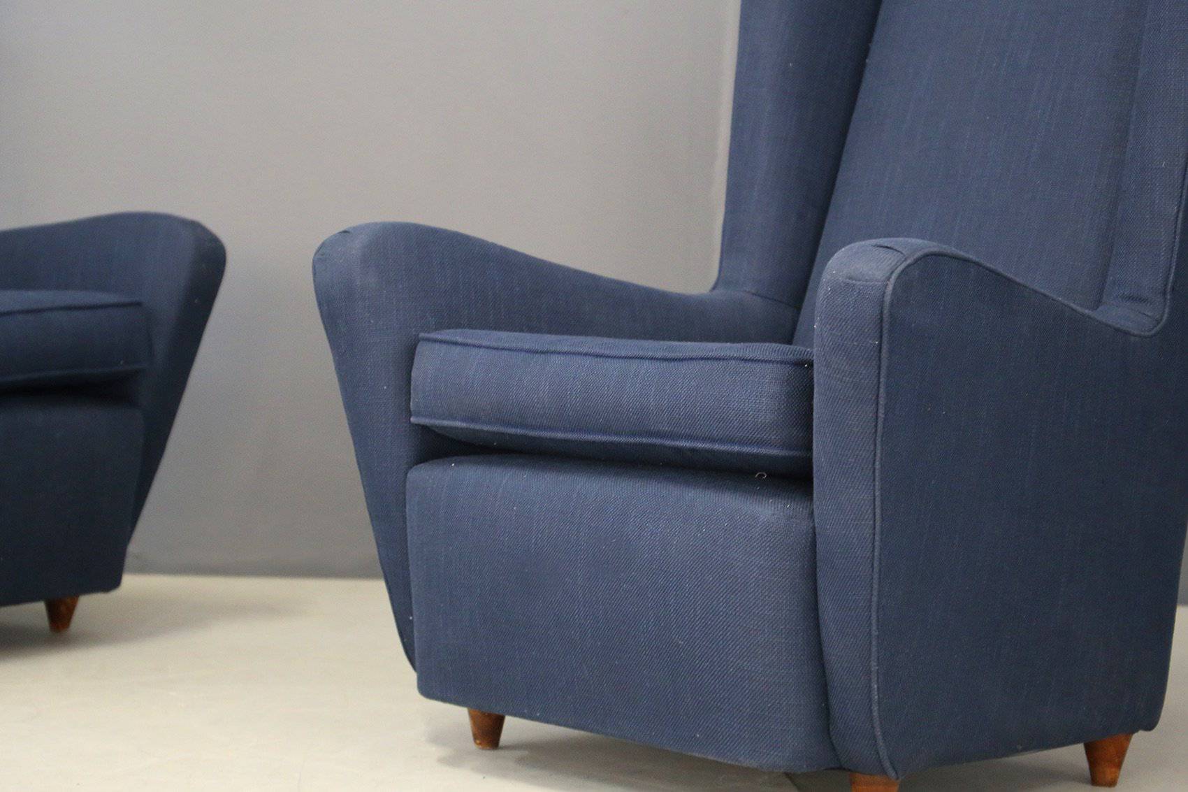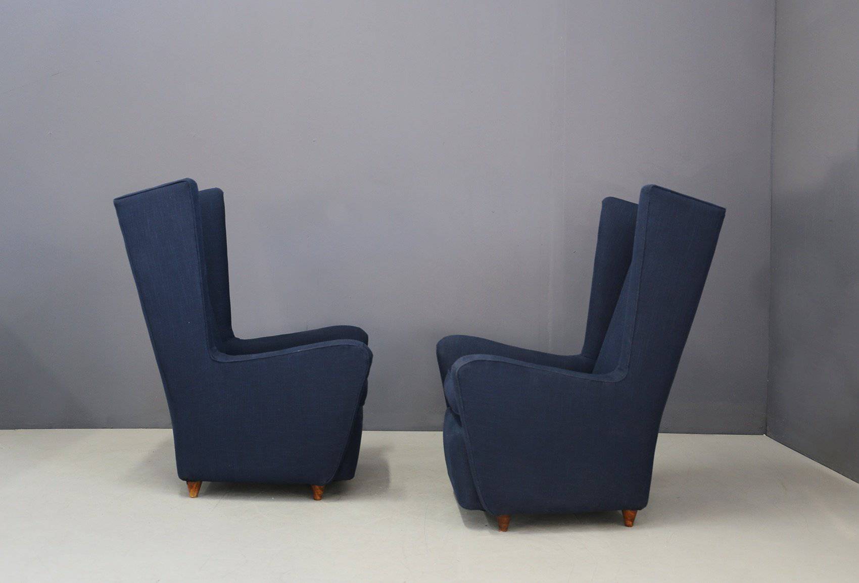 PAOLO BUFFA (Milano, 1903-1970). Coppia di poltrone in legno e tessuto. Anni '50. Rifoderate. Mis. Lung. cm. 70 Alt. cm. 110 Prof. cm. 95 ca.