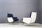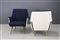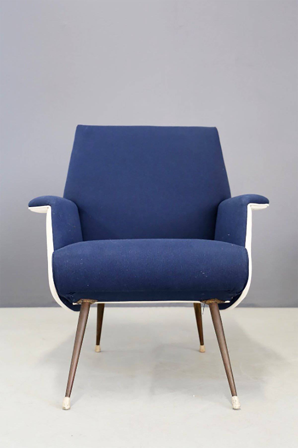 GIUSEPPE ROSSI (Casagiove, 1939) per ALBIZZATE, Varese. Coppia di poltrone in ottone e stoffa bicolore. 1956. Pubblicate in Domus n. 323 10/ del 1956. Rifoderate. Mis. Lung. cm. 56 Alt. cm. 80 Prof. cm. 70 ca.