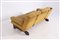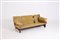 Divano due posti in tessuto color ocra, ottone e struttura in legno. Produzione G. ROSSI DI ALBIZZATE. Con etichetta del produttore. Anni '60 Mis. Lung. cm. 178 Alt. cm. 66 Prof. cm. 94 ca.