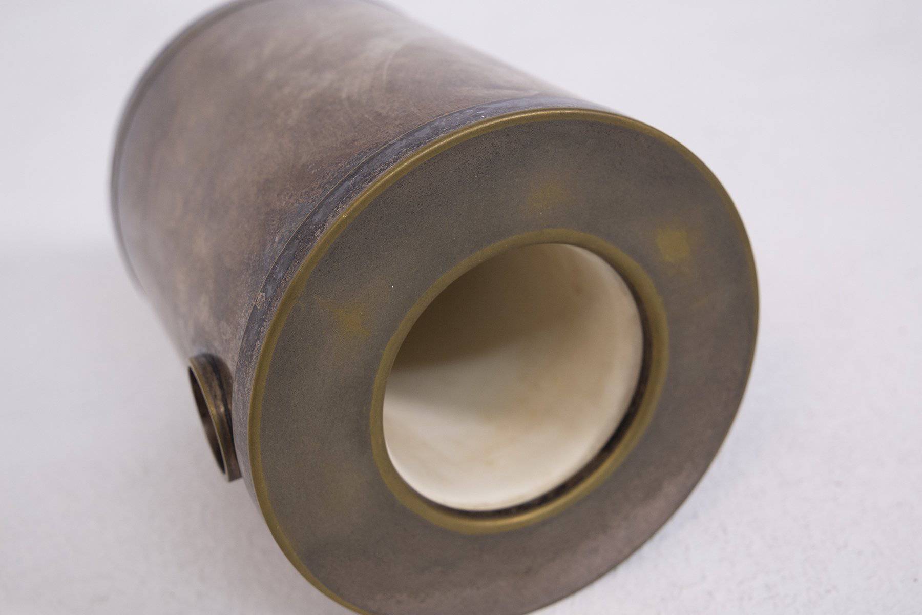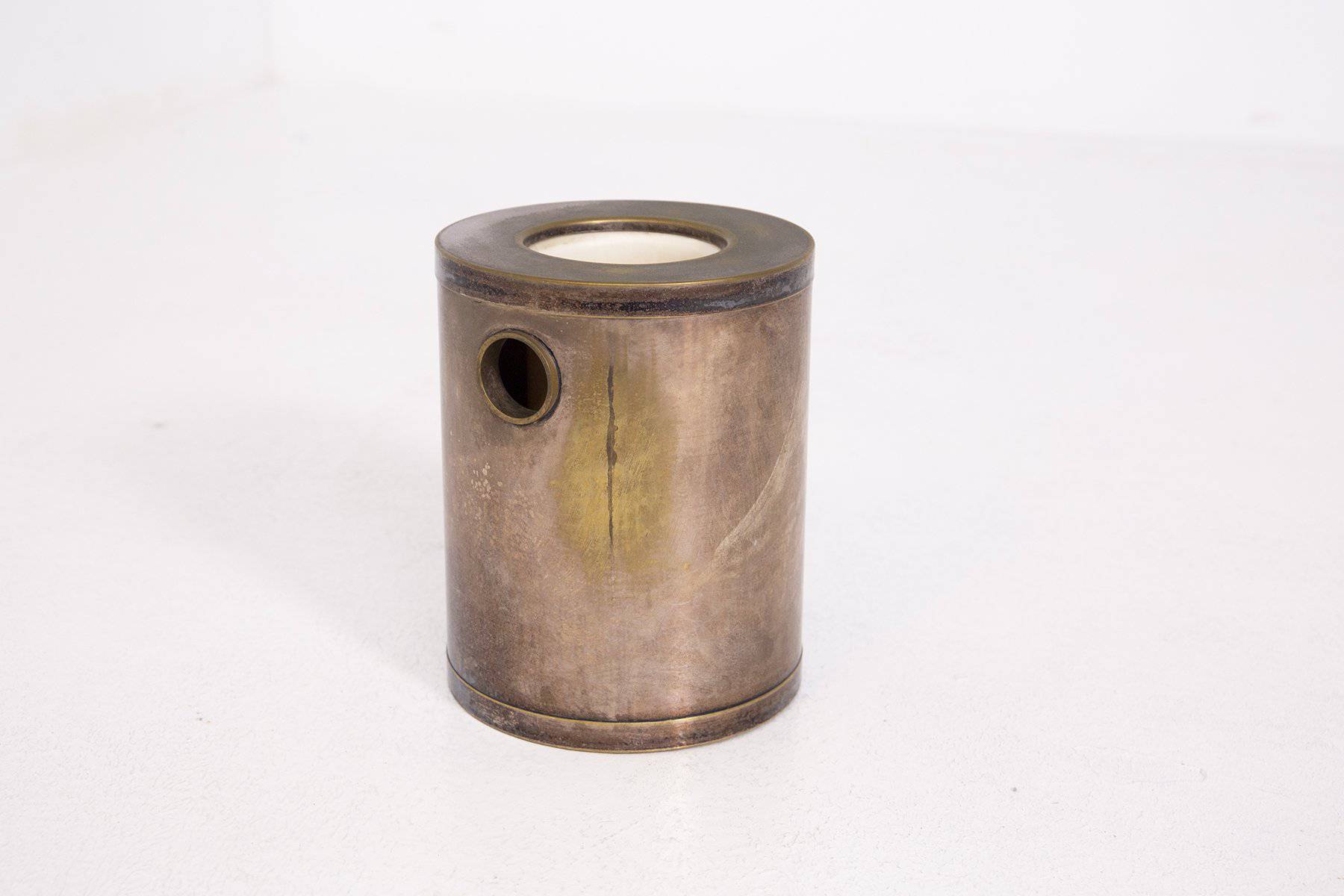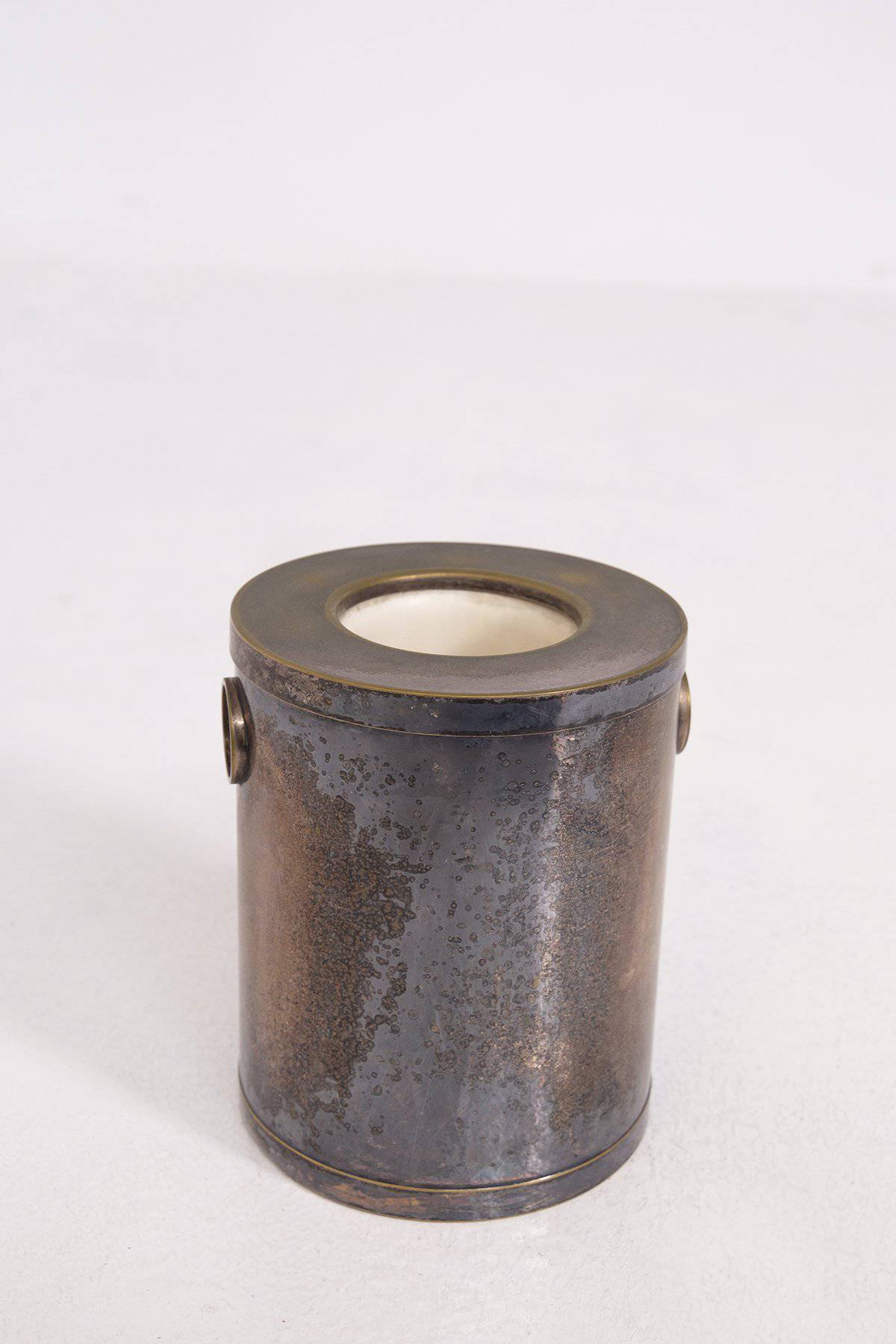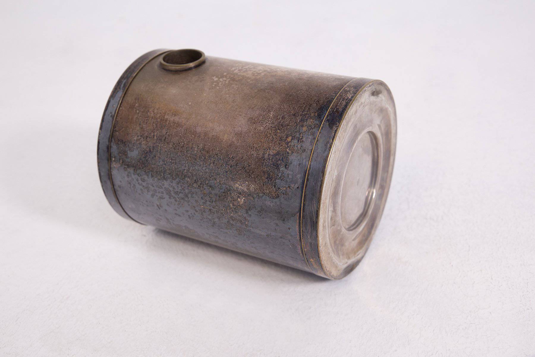 Secchiello portabottiglie in metallo argentato e plastica. Manifattura italiana. Anni '60. Mis. Lung. cm. 168 Alt. cm. 66 Prof. cm. 94 ca.