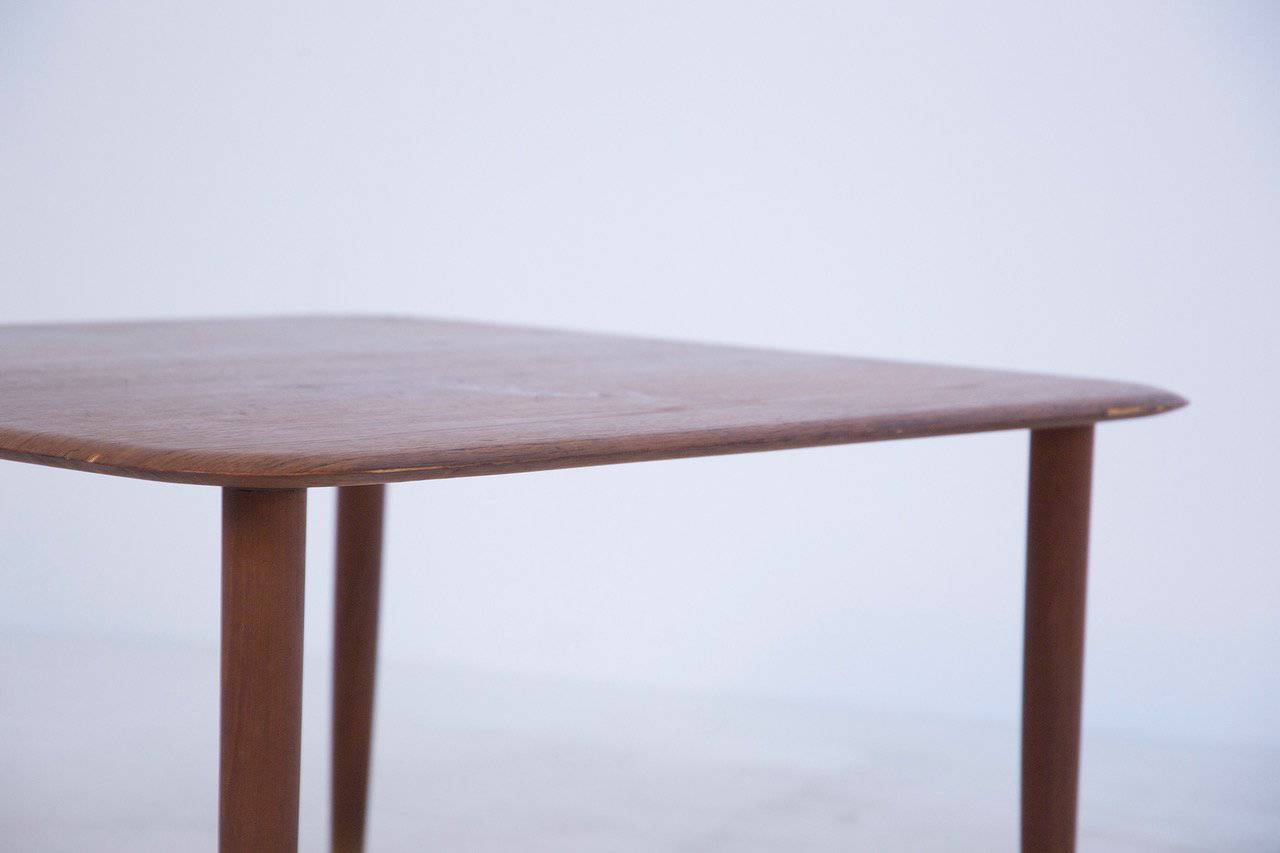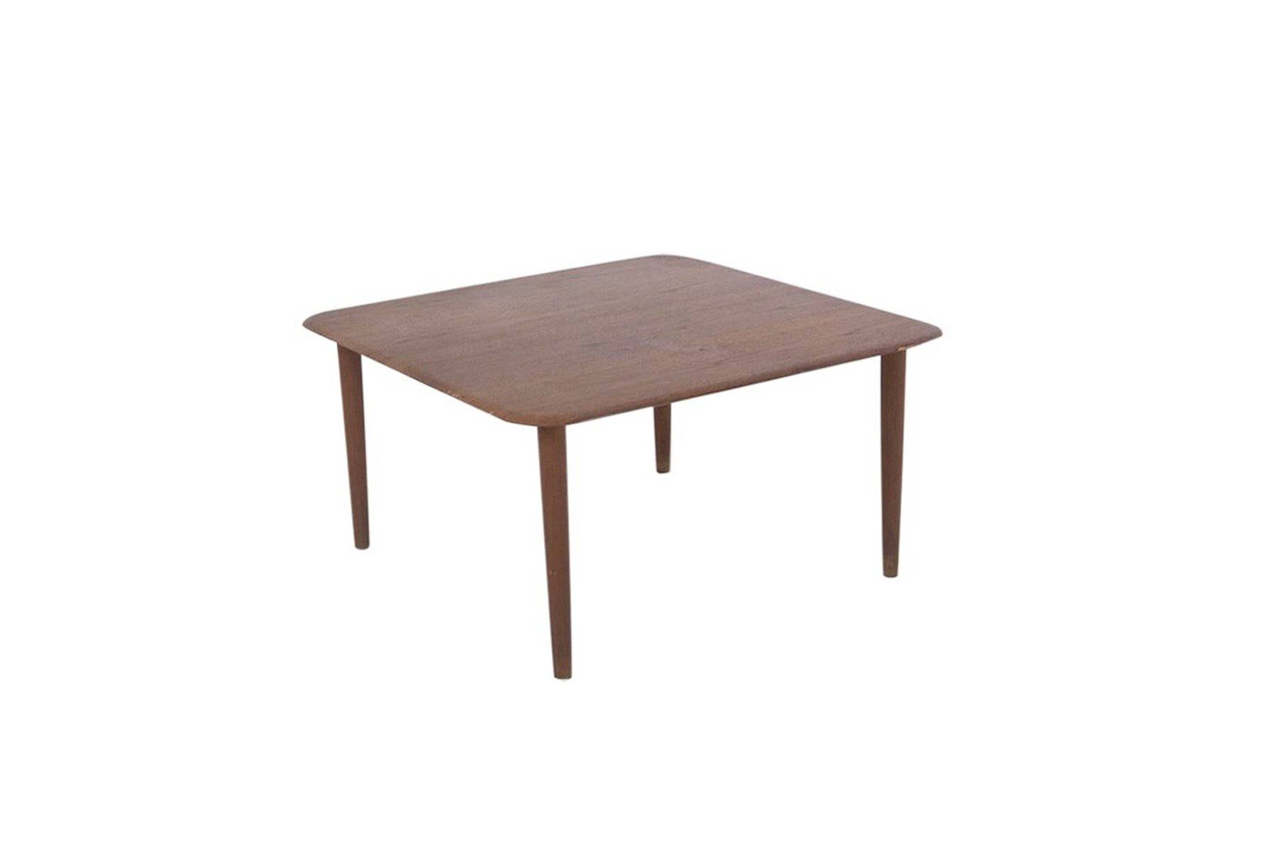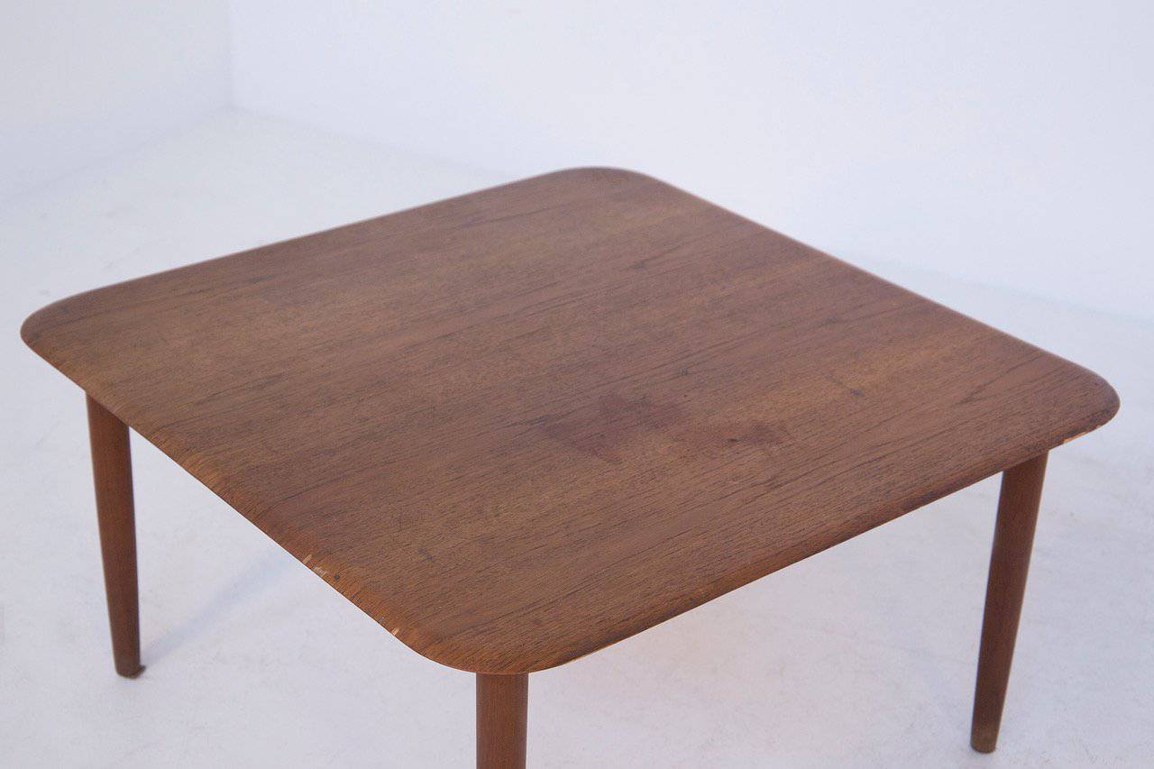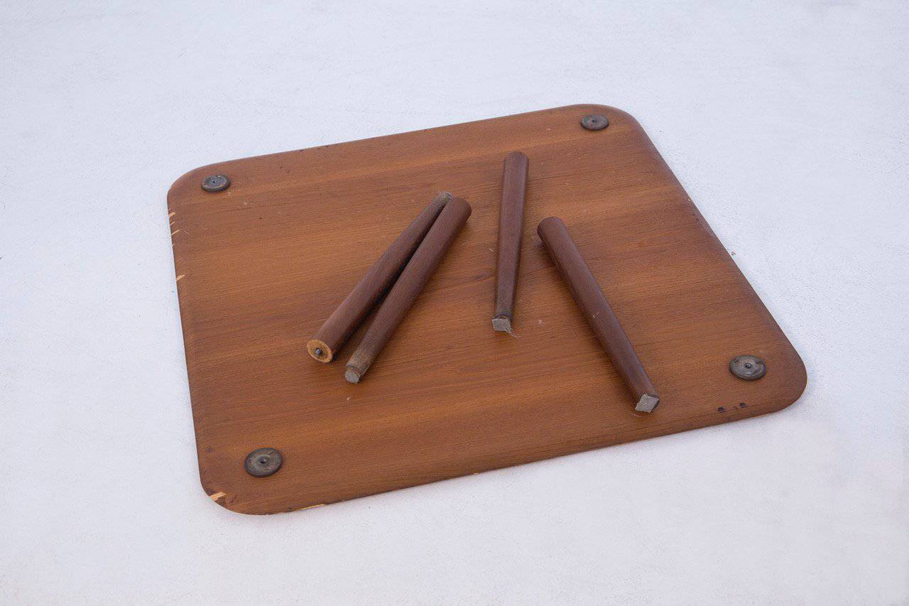 TAPIO WIRKKALA (Hanko 1915 - Helsinki, 1985). Tavolino da centro in legno e ottone con gambe removibili. Anni '50. Mis. Lung. cm. 84 Alt. cm. 45 Prof. cm. 84 ca.