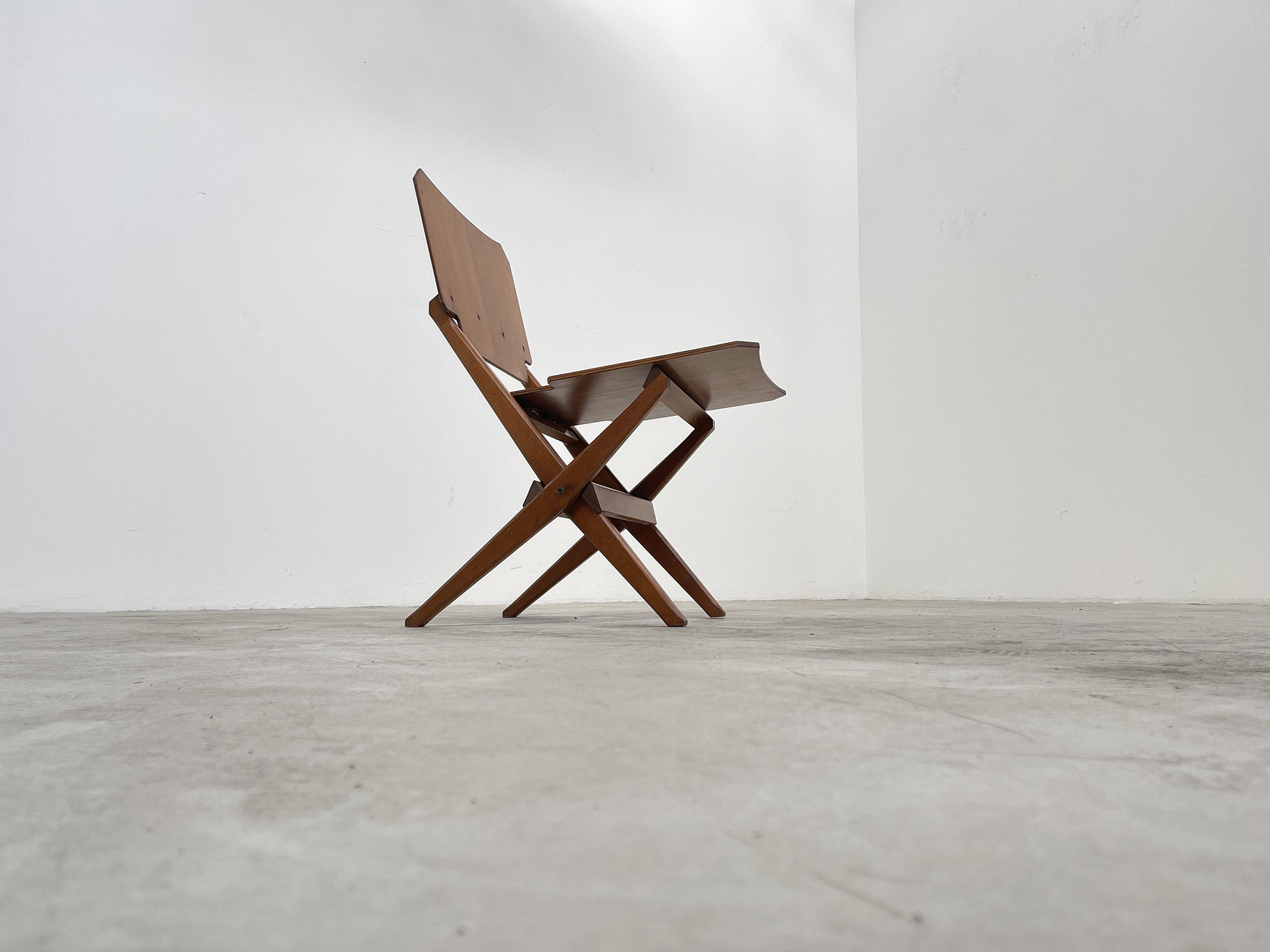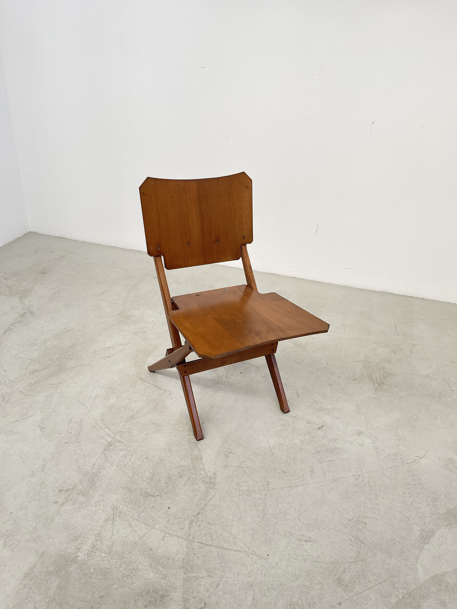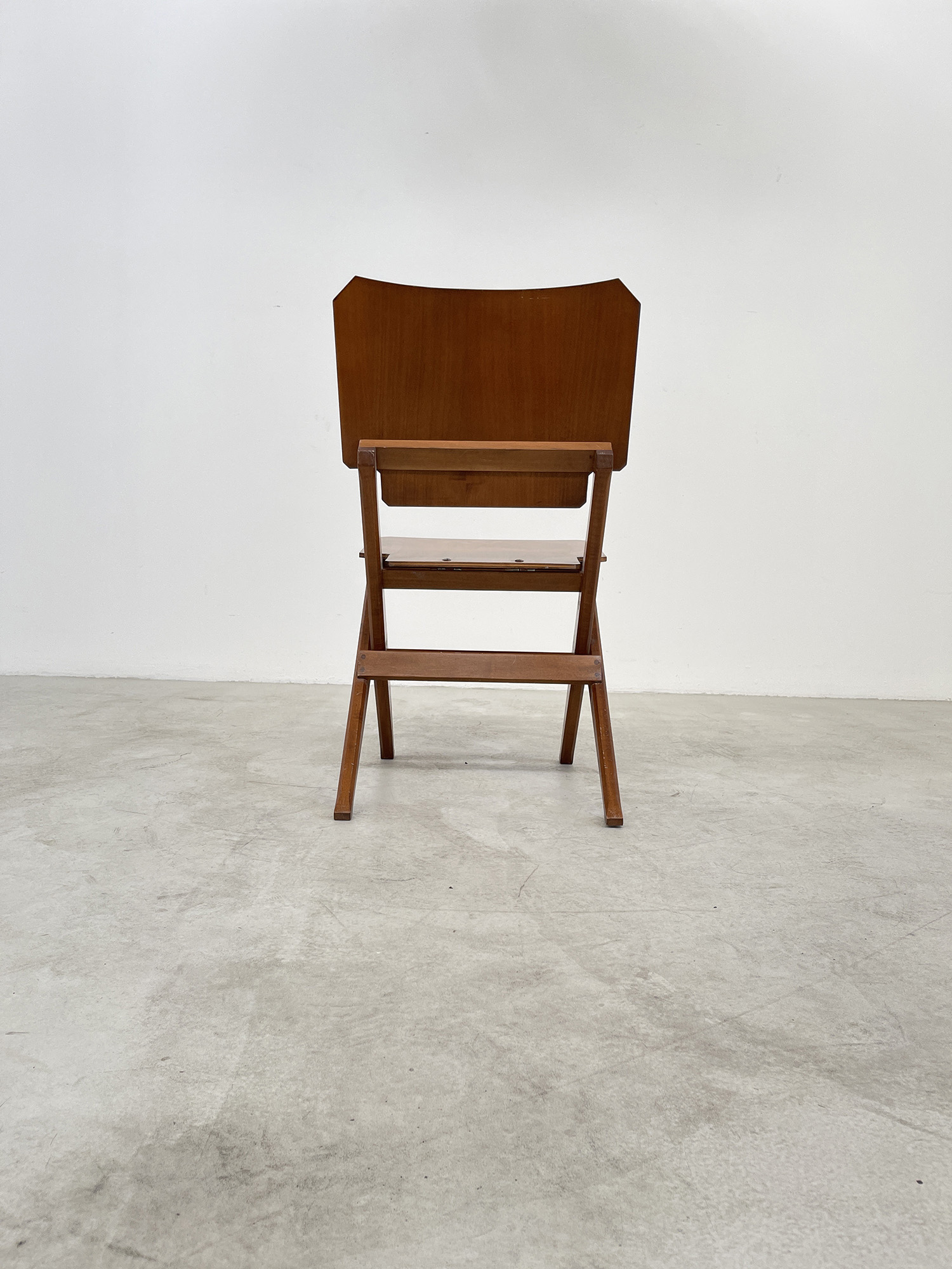 FRANCO ALBINI (Robbiate, 1905 - Milano, 1977) per POGGI PAVIA. Sedia pieghevoli con struttura in legno massello e seduta e schienale in multistrato. 1962. Pubblicata nel catalogo della mostra Franco Albini & Franca Helg Design, 15 aprile - 30 maggio 2009. Mis. Lung. cm. 40 Alt. cm. 77 Prof. cm. 40 ca.