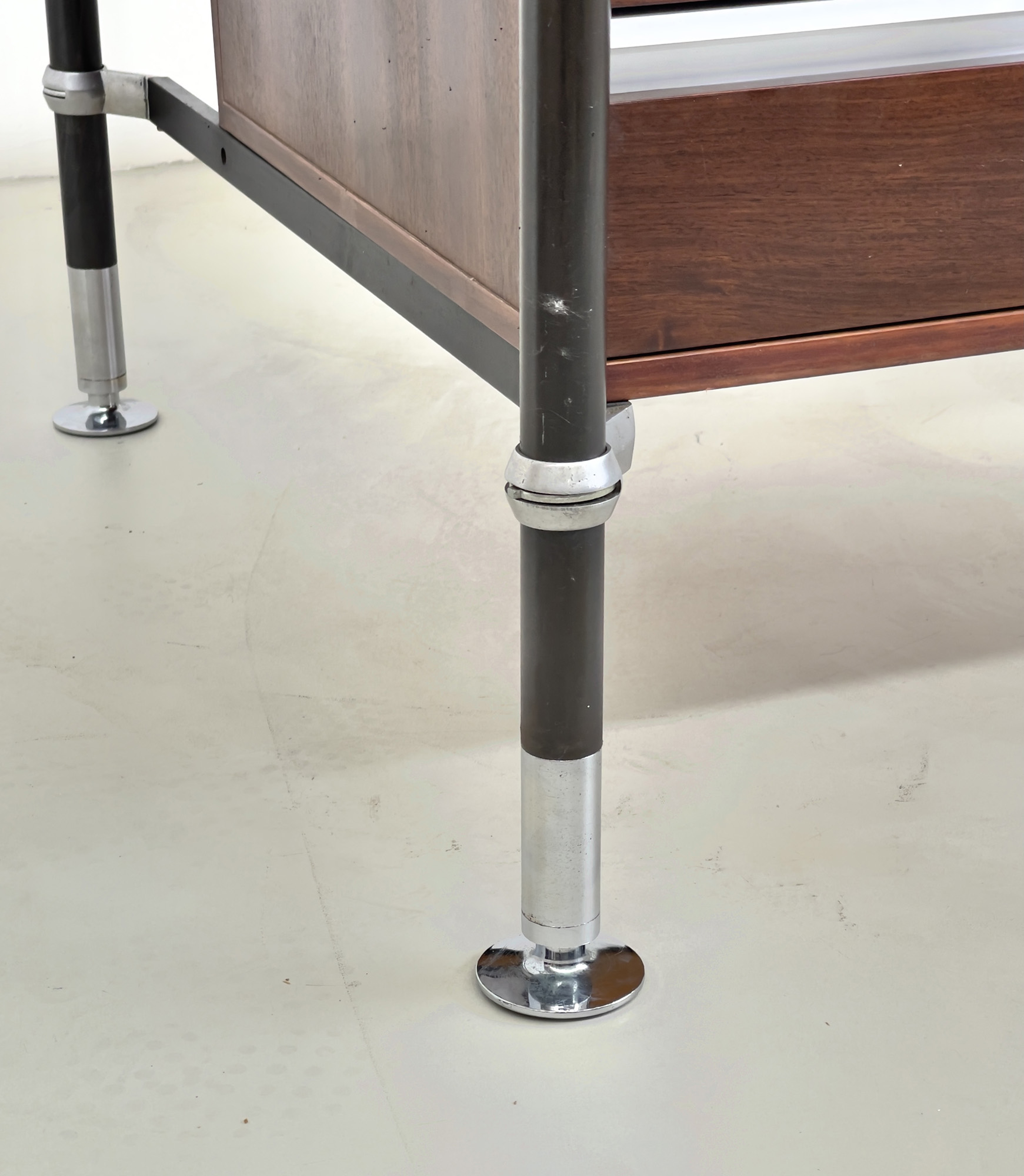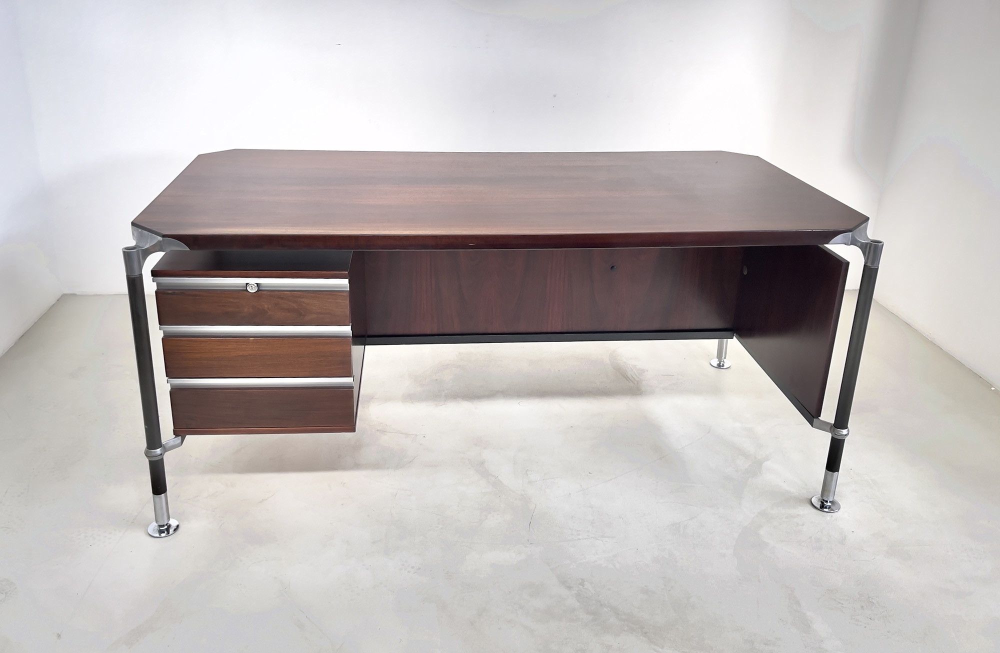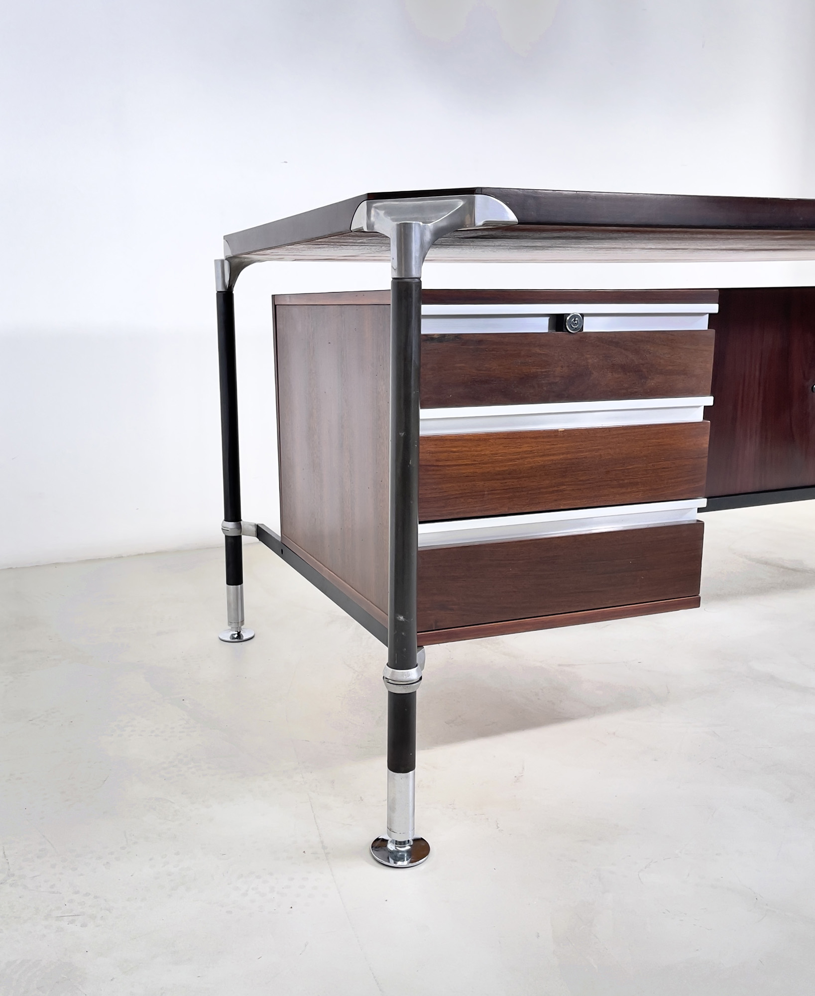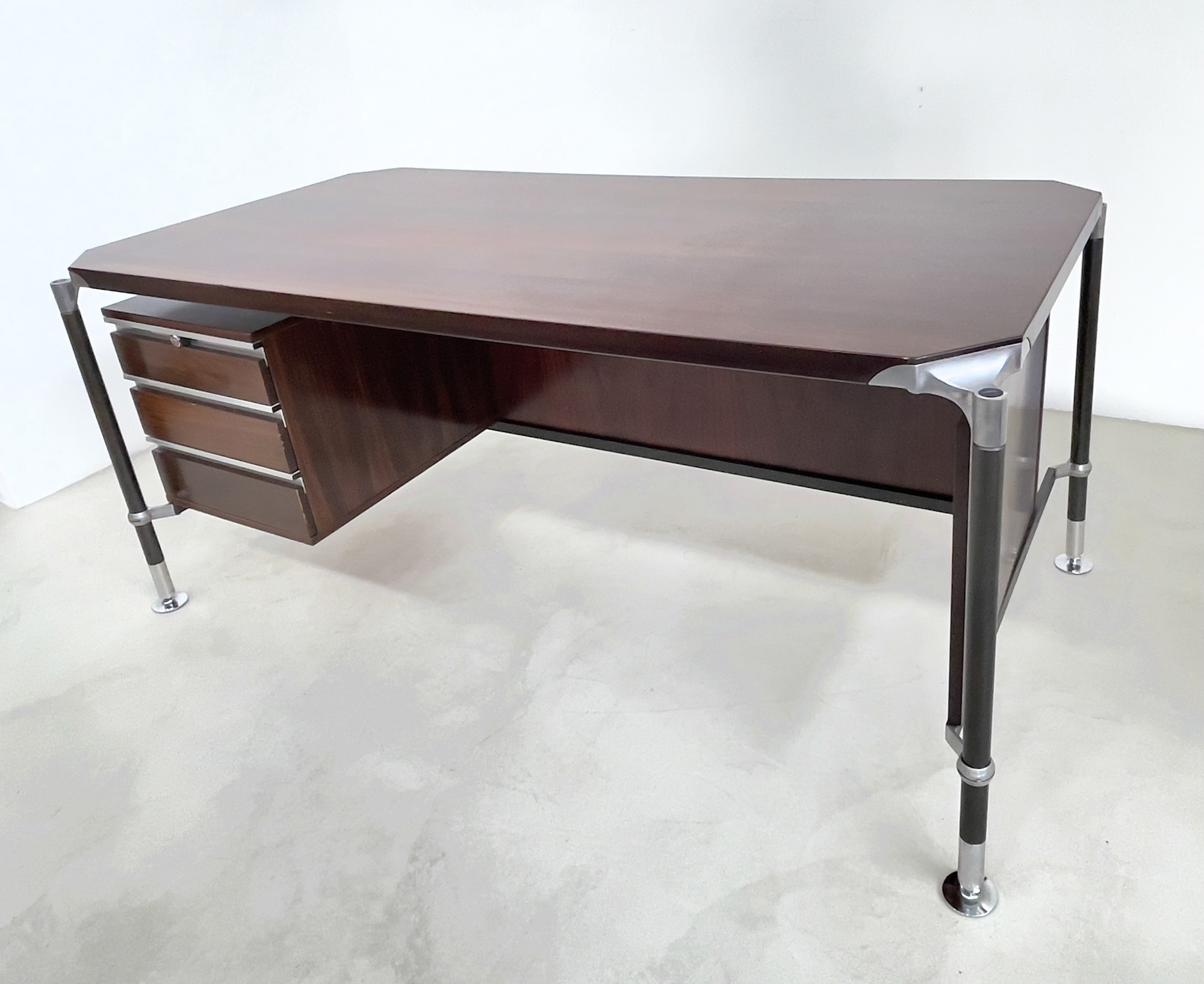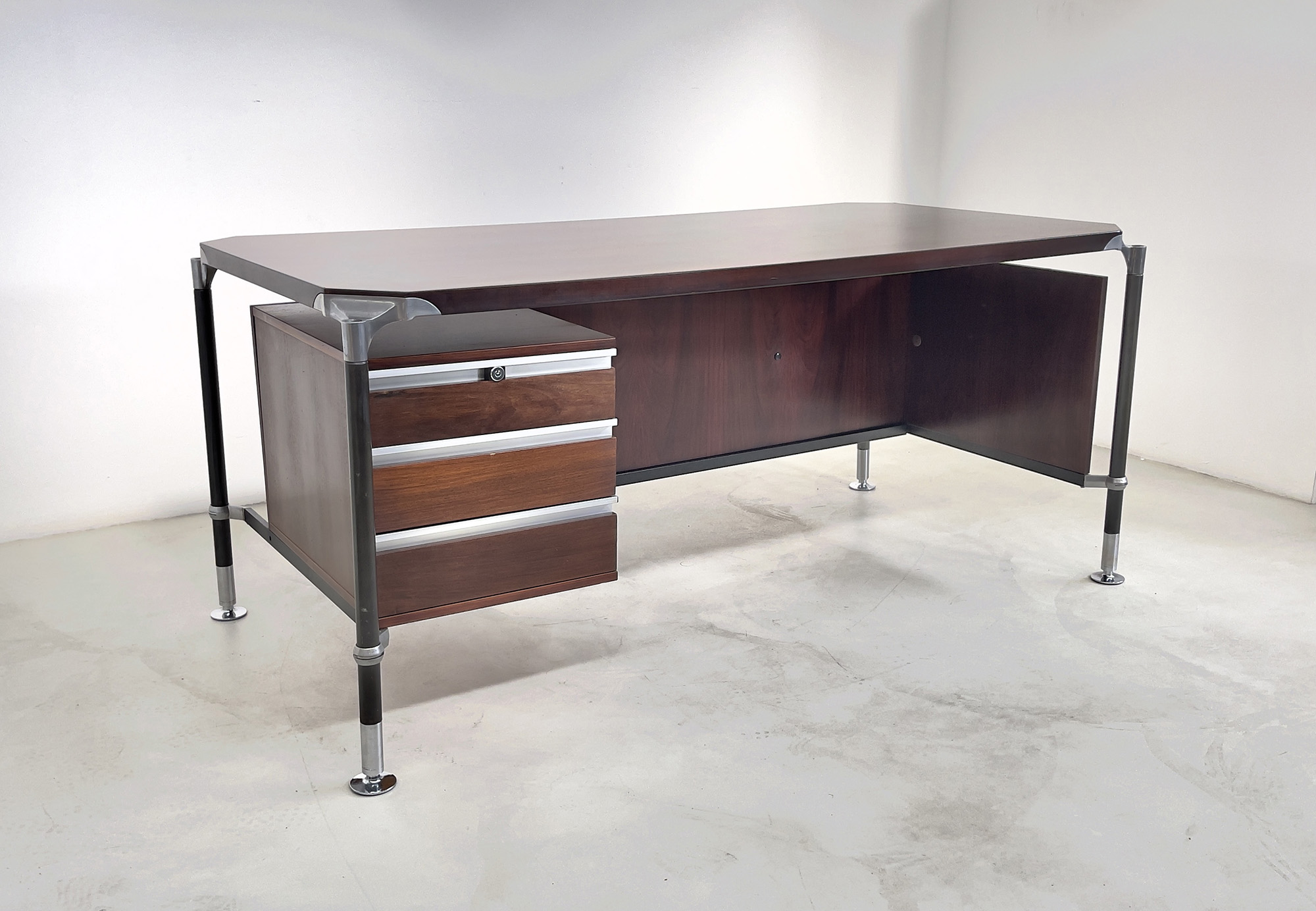 ICO PARISI per MIM. Scrivania in legno, alluminio e ferro verniciato. Anni '60. Mis. Lung. cm. 180 Alt. cm. 81 Prof. cm. 90 ca.