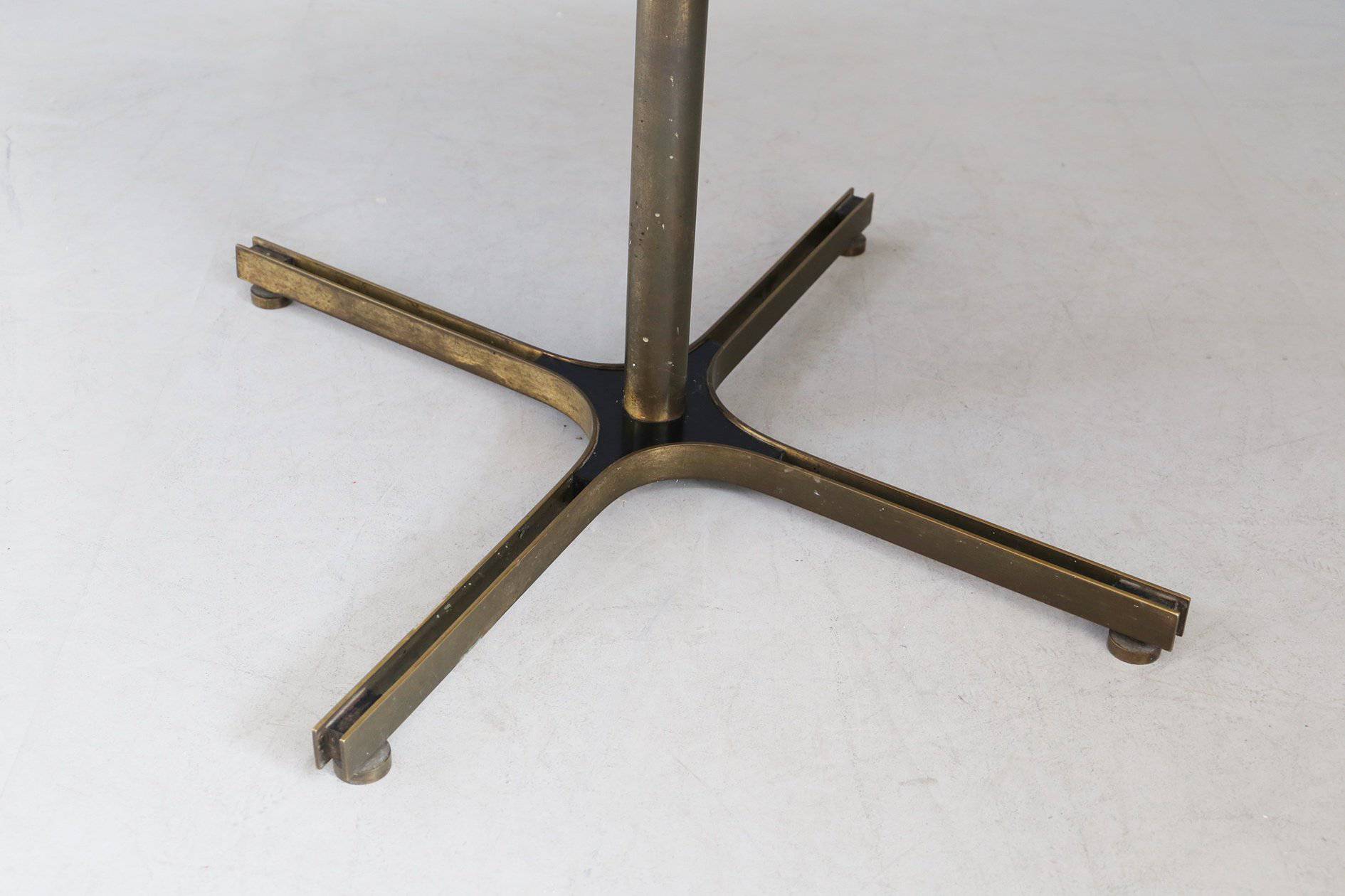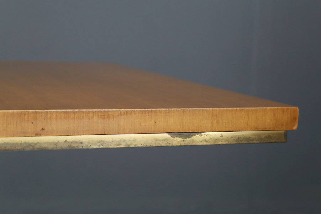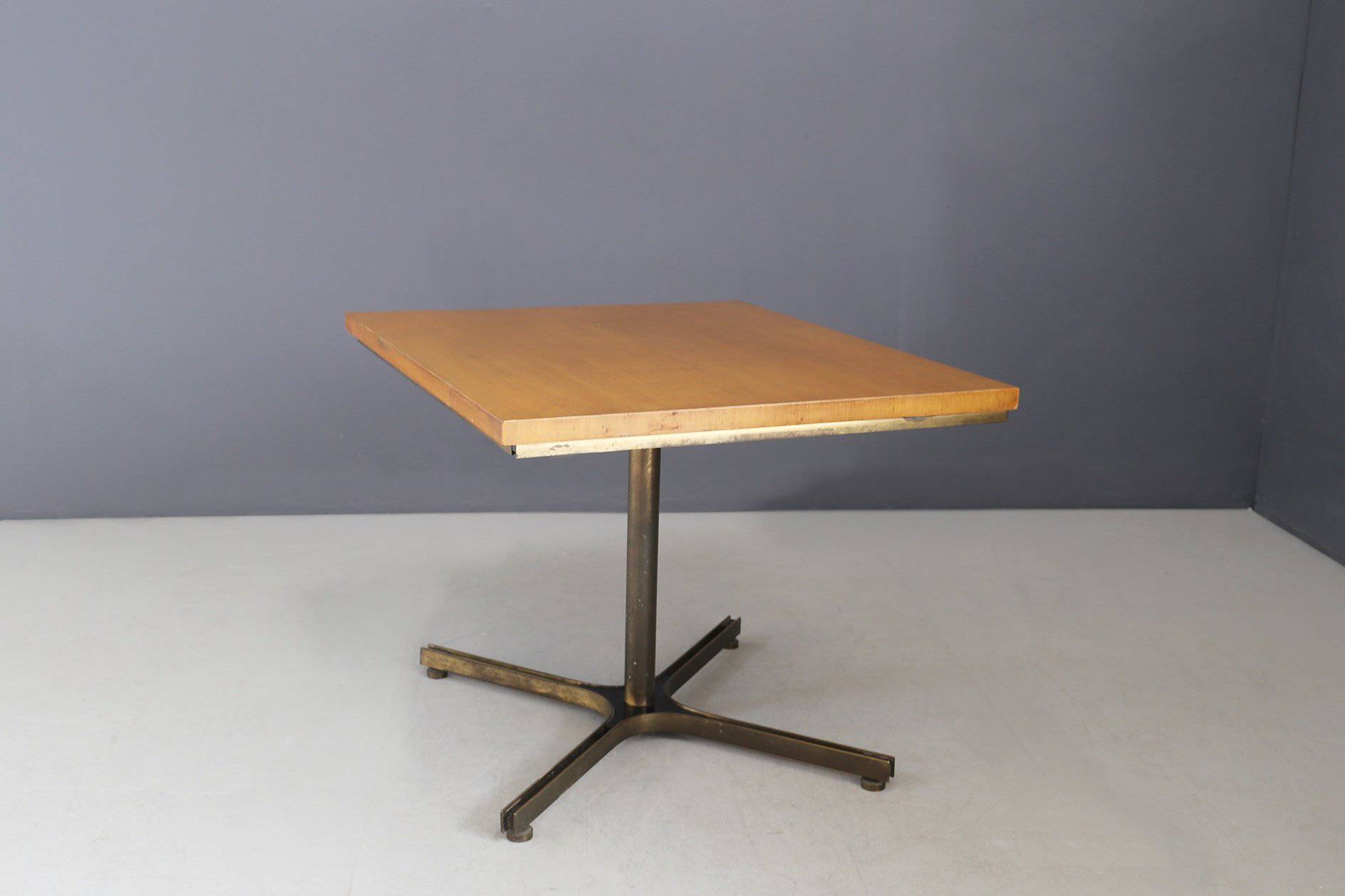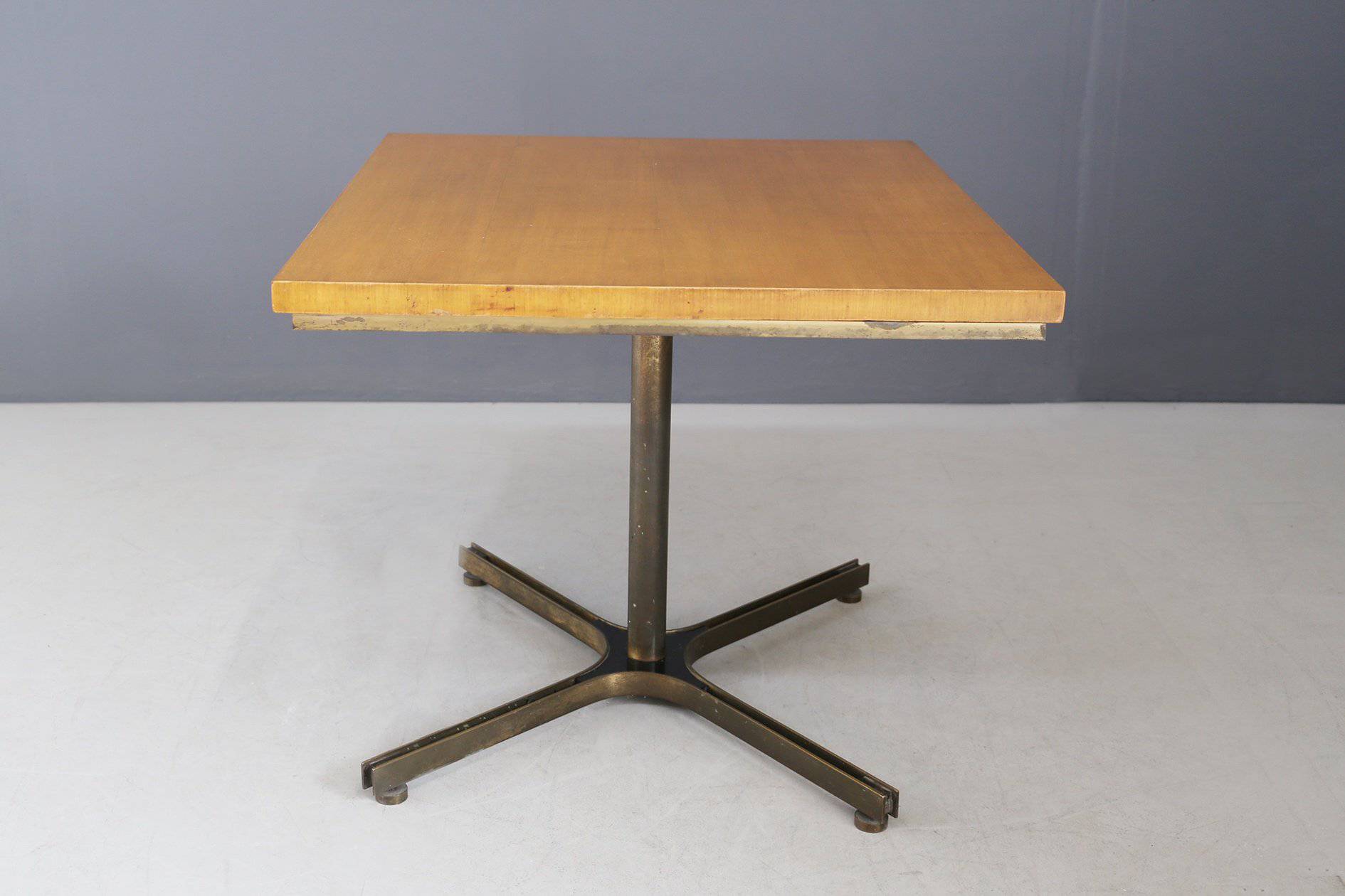 IGNAZIO GARDELLA (Attr.) (Milano, 1905 - Oleggio, 1999). Raro tavolo quadrato in legno con base in ottone. Anni '50. Mis. Lung. cm. 105 Alt. cm. 76 Prof. cm. 96 ca.