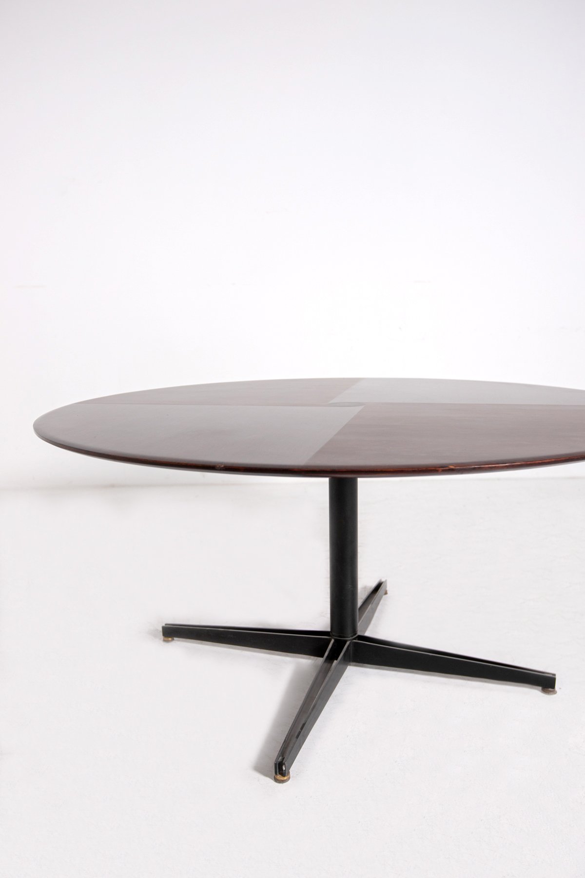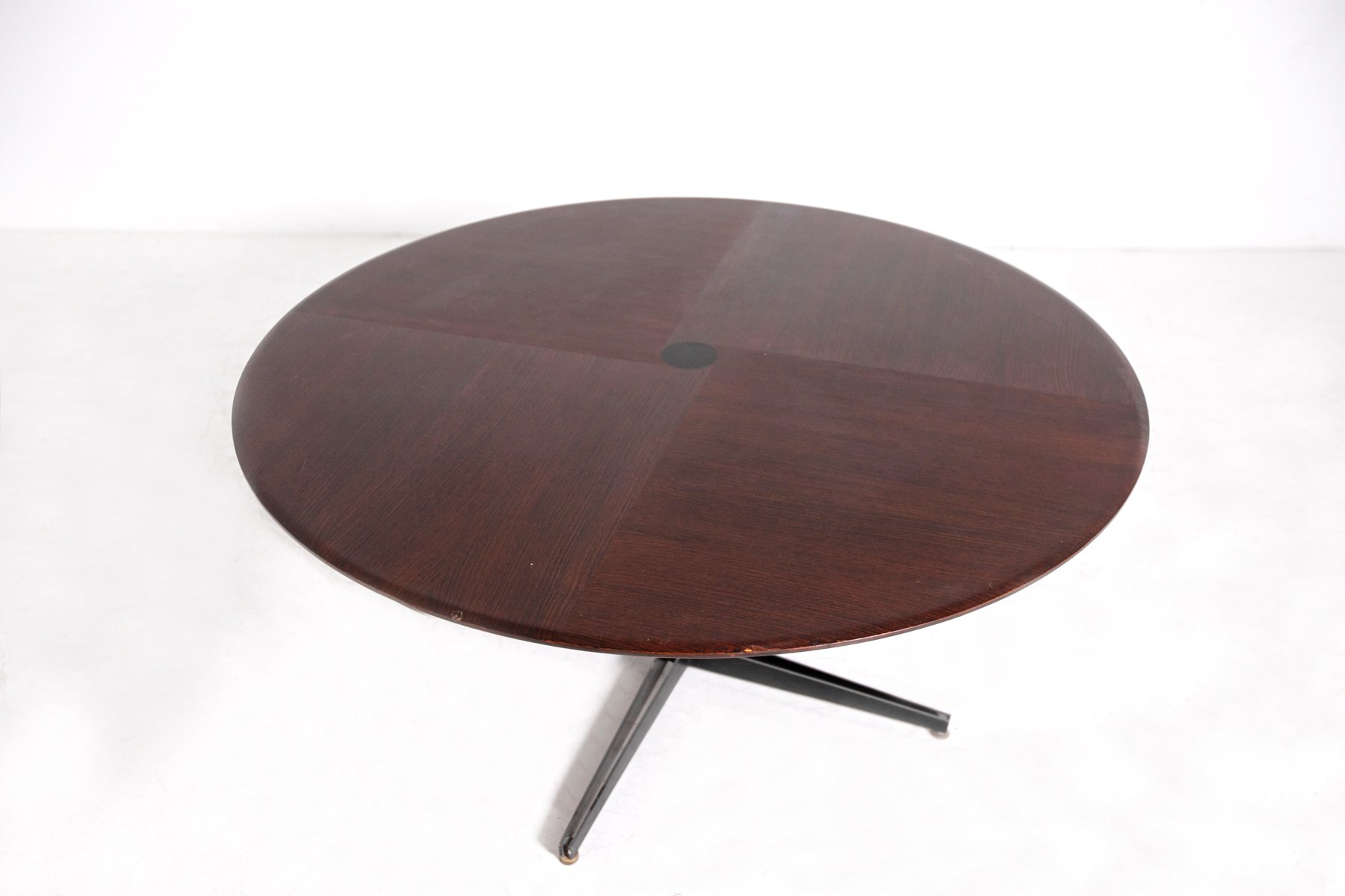OSVALDO BORSANI (Varedo, 1911 - Milano, 1985) per TECNO. Tavolino in legno e ferro. Anni '50. Lievi difetti. Mis. Lung. cm. 120 Alt. cm. 56 Prof. cm. 120 ca.