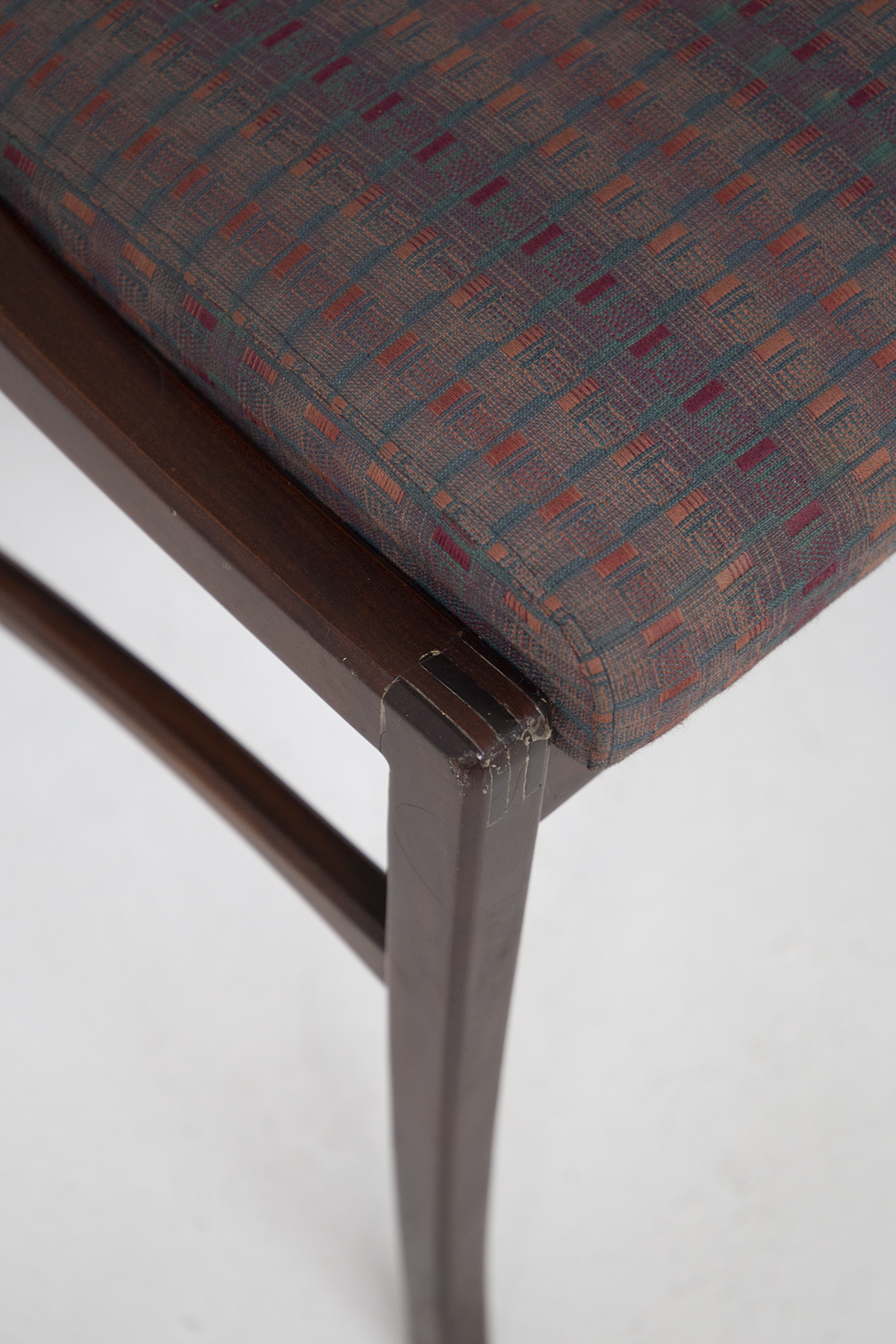Lot 380 | Four wooden and fabric chairs. Italy. 1970s