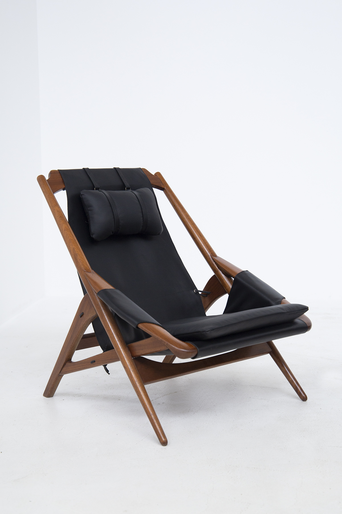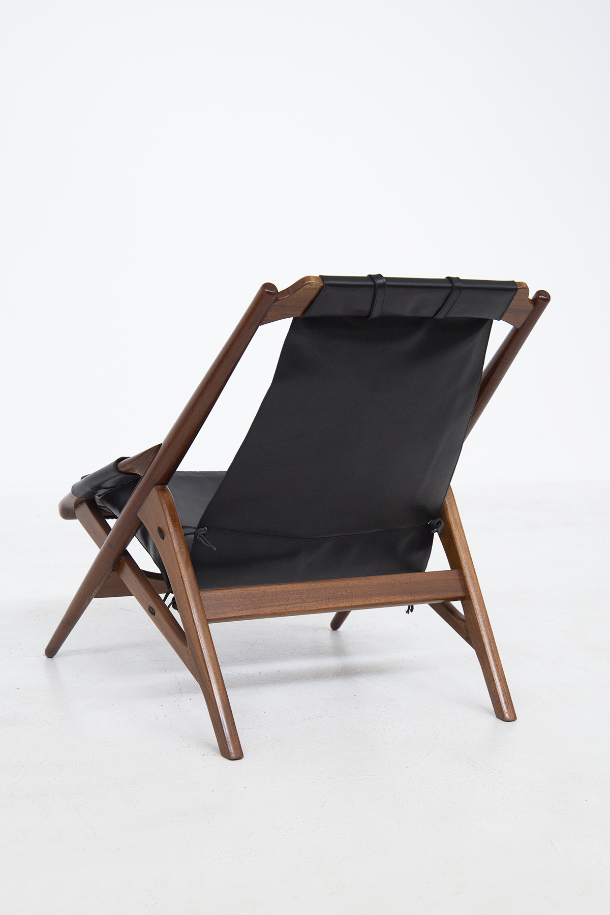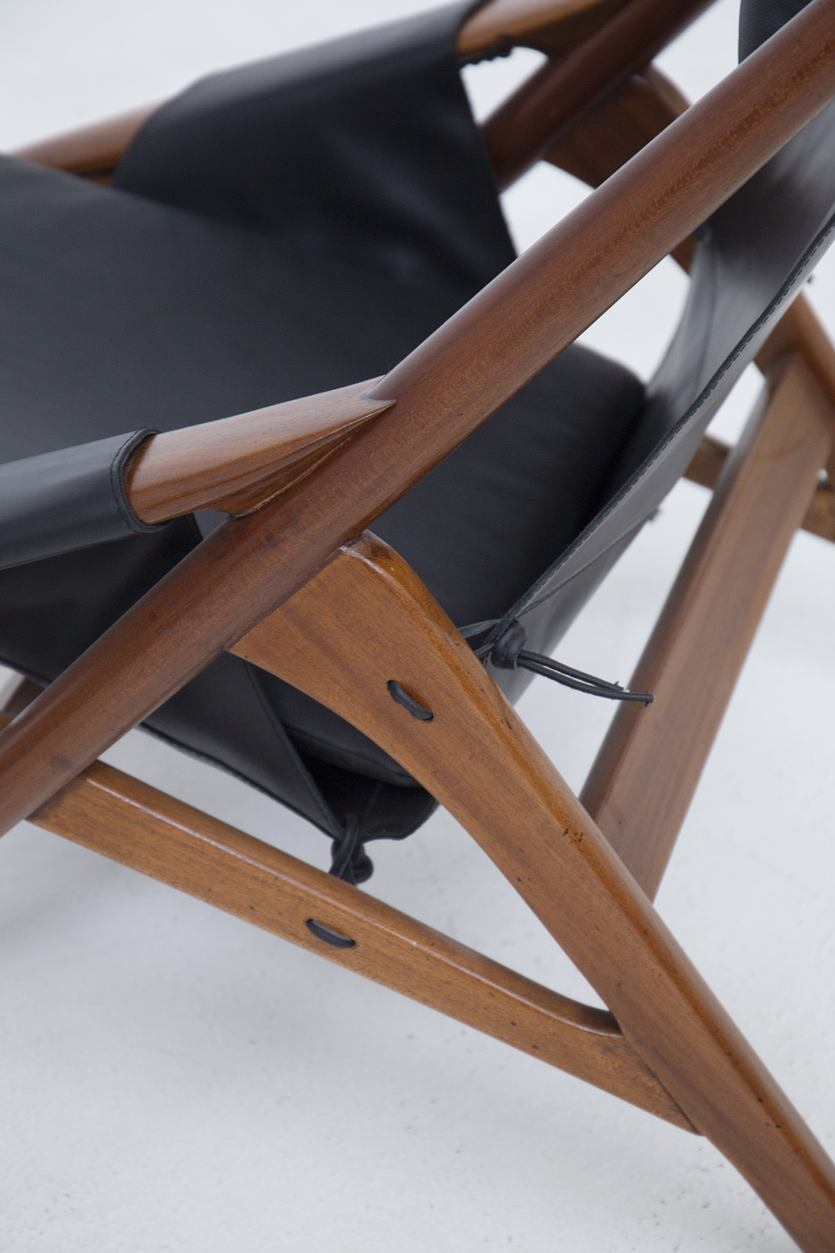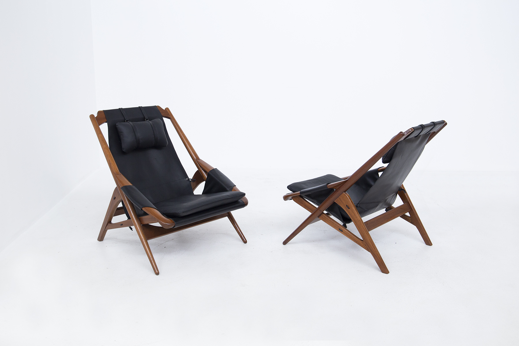 W. D. ANDERSAG per IDEAL PIACENZA. Due poltrone in legno con seduta in pelle. 1959 Mis. Lung. cm. 77 Alt. cm. 84 Prof. cm. 80 ca.