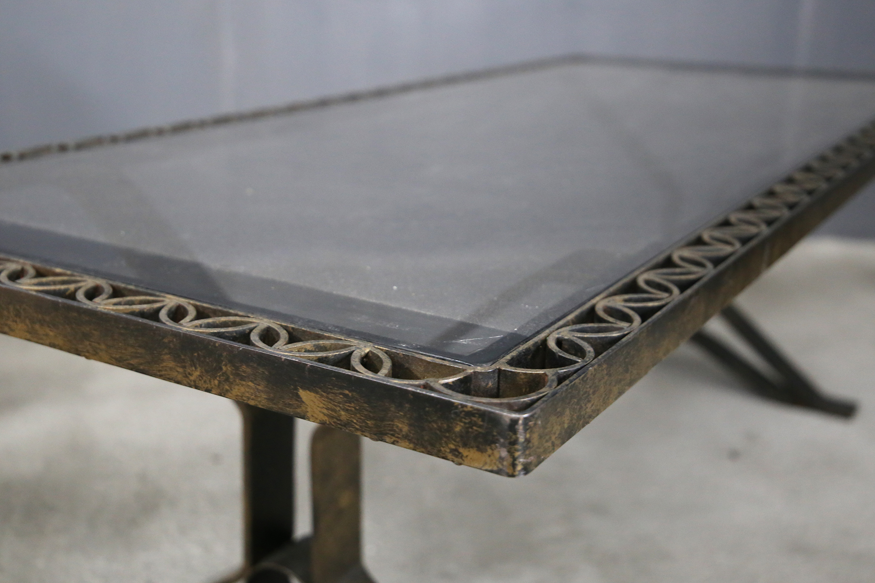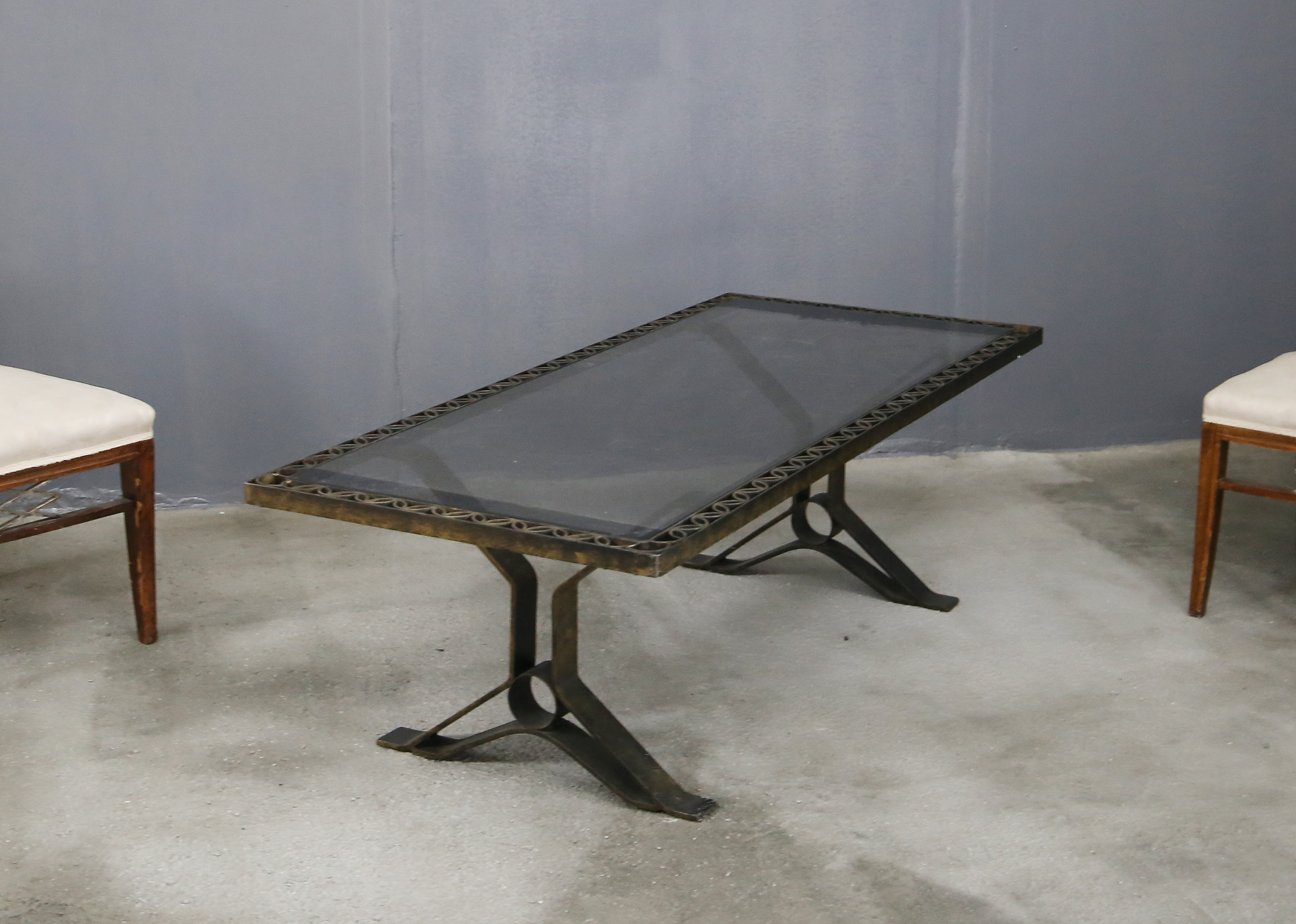 Tavolino in ferro e vetro scuro. Manifattura francese. Anni '40.