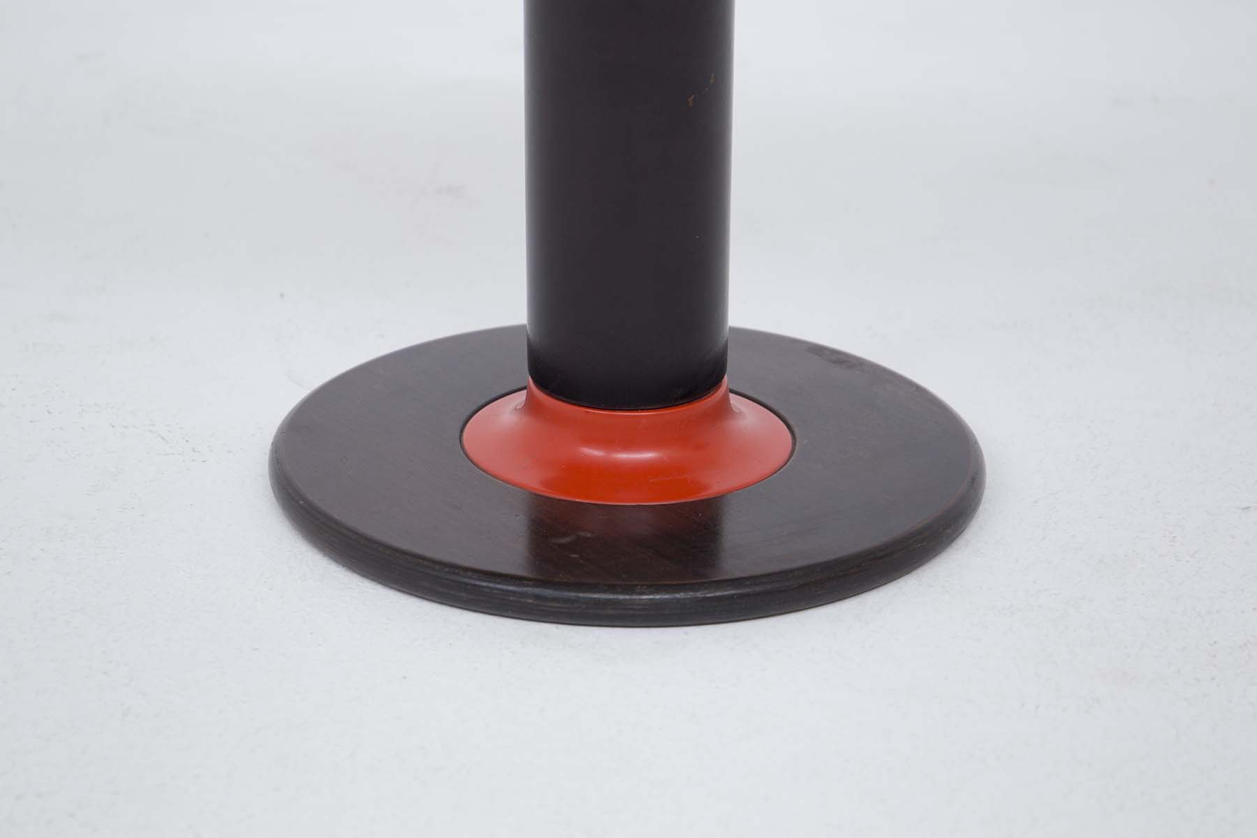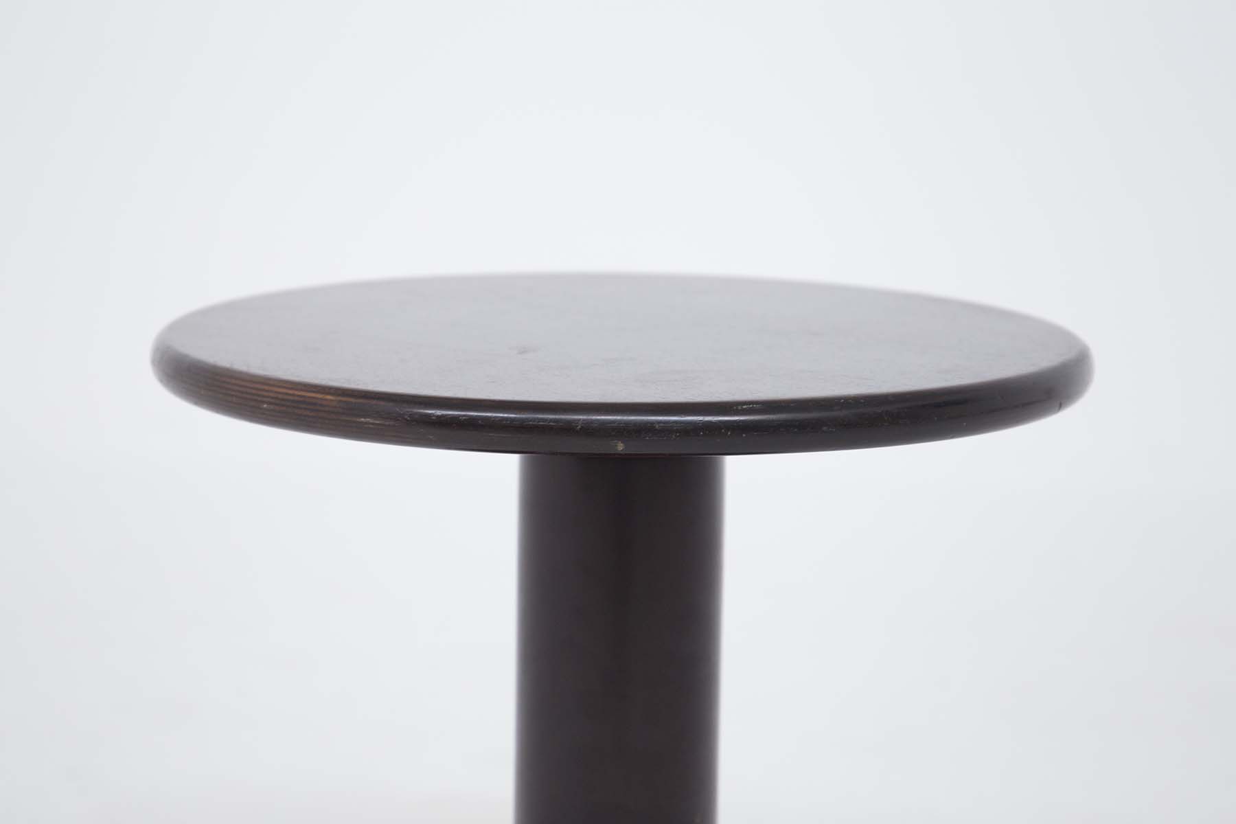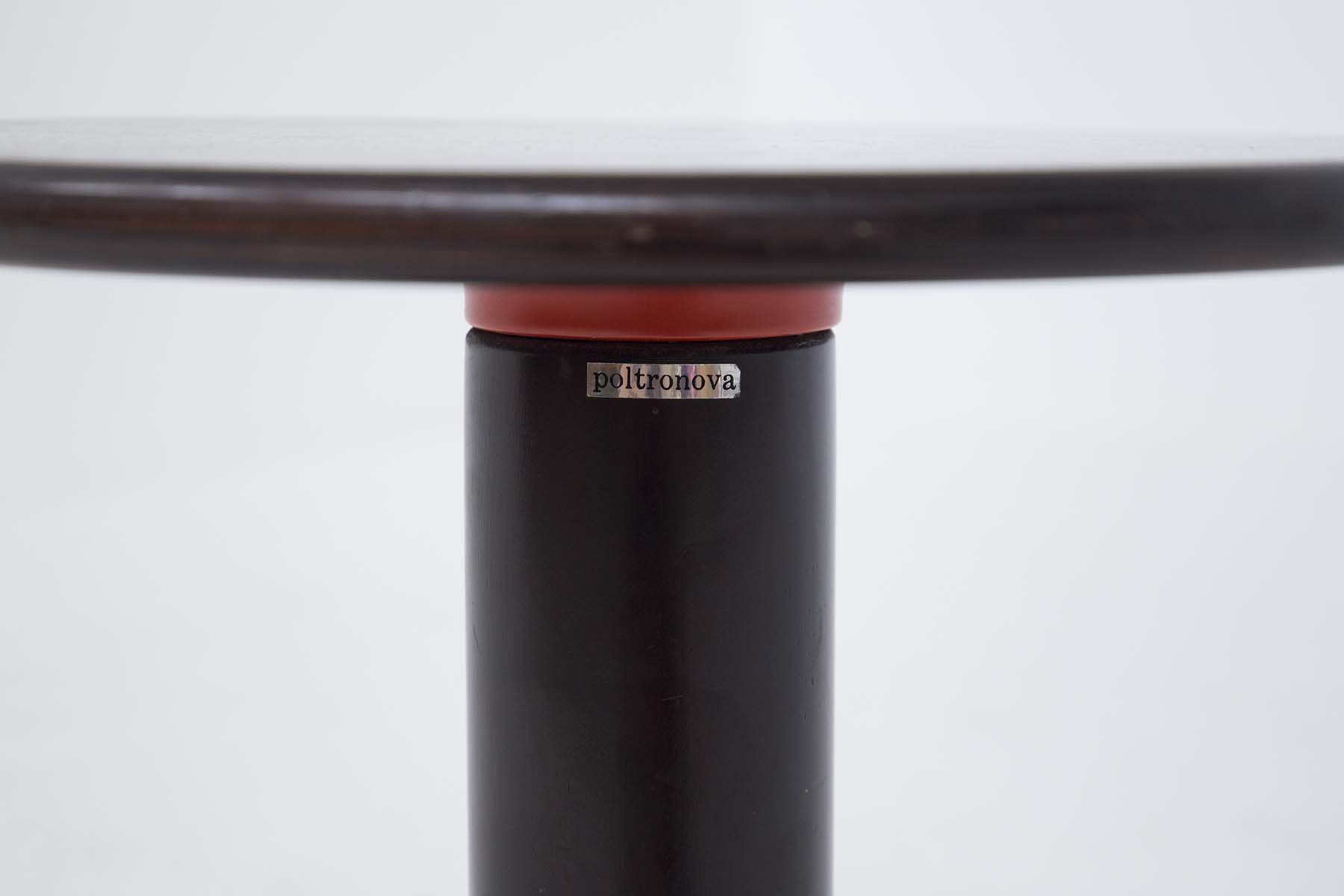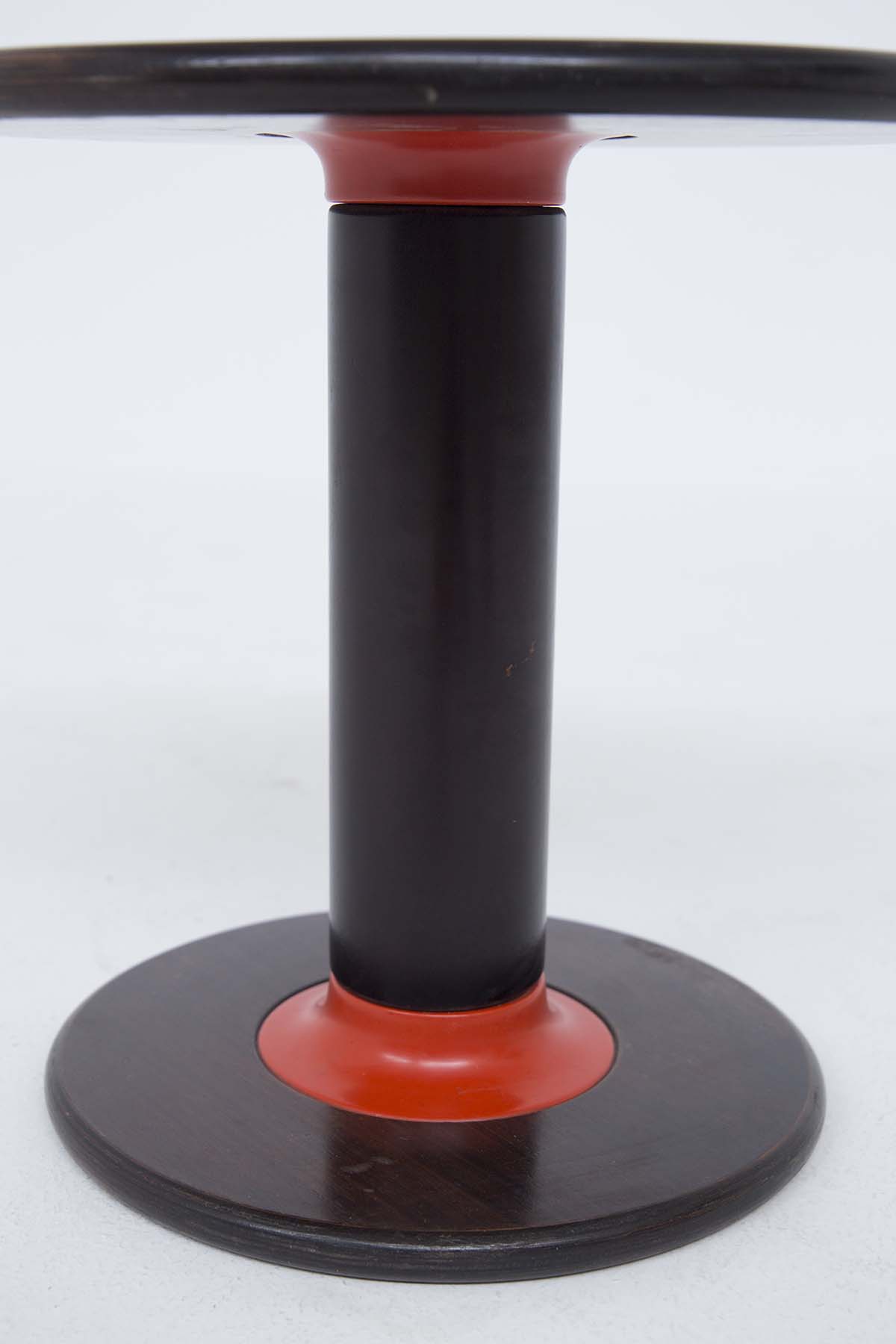 ETTORE SOTTSASS (Innsbruck, 1917 - Milano, 2007) per POLTRONOVA. Tavolino Rocchetto in legno e legno laccato. Con etichetta del produttore. 1964. Segni di usura. Mis. Alt. cm. 45 Diam. cm. 44 ca.