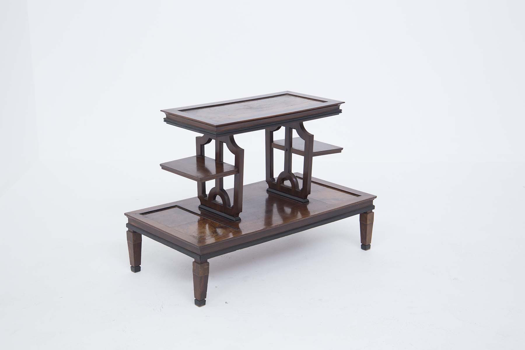 GIO PONTI (Attr.) (Milano, 1891-1979). Tavolino in radica a più ripiani. Anni '30. Mis. Lung. cm. 87 Alt. cm. 60 Prof. cm. 45 ca.
