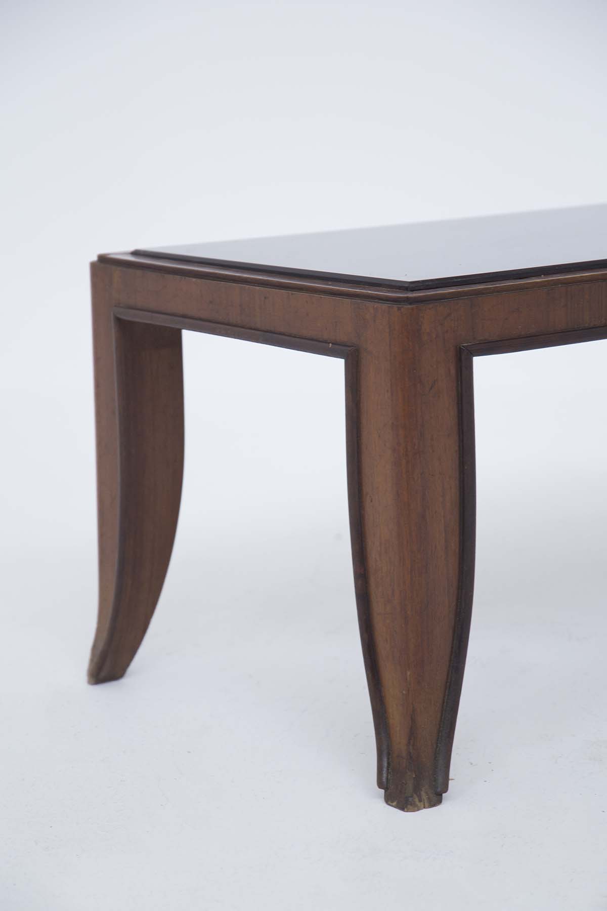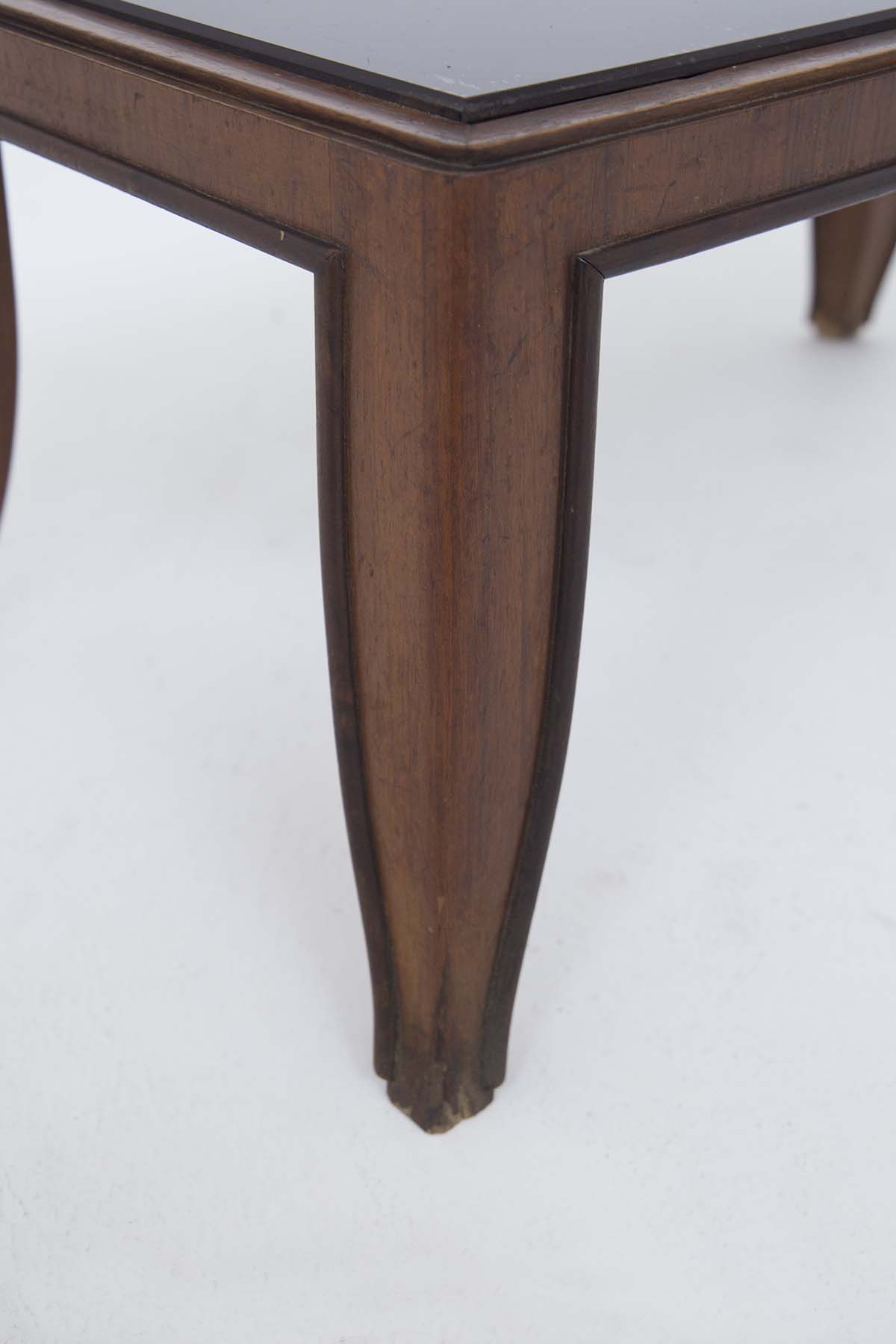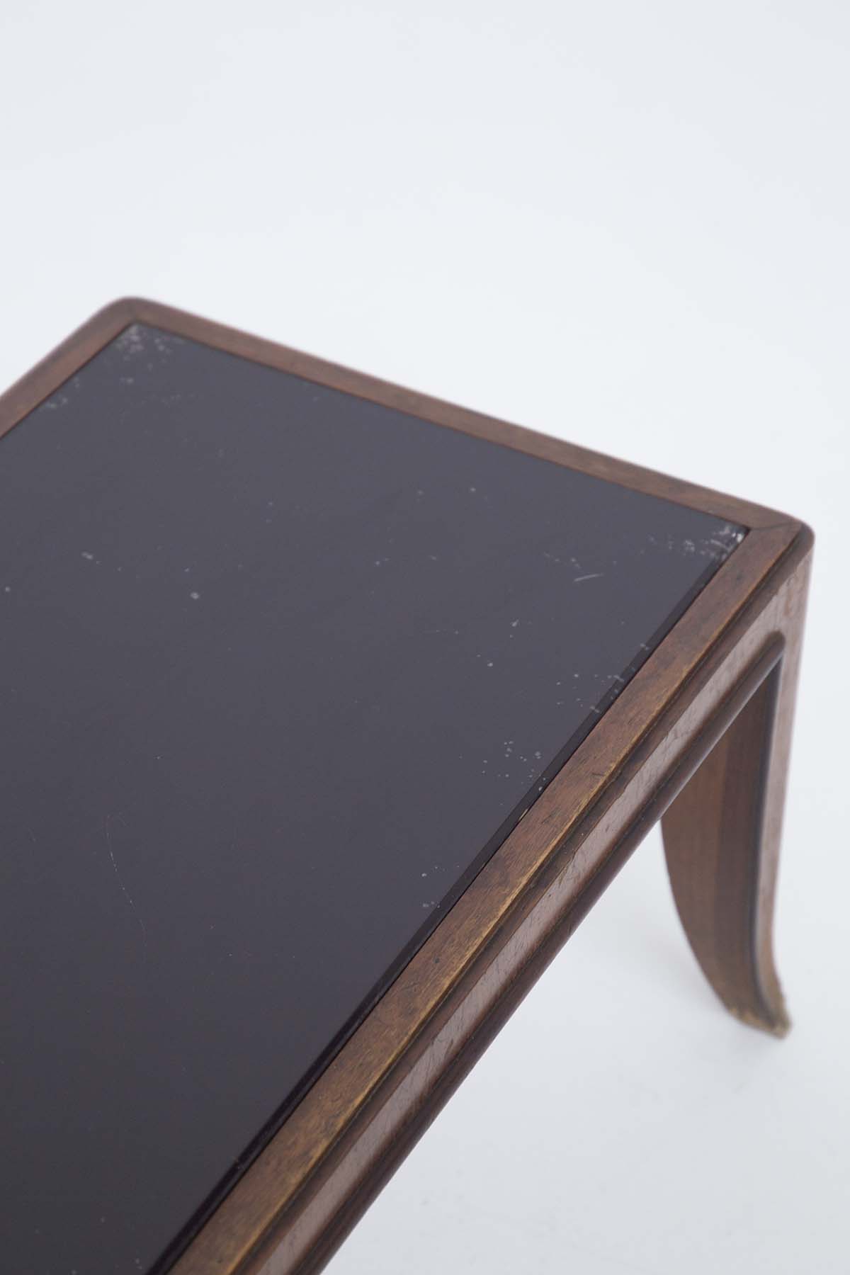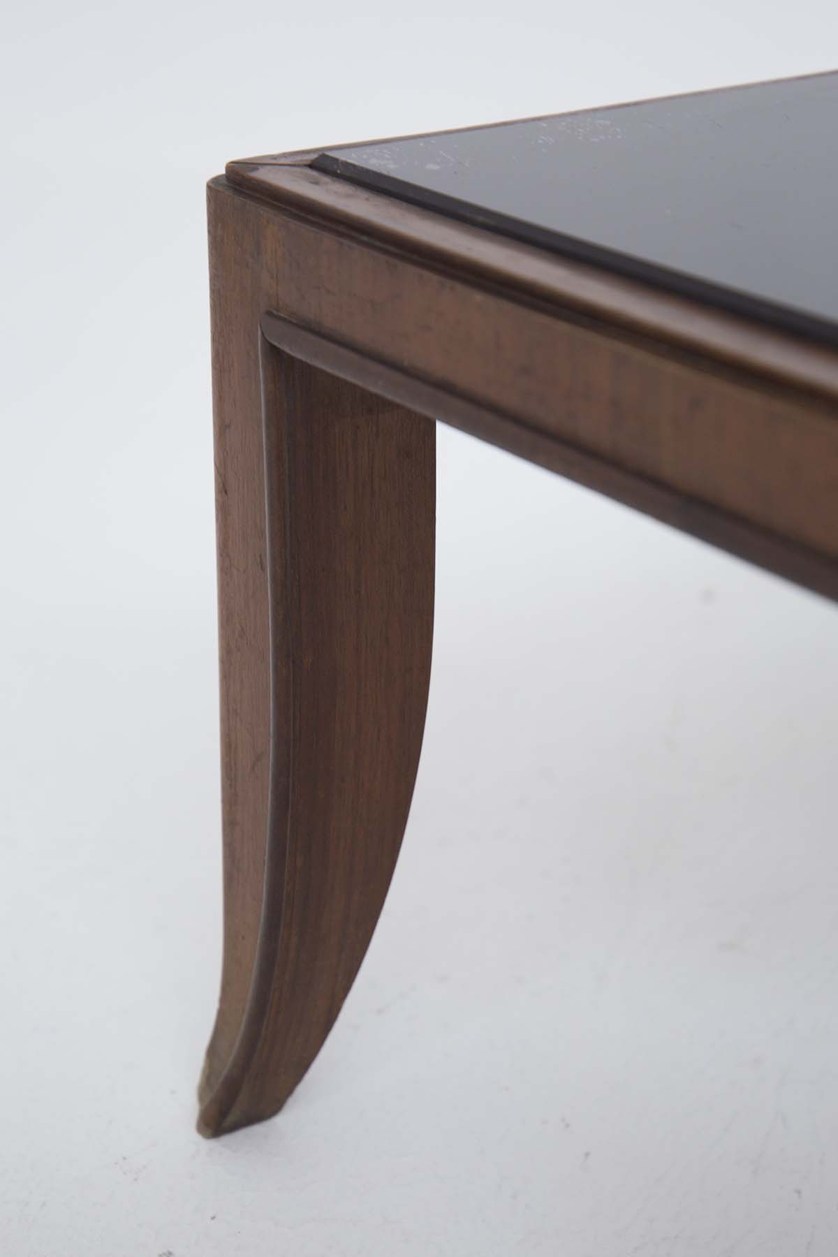 GIO PONTI (Attr.) (Milano, 1891-1979). Tavolino basso da salotto in legno e piano in vetro scuro. Anni '50. Mis. Lung. cm. 77 Alt. cm. 36 Prof. cm. 42 ca.